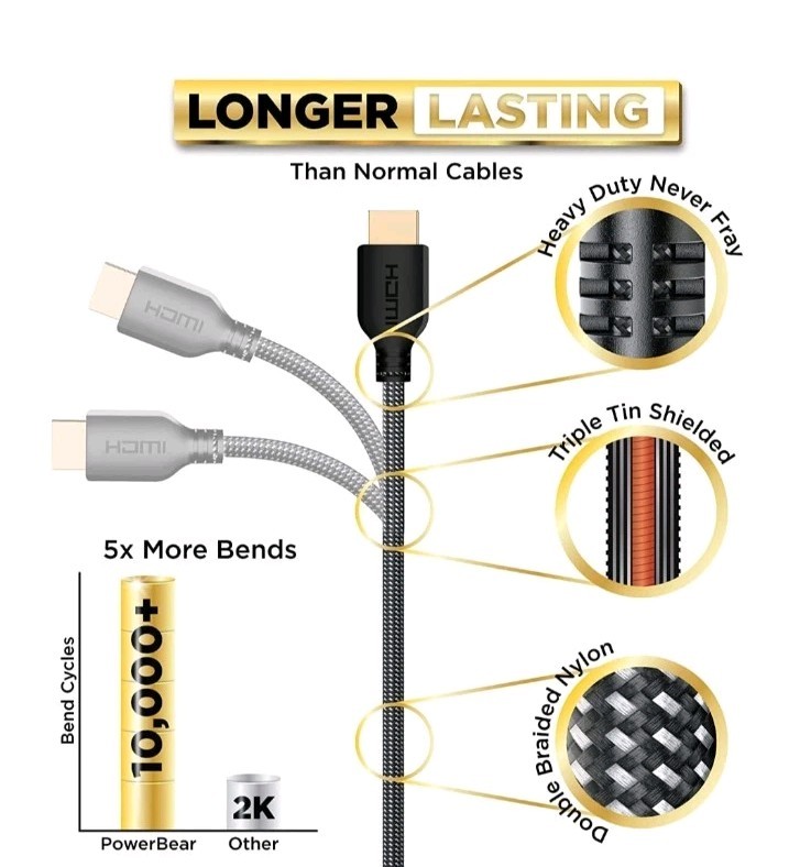 4K HDMI Cables for HDTV PC Laptop Gaming High Speed