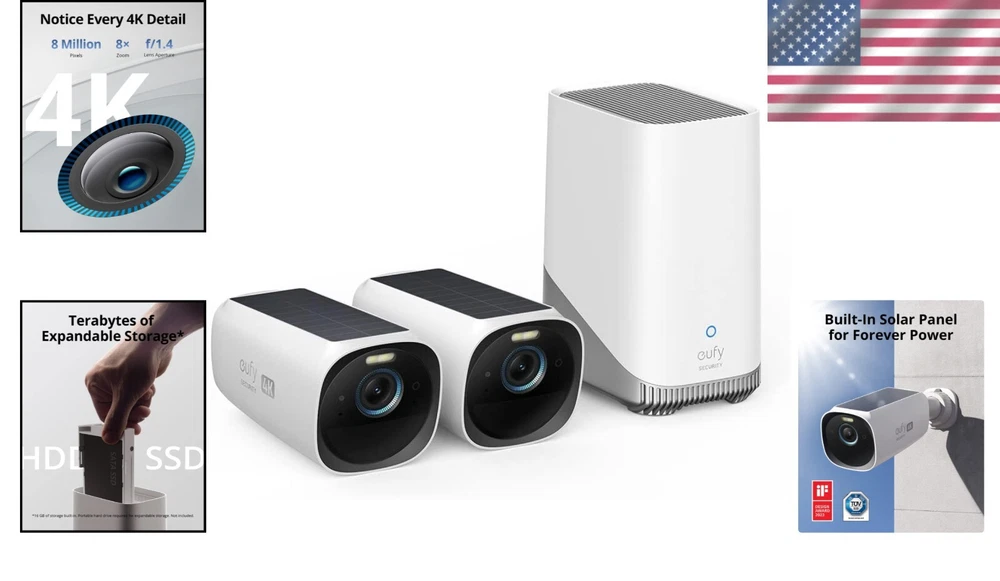 4K Solar-Powered Outdoor Security Camera with AI Face Recognition - 2-Cam Kit ‹ › ‹ › ‹ › ‹ › ‹ › ‹ › ‹ › ‹ › 4K Solar-Powered Outdoor Security Camera with AI Face Recognition - 2-Cam Kit Unmatched Clarity Day and Night Experience stunning 4K detail that allows you to spot even the smallest features on potential trespassers, whether they be human or animal. The advanced Starlight photosensitive system enhances clarity in low light conditions, ensuring you never miss a moment. Everlasting Power and Durability Designed for outdoor excellence, the self-sustaining eufyCam 3 requires only 2 hours of daily sunlight for Forever Power. Integrated solar panel provides an eco-friendly solution to your security needs, allowing you to enjoy peace of mind without the worry of battery replacements. Control Your Own Data with Local Storage Our local 4K security camera system puts you in control of your data and privacy with advanced encryption. Features 16 GB built-in storage expandable up to 16 TB with a portable hard drive (not included)—store a lifetime of videos, all without a monthly fee. Rest assured knowing that part of the built-in storage will be reserved for the operating system. BionicMind AI Technology Experience enhanced security features with BionicMind AI that provides facial recognition to differentiate between family members and strangers. This self-learning AI grows smarter over time, adapting to your unique security needs. Convenient Control at Your Fingertips Enjoy the luxury of voice activation control with Alexa and Google Assistant, making your security system easily accessible. Experience the convenience of clear two-way audio, allowing you to communicate directly through your camera. Set specific activity zones to minimize false alarms and ensure you're alerted only when it matters most. Why Choose the 4K Solar-Powered Security Camera? Elevate your home security to new heights with this unmatched dual-camera kit. The 4K resolution ensures no detail is overlooked, while the innovative AI technology enhances your peace of mind. With forever power and customizable data storage, your security is not only smart but also sustainable. Take control of your safety! Secure your 4K Solar-Powered Outdoor Security Camera system today and protect what matters most. Shipping Free & Fast Shipping - We offer free shipping to most of the USA with a normal delivery time of 3-7 days. However, due to the current situation, additional delivery time (up to 3 weeks) may be required for some items. Alternative Carriers - We may use alternative carriers (e.g. USPS, FedEx, UPS, etc.) to ensure your package arrives safely and on time. Due to the use of multiple carriers, we are unable to provide a tracking number automatically. Handling Time - Orders are processed and shipped within 1-2 business days of receiving cleared payment. Shipping Restrictions - Shipping to Alaska, Hawaii, Puerto Rico, Guam, and other US territories may incur shipping charges or delivery restrictions. Please contact us before ordering, or your order can be refunded/cancelled. State Restrictions - There may be restrictions based on your state of purchase. For example, certain items may not be shipped to California due to state regulations. Contact for Tracking Updates - If you require tracking updates or have any concerns about the delivery of your order, please feel free to contact us, and we will be happy to assist you. Return Please see our eBay Return Policy. Thank you. Payment We accept all major credit cards, PayPal, and Apple Pay for your convenience. Your payment information is secure and encrypted to ensure a safe and seamless transaction. Please complete your payment within 3 days of purchase to avoid any delays in shipping. Feedback Your feedback is extremely important to us. We strive to provide the best products and customer service possible. If you are satisfied with your purchase, please take a moment to leave us a positive review. If you have any concerns or issues with your order, please contact us before leaving negative feedback. We are committed to resolving any problems and ensuring your satisfaction. Contact Us If you have any questions or concerns, please feel free to reach out to our customer support team. You can contact us through the eBay messaging system. We are available Monday to Friday, 9:00 am to 5:00 pm EST, and we will do our best to respond to your inquiry within 24 hours. Thank you for supporting our small family business! UPC: Not Set Unit Quantity: 2.0 count Connectivity: Wi-Fi Compatible Brand: Wireless Security Camera Features: Battery,Night Vision,Face Recognition AI,Expandable Local Storage,Solar Panel,Voice Control,Two-Way Audio,Low Light Performance Smart Home Protocol: Wi-Fi Smart Home Compatibility: Amazon Alexa,Google Assistant Storage Capacity: 16GB,16TB Power Source: Battery,Battery Powered Operating Range: Not Set Year Manufactured: Not Set Brand: Unbranded Type: Bullet Model: Wireless Security Camera Surveillance Technology: IP/Network Location: Outdoor Only Maximum Resolution: 2160p Power: Not Set Operating Sound Rating: Not Set MPN: Not Set Unit Type: Unit Number of Cameras Included: 2 Number of Channels: 2 Color: White Color Mode: Not Set Item Height: Not Set Item Width: Not Set Voltage: 12V Aspect Ratio: Not Set Screen Size: Not Set Display Technology: Not Set Contrast Ratio: Not Set Item Weight: 14.08 ounces Response Time: Not Set Manufacturer Warranty: Not Set Country/Region of Manufacture: Not Set