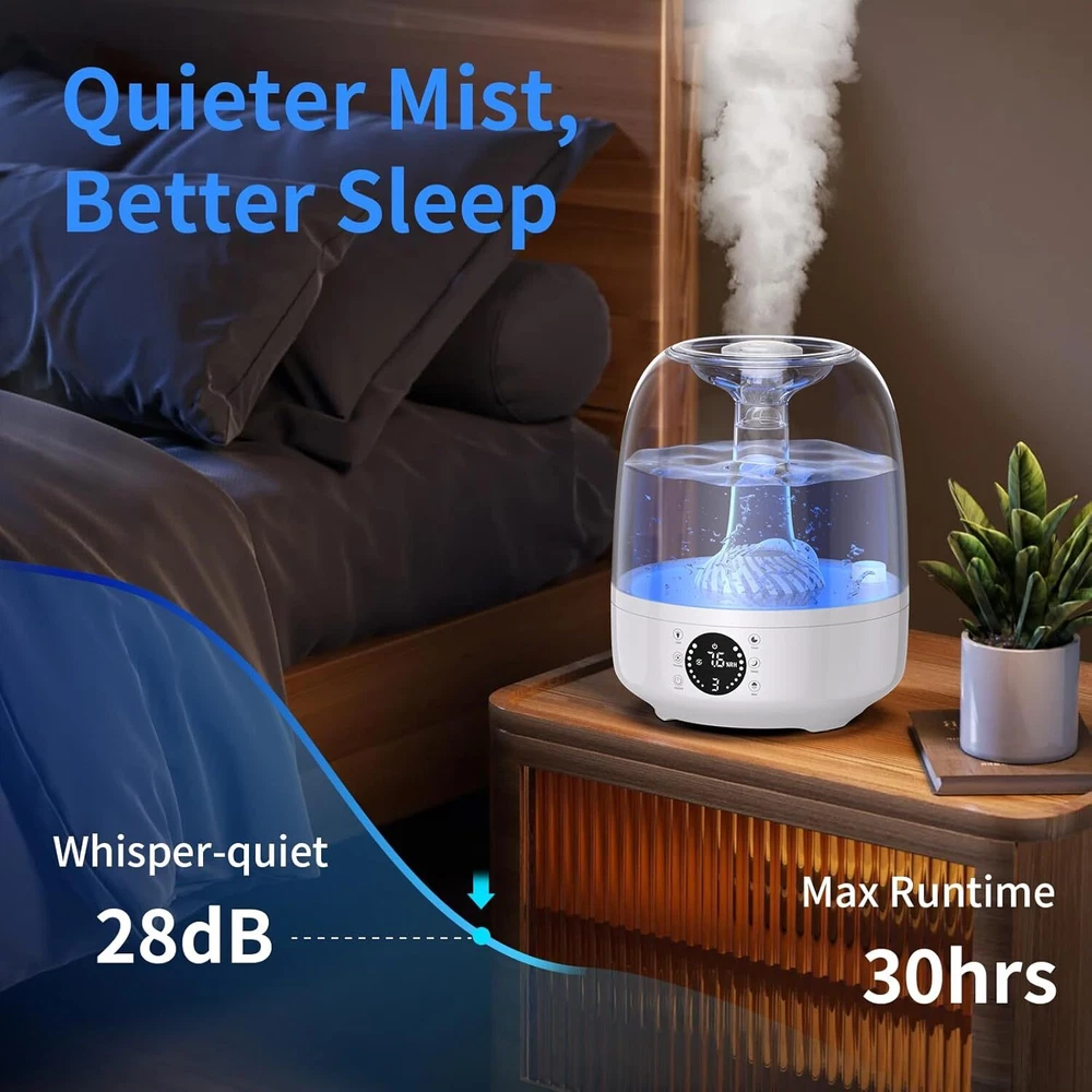 Product Description Humidifier for Bedroom, 4L Top Fill Supersized Cool Mist Humidifier, Quiet Air Humidifier With LCD Display, Lasts Up to 35 Hours, Auto Shut-Off,3 Colors Light, Large Room, Baby Nursery Plants 4L Smart & Large Continuous Comfort: Enjoy quiet sleep without congestion, coughing, or dry mouth, Kazazoo's ultrasonic atomization brings noise down to 28dB, With a spacious 4L/1.32Gallon water tank, you don't need to add water frequently, allowing you to enjoy up to 35 hours humidity in 320 ft² / 30 m² room.3 types of humidity control: auto mode, constant humidity & 3 speed levels (Hi/Med./Low) deliver the desired air quality in your room or office. IMPROVED COMFORT, HEALRHY LIFE: Adopt Ultrasonic humidification technology to quickly increase the humidity and improve indoor environment, keeps skin moisturized, relieves dry cough and other discomfort symptoms, so that you can enjoy a healthy and comfortable life. Top fill & Easy to clean: The top filling design with a wide opening allows you to pour water directly into the water tank without removing it from the device (use distilled water only!). Maintain this desk humidifier fast and easy. To clean the reservoir more carefully, simply lift it up from the base. Its top fill and leakproof construction ensures reliable operation for years Cold & Discomfort relief / timely support: Hydrate your body with the right amount of moisture in the air to have a healthy sleep, relieve itchiness, discomfort and cold symptoms with our air humidifier. In case you have questions about this device, contact our support team for more details. At Kazazoo, you always have our back if any issues occur. Keep optimal humidity in the room and stay sound with the functional humidifier by Kazazoo 【Premium after-sale service Don't fill oils in humidifier 】: This plant humidifier indoor is made of advanced eco-friendly materials. Comes with an AC power adapter, user manual, and 24-hour prompt response. Our customer support team is here to ensure your satisfaction! Feel free to try our humidifiers! Don't fill oils in humidifier About Us We are a reputable seller with many years of experience selling on eBay. Our goal is to provide high-quality products and excellent customer service. Shipping Items will be shipped within 1-3 business days when we received payment. (Orders are not processed on weekends & holidays) Tracking information will be sent once item is shipped. Delivery time depends on destination and other factors Item is shipped to ebay address. Leaving correct address can minimize delay. For international shipping and shipping to Guam, Hawaii and Alaska, Please contact us before placing the order. International buyers please note: Import duties, taxes and charges are not included in the item price or shipping charges. These charges are buyer’s responsibility. We will try our best to reduce the risk of the custom duties. Local pick-up is unavailable at the moment. Contact Us We reply any email messages within 1 business / working days(off-duty at weekend). If you do not get a response from us, then please check your junk or spam mailbox. Our Business hours: Mon-Fri 9:00-18:00, UTC/GMT +8 hours. Please contact us either by clicking "contact seller" in the "purchase history" section or simply click "ask a question" at the bottom of this page. If you are unsatisfied with our item or service, please contact us before leaving any feedback. We are committed to resolve all issues in a friendly and satisfactory manner.
