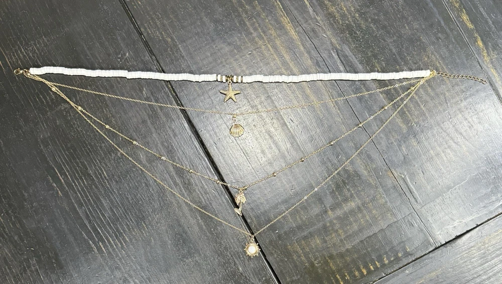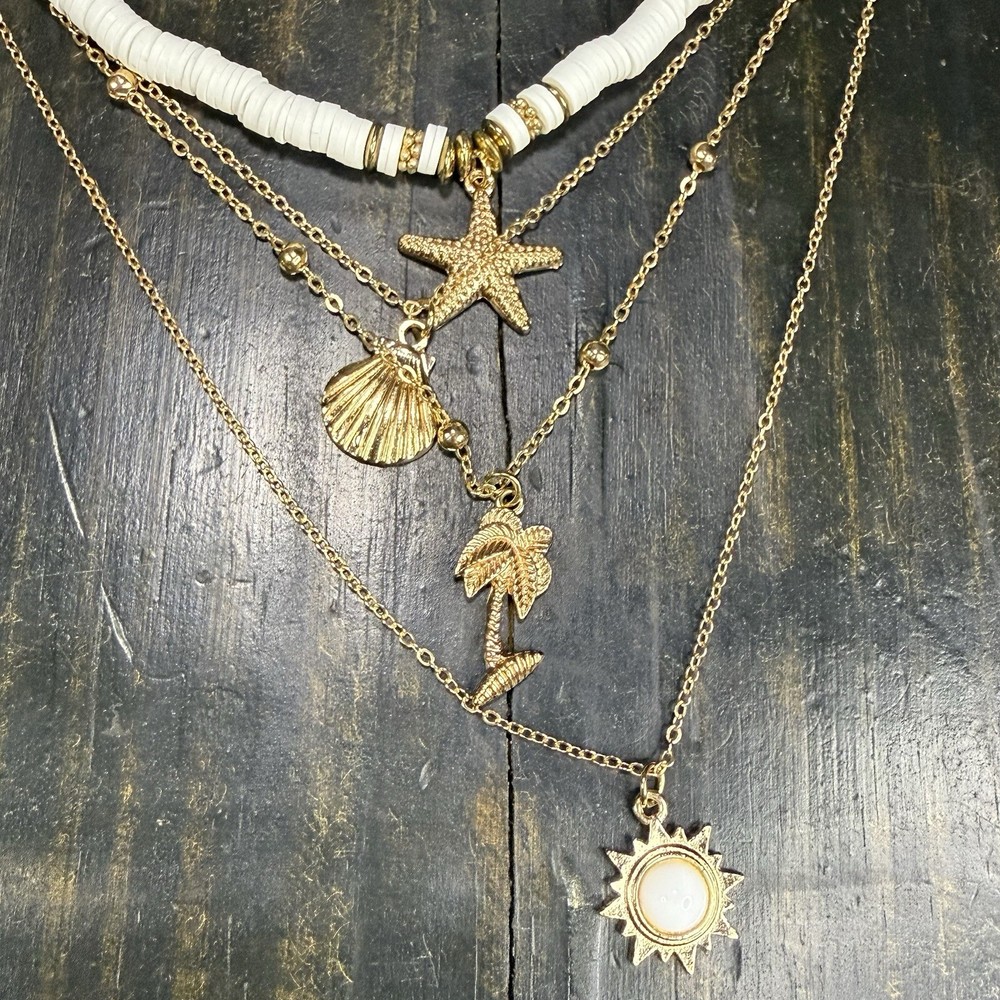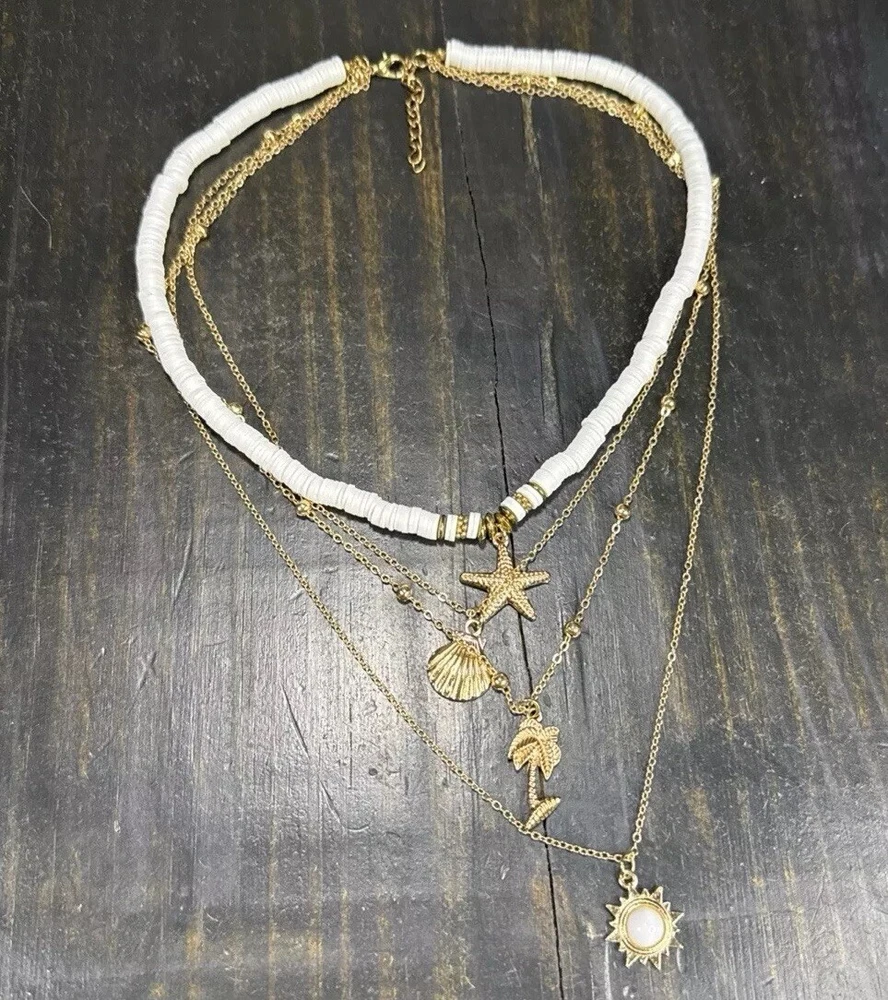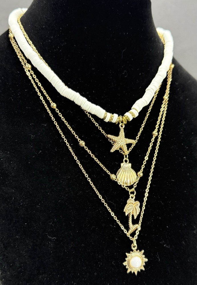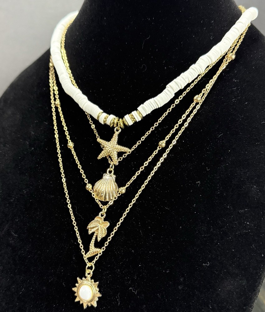 4-Layer Beach Ocean Charm Pendant BOHO Necklace Gold Tone Polymer Clay Beads 17”-19” Pre-owned. Excellent condition. Photos are part of the description. If you purchase more than one fashion jewelry from my shop please message me so I can adjust the shipping fee. Thanks