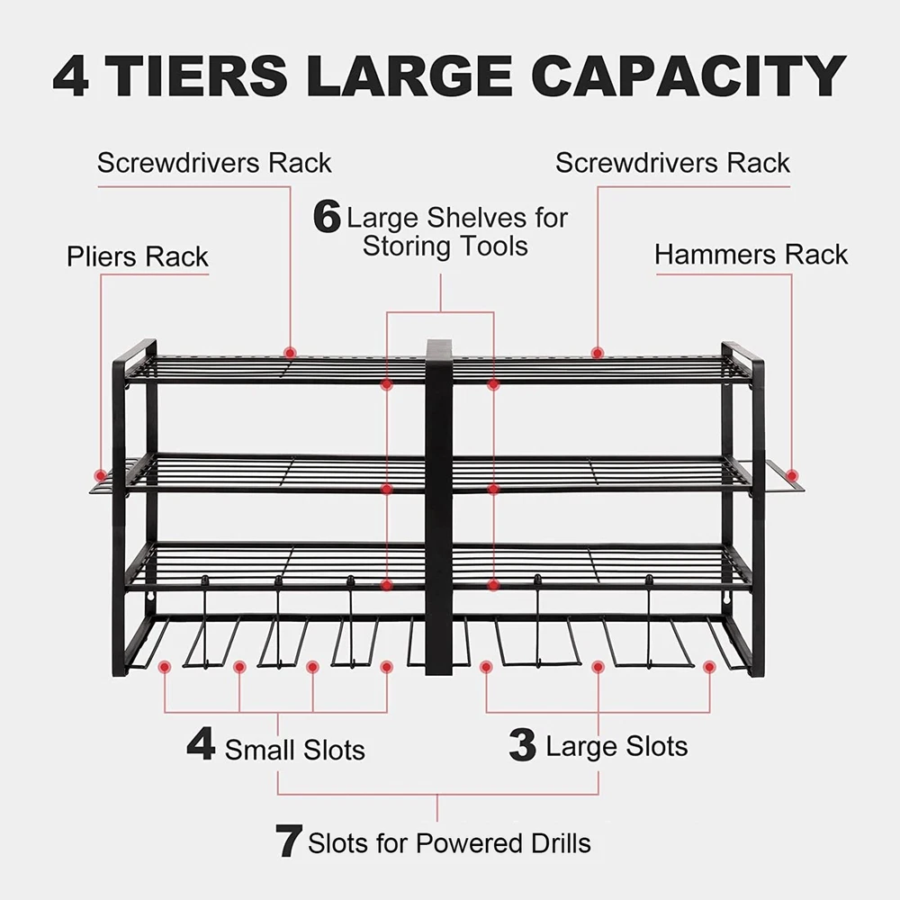 Feature: 1. OVERSIZED 7 DRILL STANDS AND 4 LAYER HIGH CAPACITY: This wall mounted power tool organizer features the latest 4 layer high capacity design. The bottom layer can store 7 cordless electric drills, the upper three layers can store other heavy tools or a variety of small tools, and the side also add a hammer rack, pliers rack and screw tool holder 2. PERFECT HELPER IN GARAGE: With this toolbox organizer and wall mounted storage rack, you can make the most of wasted wall space and save time searching for tools. Suitable for garages, homes, workshops, sheds, backyard stores, etc. 3. STRONG LOAD BEARING CAPACITY: The floating toolbox is made of heavy duty steel metal for greater load bearing capacity and durability, while equipped with hex anchors for greater load bearing capacity and no longer has to worry about the shelf cracking or tool holder falling off from the wall 4. EASY INSTALLATION: Tool organization and storage are designed to be detachable. With reference to the installation manual, a perfect tool rack wall mount can be assembled in just a few minutes 5. COMPLETE ACCESSORIES: The power tool storage rack consists of two sets of fixing screws, one set of four anchors, four screws(using 8mm drill bit), and one set of hex anchors(using 10mm drill bit). You can choose one set based on the fixing position Specification: Item Type: Power Tool Organizer Material: Steel Number of Layers: 4 Layers Use: Wall mounted tool storage Package List: 11 x Support 5 x Hook 2 x Accessories 1 x Open End Wrench 1 x Hex Wrench 1 x Screw Pack Note: Please note that the new type and old type of this product will be sent randomly, and make sure you will not mind before ordering. 1. Our listing price includes the value of goods,packaging cost,and export taxes,not including international duties. 2. duties,taxes,and charges are not included in the item price or shipping fee. 3. T he duties are buyers' responsibility .Please check with your country's customs office determine what these additional costs will be prior to your purchase. 4. All disputes arising from the duties will be submitted to ebay for solution. 1. Any questions, pls. contact us via ebay message or email us. We will reply your message within 48 hours. If you do not receive our reply within 48 hours, pls. post a message again beuse sometimes our message system may block some emails. 2. If you are satisfied with our service, pls. kindly leave us a positive feedback and give us the Detailed Seller Rating with all " 5 " in very area 3. Our aim is to provide Level Customer Service, your recognition will encourage us greatly and serve you better. We strive to keep all our customers satisfy. We will do our up most to exceed your expectations in customer service, communition and dispatching of your orders. On Jun 27, 2025 at 01:54:13 PDT, seller added the following information: