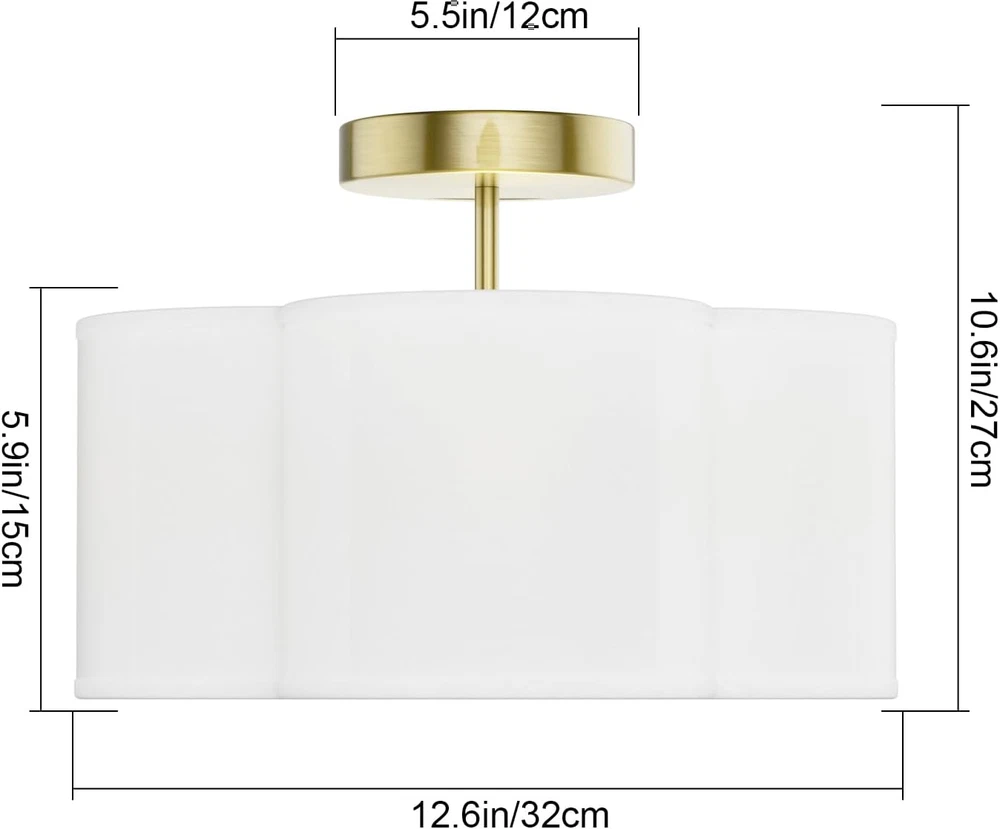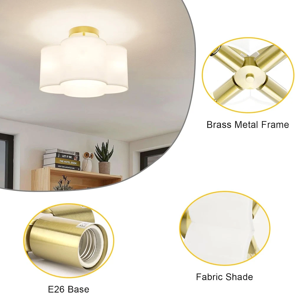 Store New Arrivals Add to Favorite View Feedback Contact 4-Light Semi Flush Mount Ceiling Light Fixture,Modern Close to Ceiling Lamps with White Fabric Shade,Brass Ceiling Light for Living Room,Bedroom,Dining Room,Kitchen,Hallway(Exclude Bulb) Description Item model number 115 Light Source Type Compact Fluorescent Light (CFL)/LED/or other Style Modern Power Source Corded Electric Number of Light Sources 4 Control Method App Batteries Included? No Lighting Method Adjustable Controller Type Push Button Unit Count 1.0 Count Room Type ★Bedroom- Bathroom- Living Room ★Dining Room -Kitchen Island ★Porch Entryway Foyer Assembly Required Yes Product Dimensions 4.55"L x 4.37"W x 3.5"H Material Metal,Fabric Installation Type Flush Mount Model Name L-HC115 Fixture Type Non Removable Batteries Required? No Item Weight 3.04 pounds Light fixture form Ceiling Special Features Dimmable Special Feature Dimmable Shade Color White Mounting Type Ceiling Mount Color Gold Wattage 240 watts Voltage 120 Volts Shade Material Metal [Unique Design]:This semi flush mount ceiling light fixture is made with top-grade metal and gold finishes,ensuring durability and resistance to rust.It is matched with fabric shade eye protection lampshade with soft light to create a comfortable and warm atmosphere for your room,and will add a modern chic element to your spaces with unique four-leaf clover lampshade design. [Easy Installation]:The bathroom wall sconce lighting is easy to install and includes all the hardware needed for installation.Just connect the wires,install the bulb,and the installation can be completed in a few minutes. [Bulb Type]:Support for any LED/CFL/or other less than 60W bulbs with E26 Base for this wall sconces(★Bulbs NOT Included),you can update the atmosphere of your home at any time simply by changing the bulbs of different color temperatures.Could be fully dimmable when used with dimmable bulbs and compatible dimmer switch. [Application]:The fabric shade complements all decor styles while providing a warm even light.Ideal for a kitchen,laundry,hallway,foyer,dining room,living room,bedroom,entryway,corner,kid‘s room,stairway,barn,basement,and more.The gold flush mount ceiling light will entice your senses as well as illuminate your home. [Sincere Service]:If you have any questions,please feel ease to tell us,our customer service would solve your problem within 24 hours.Please rest assured to buy. Product Description ABOUT US We offer the best prices around on high quality products. Our E-store includes media such as books, movies, music and games while offering electronics, toys, sporting apparel, clothing, tools, general home, garden items and more. SHIPPING We are always working hard to ensure your package arrives as soon as possible. Please understand that some factors like weather, high postal traffic, and the performance of shipping companies are outside of our control. We offer free shipping to the lower 48 states and ship within 2 business days of payment, usually sooner. We do not accept P.O. Boxes. Please provide a physical address. For shipping outside of the continental USA, we only use eBay's Global Shipping Program.The item is shipped to KY and then sent to the rest of the world. International customers are responsible for all duties and taxes. Continue to check out in order to calculate costs for shipping the item to your country. Messages regarding eBay's Global Shipping Program MUST be directed at eBay EXCLUSIVELY. RETURNS We offer a 30-Day Return Policy on items which you are not completely satisfied with. You have the option for a full-refund or an exchange of the item. No returns are available on items shipped outside of the USA. PAYMENT We accept PayPal. CONTACT US This page content is yet to come Please ad us to your favorite seller and visit again later Thank You CUSTOMER SATISFACTION We try our very best to make sure every customer is completely satisfied. If there's a problem, message us! We're happy to help. WE ACCEPT Copyright © 2021 AutoDS. | All Rights Reserved