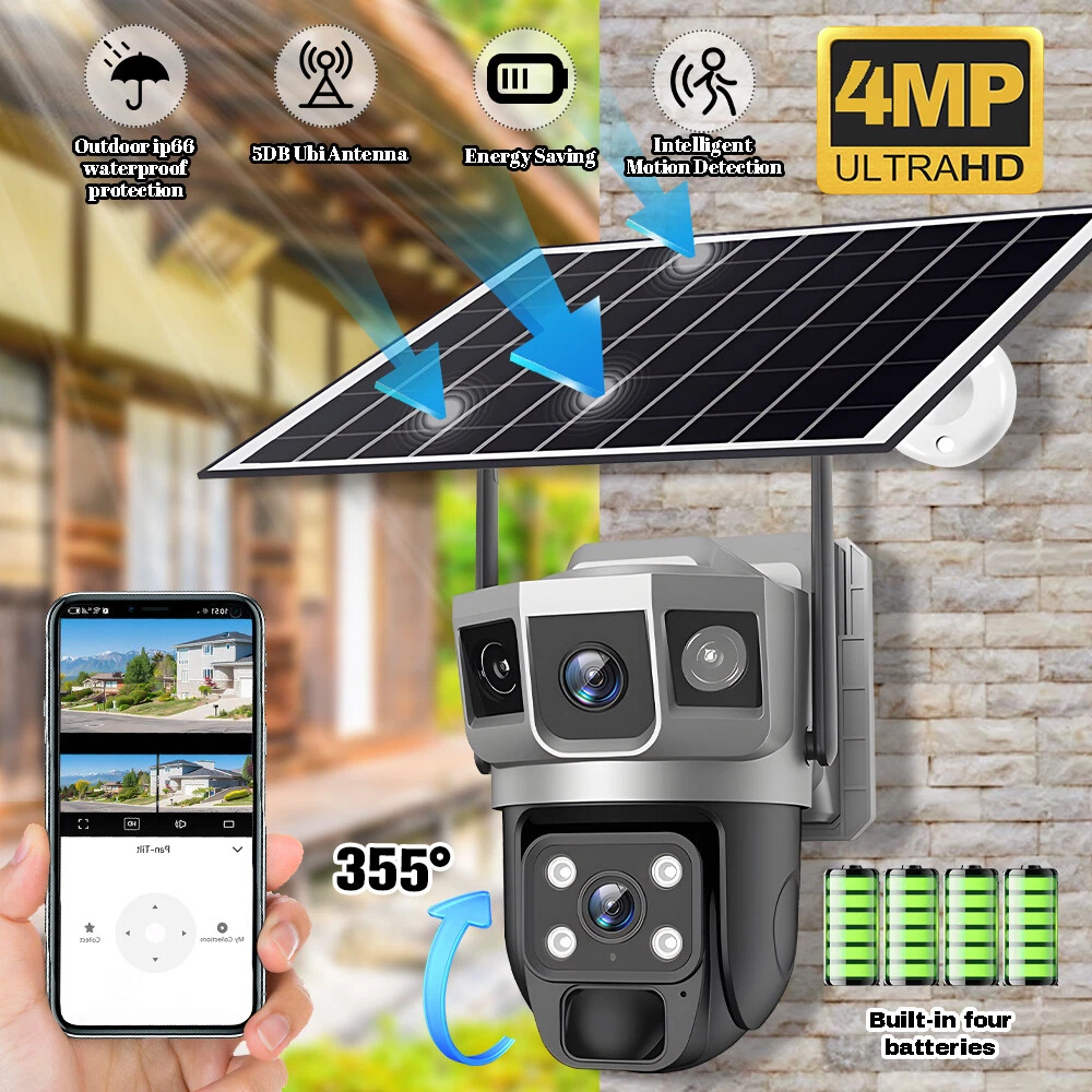 4MP Camara De Seguridad Solar Wifi Inalambrica Con Vision Nocturna Para Exterior