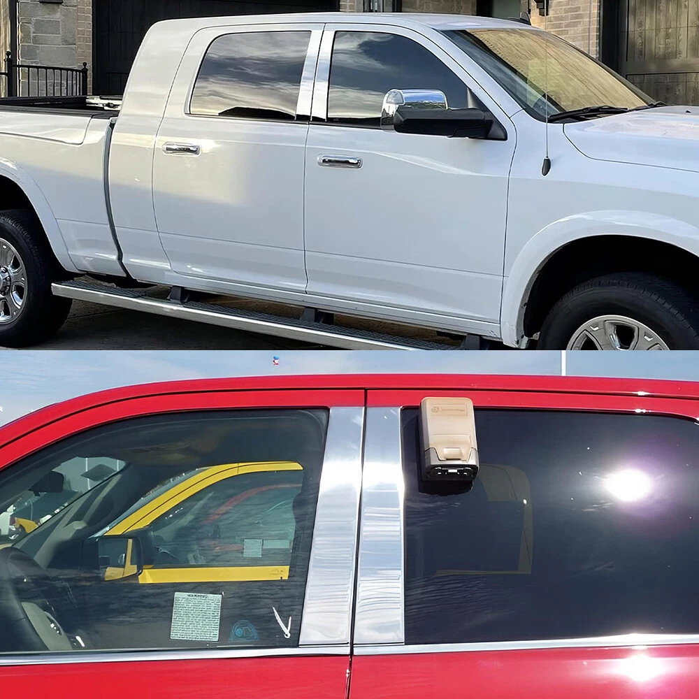 4PC Pillar Post Trim For Covers 2009-18 Dodge Ram Crew/Quad Cab 1500 2500 Chrome