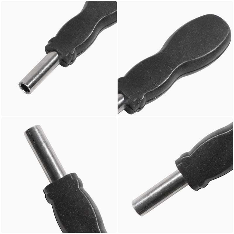 Description: 100% brand new. Small size and portable. It is very to use. Apply screw diameter 6.35mm and with Magnetic. Practical and convenient. Material: Alloy Steel. Color: black + silver Head size: 6.35mm. Overall length: 113mm. Package included: 4x Screwdriver Handle Bit Holder