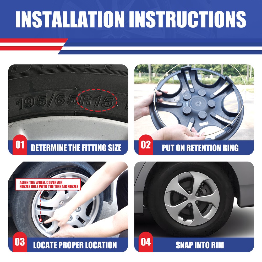 Title Other Head Lights For Jeep For Ford For Dodge For Chevy/GMC For Honda For Toyota For Nissan For Subaru For Mazda For Acura For Mitsubishi For Audi For MINI Tail Lights For Jeep For Dodge For Chevy/GMC For Toyota For Nissan For Honda For Volkswagen For Mazda For Subaru For Isuzu For Mitsubishi For Cadillac For MINI Fog Lights For Jeep For Ford For Honda For Dodge For Toyota For Chevy/GMC For Nissan For Mazda For Subaru For Infiniti For Cadillac For Scion For Lincoln For Acura For BMW For Hyundai For Volkswagen For Buick For Chrysler For Lexus For Mercedes Benz For Kia For Audi For MINI Turn Signal Lights For Jeep For Ford For Dodge For Chevy/GMC For Toyota For BMW For Subaru For Nissan For Cadillac For Lincoln 4PCS 15" Silver Hubcap Fits For Toyota Prius 2010-2015 Wheel Covers Snap On Fitment: For 2010 Toyota Prius For 2011 Toyota Prius For 2012 Toyota Prius For 2013 Toyota Prius For 2014 Toyota Prius For 2015 Toyota Prius Specification: Type: Wheel Hub Caps Color: Silver Compatible Wheel Diameter: 15 inch Features:Car Wash Safe, Easy to Install, No Tools Required Material: ABS Wheel Type: Steel Placement on Vehicle: Front, Left, Rear, Right Installation Type: Snap-On Features: ✅Fit For 2010-2015 TOYOTA PRIUS - Design for 15" wheel hubs. Please know that and check your wheel before purchase to ensure fitment. ✅ Protect Your Wheels - Keep your vehicle looking sleek and new with these universal-fit hubcaps that offer reliable protection against scratches, dings, and other types of damage. ✅ Easy to Install - Designed to fit most standard wheel size, these hubcaps can be quickly and easily snap on your wheels without the need for special tools, making them a great choice for busy vehicle owners. ✅ Durable - Made from high-quality ABS materials, these hubcaps are built to withstand the rigors of daily use, keep your vehicle looking great for years. ✅ Stylish - Upgrade the look of your car or truck with these sleek hubcaps to enhance the appearance of your vehicle. Package Includes: 4PCS Hubcaps. Payment Delivery details Terms of sales About us Contact us Payment 🤟 We accept PayPal (Recommended), credit card, VISA, Google Pay & Discover etc. 🤟 Please submit your payment within 7 days after your purchase. 🤟 If not, eBay will automatically open an Unpaid Item Dispute on our behalf if the item(s) are not paid within 7 days. Delivery details 🤟 Please double check your delivery address and contact information. 🤟 All items will be shipped within 1 business days after payment received. 🤟 Tracking numbers will be easily accessible ASAP they are created and processed. Terms of sales 🤟 Free 60 days Return, we will cover the return post fee. 🤟 If a defective product was received, please do not hesitate to message us via eBay message. 🤟 We will response in 24 hours in business to resolve the problem 🤟 We stand behind our products. Items can be returned for exchange or full refund within 60 days from the date you receive. About us 🤟 Winjet has a huge warehouse and office located in the United States. 🤟 All US domestic 48 states customers are able to benefit from the FREE SHIPPING services. 🤟 Our experienced, professional customer service representatives offers prompt and courteous service. 🤟 Best quality products, outstanding services and professional experience keep our customers. Contact us 🤟 Please feel free to contact us if you have any problems. 🤟 Emails will be replied within 24 hours in working days. 🤟 After hours emails will be replied on the next business day. OE/OEM Part Number aluminum alloy:42611-47120, aluminum alloy:42611-47101, aluminum alloy:42611-47270, 2010-2011 TOYOTA PRIUS, 2012-2015 TOYOTA PRIUS, Wheel Caps;42602-47110, Wheel Caps;42602-47060 Interchange Part Number 42611-47120 Type Hub Cap Features Easy to Install, Lightweight Manufacturer Part Number 5129 Placement on Vehicle Front, Left, Rear, Right Brand Winjet Manufacturer Warranty 1 Year Material Plastic, ABS Finish Silver Color Silver Number in Pack 4 Compatible Wheel Diameter 15 in Installation Type Snap-On
