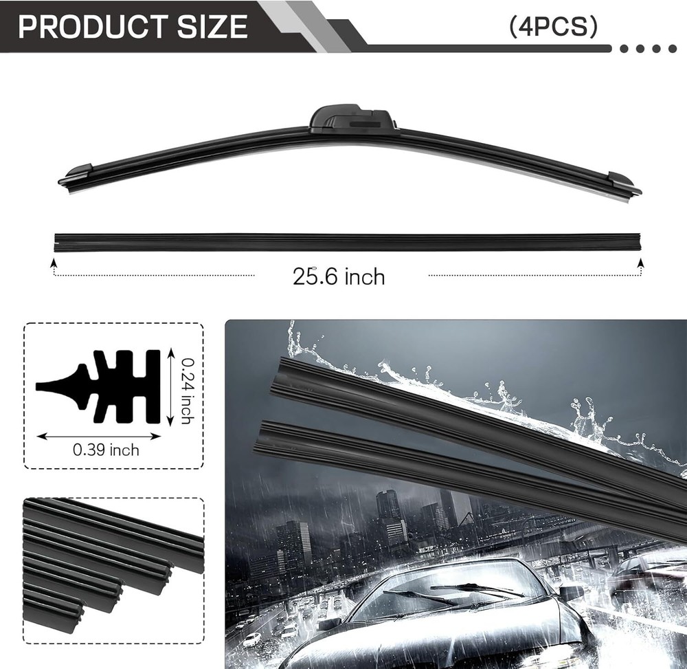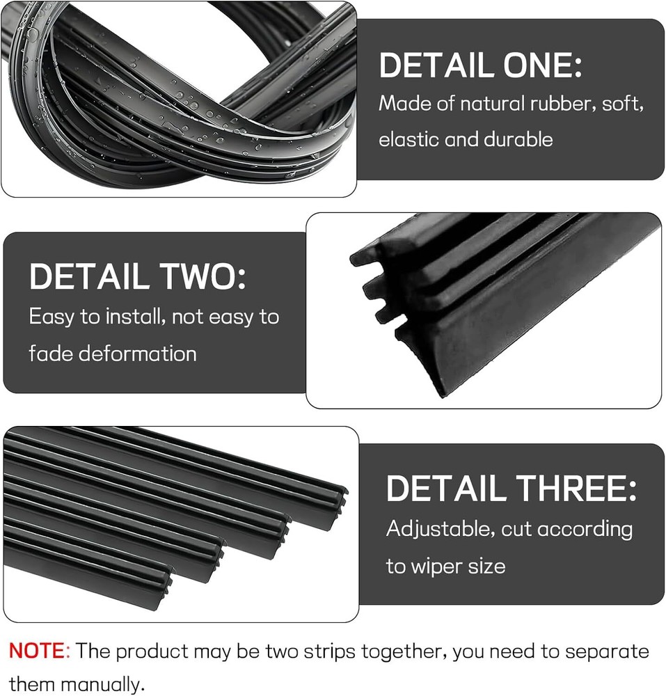 These wiper blade refills are a game-changer! The adjustable size fits perfectly, and the high-quality rubber glides smoothly without streaks. They handle heavy rain and extreme temps like a champ—no squeaking or skipping. Installation was a breeze, and the price for 4 pieces is unbeatable. Fast shipping too—highly recommend for anyone needing reliable wipers!