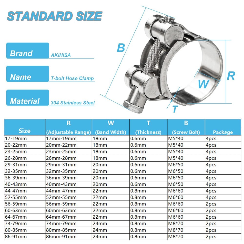 Vintage eBay Listing Begin your shopping journey with us Where your satisfaction and smart decisions are our priority T-Bolt Hose Clamps,304 Stainless Steel Heavy Duty Adjustable Tube Clamps (23-25mm 4pack) Product Snapshot Key Advantages [Clamps Size] T bolt clamp adjustable work range 0.9-0.98" (23mm to 25mm);Width: 0.7"(18mm); Thickness 0.6mm(0.024"); the screw bolt M6*40mm. to save you time, please carefully check and measure your hose OD to fit working range before purchasing our products. [Premium Material] T bolt hose clamp (including the band, housing and screw) is made of high quality stainless steel-304 with fine polishing treatment, salt resistant, anti rust, anti-corrosion, waterproof, oil-proof, resistant to acid, heat and cold. Makes it more durable, wear - resistant and secure ducting tightly. [Flanging Design] Stainless steel t-bolt clamp is designed to provide a leak-free connection, round arc flanging process of steel belt edge, it could prevent the sharp edges from cutting the pipeline, can protect your tubes better. [Easy to Install] Removable installation, silicone hose clamps can be installed without disconnecting the pipe. High hardness and it is not easy to deform, stainless steel screws, large torque. [Wide Applications] high pressure hose clamp can be used in a wide variety applications of industrial, automotive and special equipment. Fit for fastening various oil, water, gas hose and various hose interfaces. Shipping Details We ship exclusively to the address registered with your eBay account. Please verify your shipping information before placing your order. Orders are processed within 1-2 business days and typically delivered within 3-7 business days. Shipping is available only within the contiguous United States. No shipping to Alaska, Hawaii, Puerto Rico, or PO Boxes. Return & Refund Policy If you are not completely satisfied, request a return via eBay within 30 days of receipt. Items must be returned in their original condition and packaging for a full refund. If your product arrives damaged or does not match its description, please contact us immediately through eBay messaging. Payment Options We accept major credit cards and PayPal via eBay’s secure checkout. Ensure your billing information is accurate for a seamless transaction. Customer Support If you have any questions or need further assistance, please contact us through eBay messaging. We strive to respond within 24-48 hours.