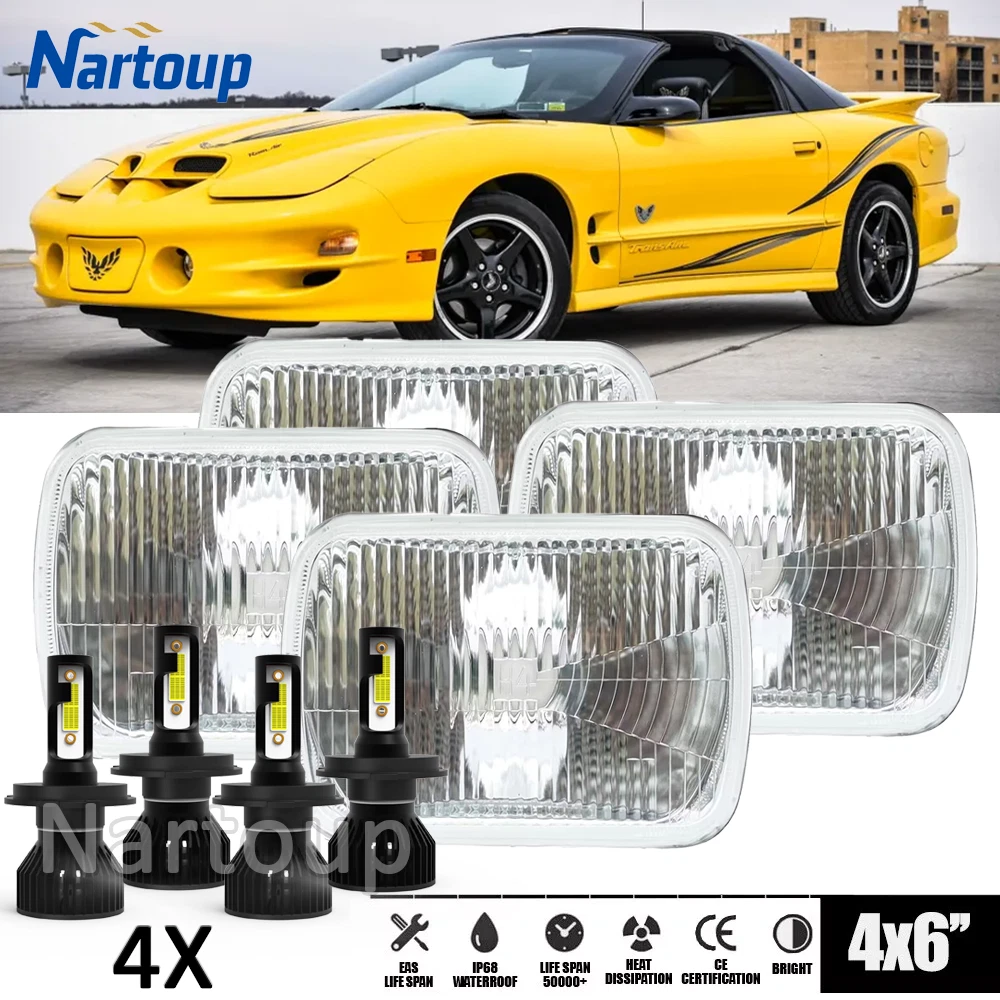 4"x6" Stock Style High Low Beam Headlights w/ LED Bulbs - Set of 4 THESE ARE LED CONVERSION HEADLIGHTS WITH A STOCK STYLE GLASS LENS AND METAL HOUSING! INCLUDES (4) HIGH INTENSITY LED WHITE LIGHT BULBS! 4X6 INCH SQUARE HEADLIGHT - SET OF 4 Made from real glass and not cheap plastic Come with 4 LED Bulbs In-stock Note: Without mounting bracket, some models may need mounting bracket! STOCK STYLE GLASS LENS / METAL BACKSIDE FITS STOCK BUCKETS( Some models may require minor modifications ) HIGH LOW BEAM BRIGHTER AND WHITER THAN STOCK LIGHTS BULBS ARE REMOVABLE AND REPLACEABLE INCLUDES 6000k WHITE LED LIGHT BULBS DOT / SAE APPROVED. THIS LISTING IS FOR A NEW SET OF 4 - 4x6" STOCK STYLE GLASS LENS / METAL BACKSIDE LED CONVERSION HEADLIGHTS WITH WHITE LED LIGHT BULBS. THIS SET INCLUDES 4 HIGH LOW BEAM HEADLIGHTS. THESE ARE BRIGHTER AND WHITER THAN THE STOCK STYLE INCANDESCENT SEALED BEAM HEADLIGHTS. IN RARE CIRCUMSTANCES, WIRING MODIFICATION MAY BE REQUIRED. Description: Model: LED Bulb light Source Model: LED Chip, 2-sides leds, super bright Power: 400w/Set & 100w/bulb Lumen: 40000LM/Set & 10000LM/bulb Operating voltage: DC 9-32V ( Fit 12V,24V Vehicle ) Beam Type: High Low Beam Material: Aluminum PCB and PA66+30% GF Plastic Beam Angle: 360° Color Temperature: 6000K White Lifespan: over 50000h Working Temperature: -40-+80 Centigrade Waterproof rate: IP 68 Connector Type: Plug and Play Application: LED Headlights Headlamp Lamp Bulbs Low Beam Uses 75% less power than Halogen or HID bulbs 3 times brighter than stock halogen bulbs OBC Error free operation Dramatically improves visibility at night INTERCHANGE: H4656 / H4651 / 4651 / 4652 THESE ARE GLASS AND WE WILL TAKE EXTRA CARE IN PACKAGING. Package Includes: 4PCS of Headlight Housing (Pair Passenger and Driver Side) 4PCS of LED Bulbs New boxes and old boxes are sent randomly!!! After service Notification: If you are satisfied with our product and service please leave us a positive feedback,if there is any problem when you received the package,please feel free to contact us,we will be definitely give you a satisfying solution,when you choose the return reason .please choose the reason"i don't like it". by this option we will accept your return immediately and provide return label for full refund. the others reason to return will take both of us many troubles to handle. If you have any questions, please feel free to contact us, we are happy to answer them for you. Hope you will have a good shopping experience~ On Nov 19, 2024 at 06:48:02 PST, seller added the following information: