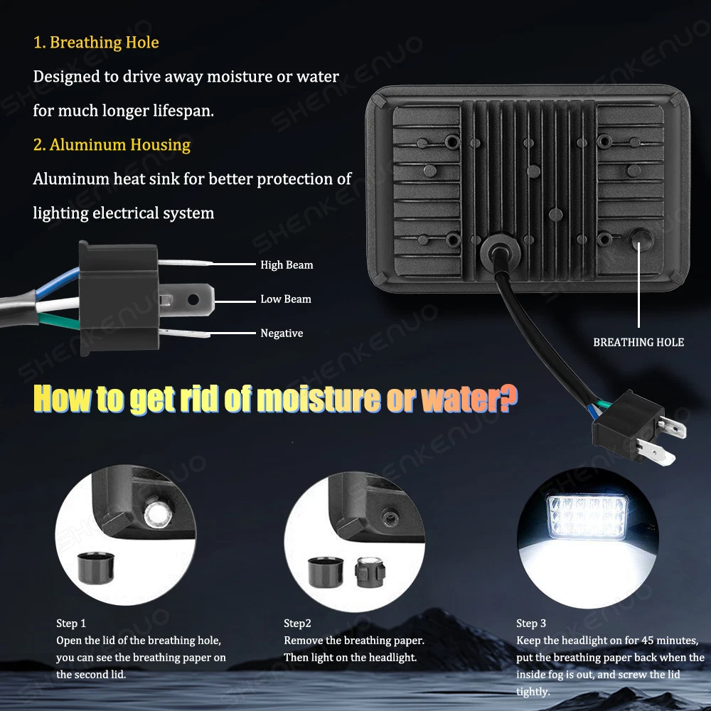 Number of Bulbs: 4 OE/OEM Part Number: H4651/H4652/H4656/H4666/H4668/H6545 Item Height: 108mm Lighting Technology: LED EAN: Does not apply Color Temperature: 6000K Voltage: 12 V Items Included: 4X6" LED Headlights 4pcs Brand: QUAYUB Type: Headlight Assembly UPC: Does not apply Lumens: 26000LM for Low beam 30000LM for high beam Light Color: Cold White Item Width: 78mm gtin13: Does not apply Manufacturer Part Number: H4651,H4652,H4656,H4666,H4668,H6545 Placement on Vehicle: Front, Left, Right Interchange Part Number: H4651/H4652/H4656/H4666/H4668/H6545 Finish: Textured, Smooth, Polished Performance Part: Yes Manufacturer Warranty: 1 Year Bulb Shape Code: 4x6 LED Headlight Universal Fitment: Yes Lens Color: Clear Vintage Part: No Item Length: 168mm Features: DOT-Certified, Factory Headlights, CAPA-Certified, ISO-Certified, OE-Certified, Reflector Housing, SAE-Certified, Sealed Assembly Mounting Style: Screws Superseded Part Number: H4651/H4652/H4656/H4666/H4668/H6545 Wattage: 45 W Housing Color: Black