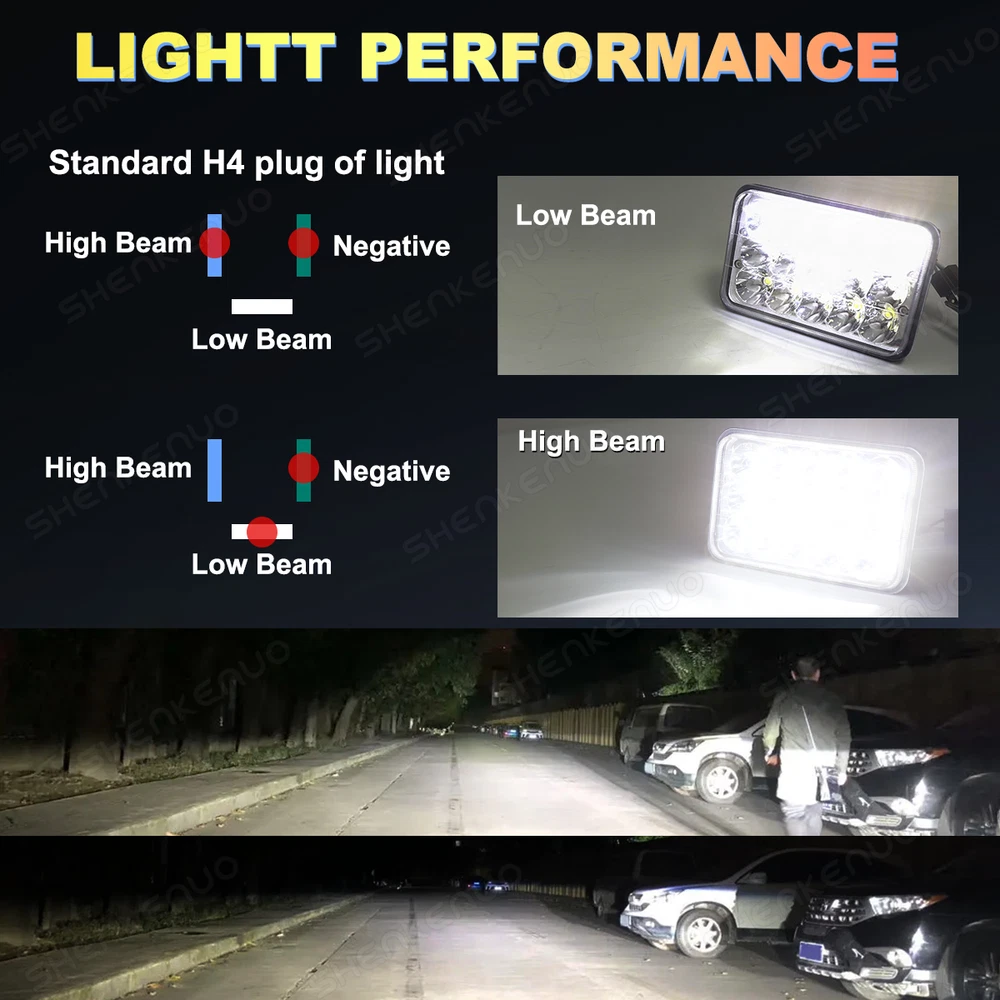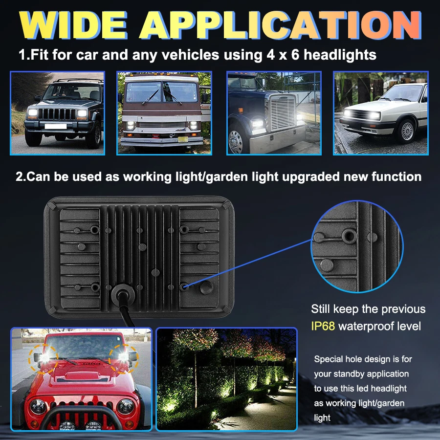 QUAYUB Customer's Experiences Images Collected from Our Customers 8000K ICE BLUE 6000K White 3000K Golden yellow Item Description Specification: The LED headlight upgrade. These headlights offers LED low beam and high beam in the same light. Compatible with headlights: H4651 H4652 H4656 H4666 H6545. Can be used as low beam or high beam. Pins on plug may need to be moved on some vehicles. See disclaimer. specification: 1.LED Power: 45W 2.Operating Voltage: 9-32V DC 3. Waterproof rate: IP-68 4.Optional Color :Black 5. Color Temperature: 6000K 6.Life time: 50000+ hrs 7. 26000LM for Low beam 30000LM for high beam 8.Size: approx.168mm*108mm*78mm (6"*4") 9.Light: 15x 3W High Power LEDS 10.Beam Pattern: Flood Beam/ Spot Beam 11.Housing Material: Black Aluminum 12.Lens Material: High Quality Clear Plastic 13.Hours: 50000+hours Product advantages: 1. 80% energy saving than traditional halogen lamps, 10 times the brightness of halogen lamps under the same power, green and environmental protection, no mercury, lead and other polluting elements, no pollution to the environment, no ultraviolet and infrared radiation, no harm to the human body, no radiation ! 2. White light source, easy for human eyes to accept, will not feel tired 3. Non-destructive installation, high brightness, very concentrated light, fast heat dissipation; 4. Large-area pure copper substrate + customized special ultra-bright imported LED chips; 5. Heat dissipation: high-speed silent directional supercharged cooling and heat dissipation; 6. Energy-saving design, brighter and more energy-saving than ordinary LEDs; 7. The induction is integrated, and the service life is more than 50,000 hours; 8. Easy installation, just connect to the wire directly; 9. It has the characteristics of explosion-proof, shock-proof, high temperature resistance, high pressure resistance, etc.; Package included: 4x6 led headlight(4PCS) Application range: Off-road vehicle/ATV/truck/boat/bus/engineering vehicle/(excavator, logging machine, road roller, bulldozer, crane, mining vehicle) special vehicle (fire truck, police vehicle, emergency vehicle, communication vehicle, military command vehicle) forklift , Trains, tanks and other vehicles to enhance the lighting Notice: 1. The product must be installed by professionals. 2. Please deny the power off before installation. 3. Please check the wiring after installation, if you have any questions, please feel free to contact us. If you have any questions, please contact us in time. 5. If the project cannot run normally, please contact us by email first. All our products are manufactured under the strictest quality control. FREQUENTLY ASKED QUESTIONS OF LED HEADLIGHTS: (6P, 7P) Question: Why the headlights not working or high/low beam not working properly? And how to solve it? Answer: Please see the 3 pin of the item one is connect to Ground(Negative), and one is to low beam and the other is High beam. 1.If you turn on the low beam on your car, your car socket should provide 12V between Ground and Low Beam, let low beam light up (6 led Light up); 2.If you turn on the High Beam, your car socket should provide 12V between Ground and High Beam, let high beam light up(all led light up) Our item is not difficult, just provide 12V power to it, it will light up. If you have any problem to control the situation of the light, please just change the socket to get a right power to get your target. Noted: The compatibility table is only for reference, please make sure to verify the installation dimension of your vehicle before purchasing. And thanks to know this item doesn't come with any mounting brackets. We are happy to help if you need any further information. Shipping Payment Returns Contact Us Shipping Economy Shipping, with no tracking number. Standard (ePacket) Shipping, with tracking number. Express (Expedited) Shipping, with tracking number. Economy shipping need 2-4 weeks to arrive mostly. In rare case, it can take up to 5-8 weeks. It depends on your location and local postal service(e.g., Russian Postal service is slow), as well as the weather condition along the shipping. If you need a faster delivery time, you could choose Express (Expedited) Shipping. If you need a tracking number, you could choose Standard (ePacket) Shipping. Payment We accept PayPal only. Payment must be made within 4 days of auction closing. (Non-payment may result in a UPI being put on your account. eBay will automatically close your account if you accumulate 4 UPI's total.) TOTAL AMOUNT DUE includes the final auction price plus S&H(Shipping and Handling). S&H will be determined based upon the SHIP TO address. PLEASE NOTE: S&H DOES NOT INCLUDE DUTIES, LOCAL TAXES OR ANY OTHER IMPORTATION FEES. Returns Any concerns, please feel free to let us know, we are happy to provide you assistance before/after buying. Anything caused your inconvenience we will do our best to correct. In case the item is wrong/defective, please do not throw it, just send us pictures (Small video) about the package & item, then we can confirm specific situations and provide you effective assistance. Contact Us Please leave five stars positive feedback positive comment and Five-Stars . Contact us if you have any question, Give us a chance to serve you, negative feedback could not solve anything,communication Please! ( NO ) Three stars is LOW star, NO 1,2,3 stars PLEASE! ( YES ) Please give us Five-star! Have Question or Problem?? Step 1 : Contact seller Step 2 : Select the 1st topic: I have a question about using my item or I want to send the seller a message. NO others please! Select a topic : I have a question about using my item or I want to send the seller a message(0)( YES ) YES, THIS ONE!!! We will try our best to solve online if possible, if not, will give correct return address. I did not receive my item(2)( NO ) I need to return my item(1)( NO ) I receive an item that was not as described(1)( NO ) Request to cancel this order(1)( NO ) Step 3 : Describe your quest