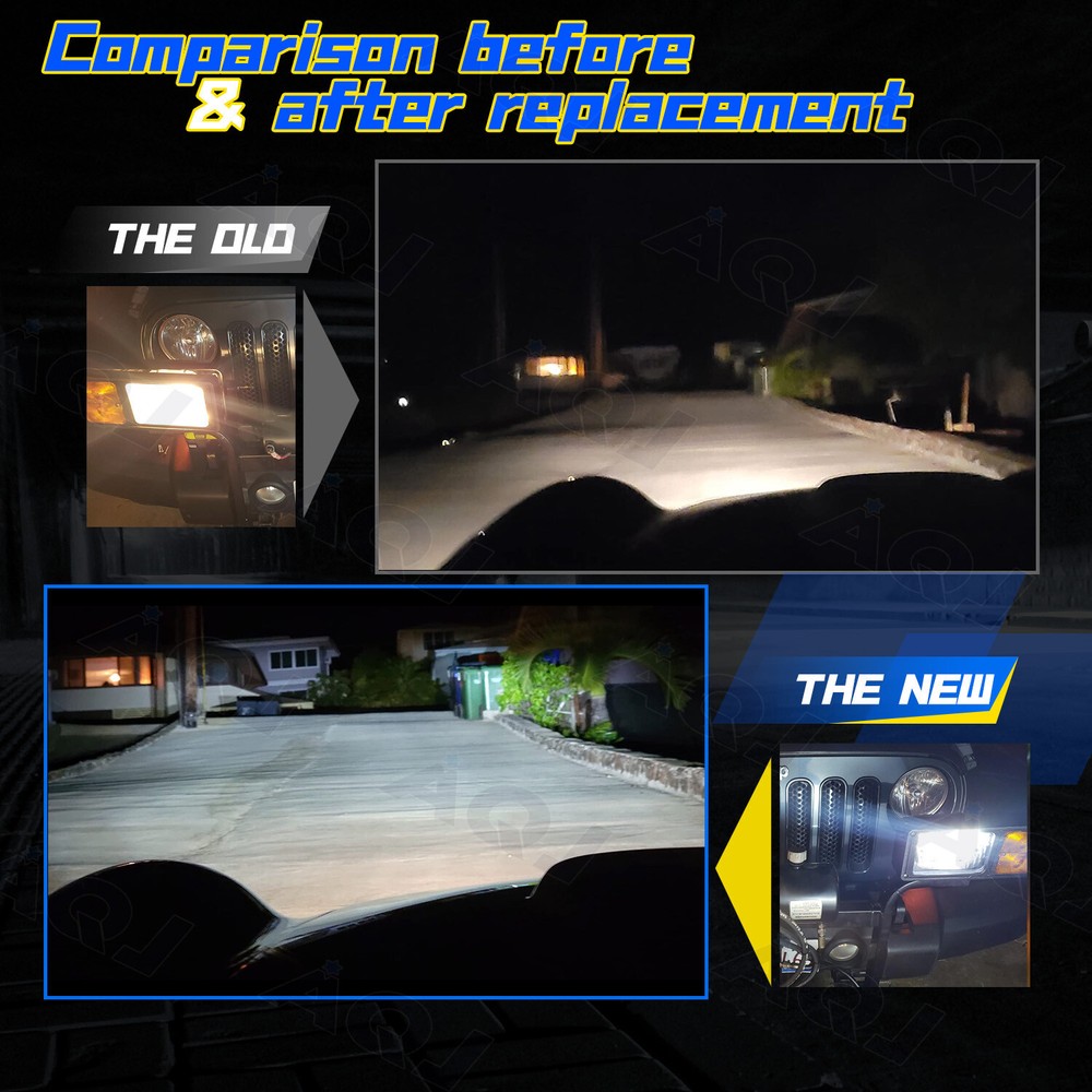4"x6" Stock Style High Low Beam Headlights w/ LED Bulbs - Set of 4 THESE ARE LED CONVERSION HEADLIGHTS WITH A STOCK STYLE GLASS LENS AND METAL HOUSING! INCLUDES (4) HIGH INTENSITY LED WHITE LIGHT BULBS! 4X6 INCH SQUARE HEADLIGHT - SET OF 4 Made from real glass and not cheap plastic Come with 4 LED Bulbs In-stock Note: Without mounting bracket, some models may need mounting bracket! STOCK STYLE GLASS LENS / METAL BACKSIDE FITS STOCK BUCKETS( Some models may require minor modifications ) HIGH LOW BEAM BRIGHTER AND WHITER THAN STOCK LIGHTS BULBS ARE REMOVABLE AND REPLACEABLE INCLUDES 6000k WHITE LED LIGHT BULBS DOT / SAE APPROVED. THIS LISTING IS FOR A NEW SET OF 4 - 4x6" STOCK STYLE GLASS LENS / METAL BACKSIDE LED CONVERSION HEADLIGHTS WITH WHITE LED LIGHT BULBS. THIS SET INCLUDES 4 HIGH LOW BEAM HEADLIGHTS. THESE ARE BRIGHTER AND WHITER THAN THE STOCK STYLE INCANDESCENT SEALED BEAM HEADLIGHTS. IN RARE CIRCUMSTANCES, WIRING MODIFICATION MAY BE REQUIRED. Description: Model: LED Bulb light Source Model: LED Chip, 2-sides leds, super bright Power: 400w/Set & 100w/bulb Lumen: 40000LM/Set & 10000LM/bulb Operating voltage: DC 9-32V ( Fit 12V,24V Vehicle ) Beam Type: High Low Beam Material: Aluminum PCB and PA66+30% GF Plastic Beam Angle: 360° Color Temperature: 6000K White Lifespan: over 50000h Working Temperature: -40-+80 Centigrade Waterproof rate: IP 68 Connector Type: Plug and Play Application: LED Headlights Headlamp Lamp Bulbs Low Beam Package Includes: 4PCS of Headlight Housing (Pair Passenger and Driver Side) 4PCS of LED Bulbs New boxes and old boxes are sent randomly!!! After service Notification: If you are satisfied with our product and service please leave us a positive feedback,if there is any problem when you received the package,please feel free to contact us,we will be definitely give you a satisfying solution,when you choose the return reason .please choose the reason"i don't like it". by this option we will accept your return immediately and provide return label for full refund. the others reason to return will take both of us many troubles to handle. If you have any questions, please feel free to contact us, we are happy to answer them for you. Hope you will have a good shopping experience~