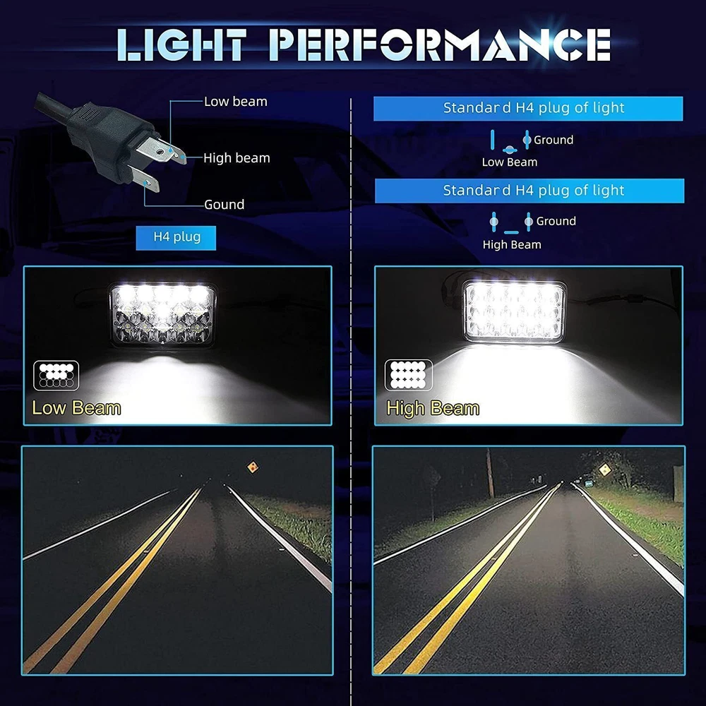 Features: -Newest 180W! Super bright ! High/Low beam -DOT approved,100% original best-performance Osram led chips with newest designed lens provide best vision for safe driving -Plug&Play,shock-proof and waterproof(IP68), Upgraded cooling system,More than 80,000 hours lifespan, Totally Risk-free under 3 year warranty -Better light pattern! Will NOT blind others' eyes while providing the brightest and widest vision. You can find similar headlights copied from us but they can't copy the inside. -With EMC: Anti-electromagnetic interference -Diecasting aluminum alloy shell is not easy to deform and will improve cooling performance -The real 180W brightness, the wider,farther,and safer light pattern, all make this best headlight in the market. Specification: -Type: LED reflector headlight -Size: 4x6inch -Function: Hi/Lo Beam -Operating Voltage: 9-32V DC, fit 12V/24V vehicles -LED Power: 180W@high beam; 72W@low beam -Current: 0.75A-3.75A -Luminous Flux: 18,000lm@high beam; 7,200LM@low beam -Waterproof rate: IP68 -Certifications: DOT, SAE, ISO9001, IP68 -LED Chip: 15pcs High intensity Osram LEDs -Color Temperature: 6000K -Material: Aluminium heat sink body -Lens material: PC Lens -Life Span: more then 80000 hours -Working temperature: -40~ 85C -Warranty: 5 years Package including: -4pcs 4x6 LED headlights Fitment :Chevy C4500 C5500 Kodiak 2003-2009