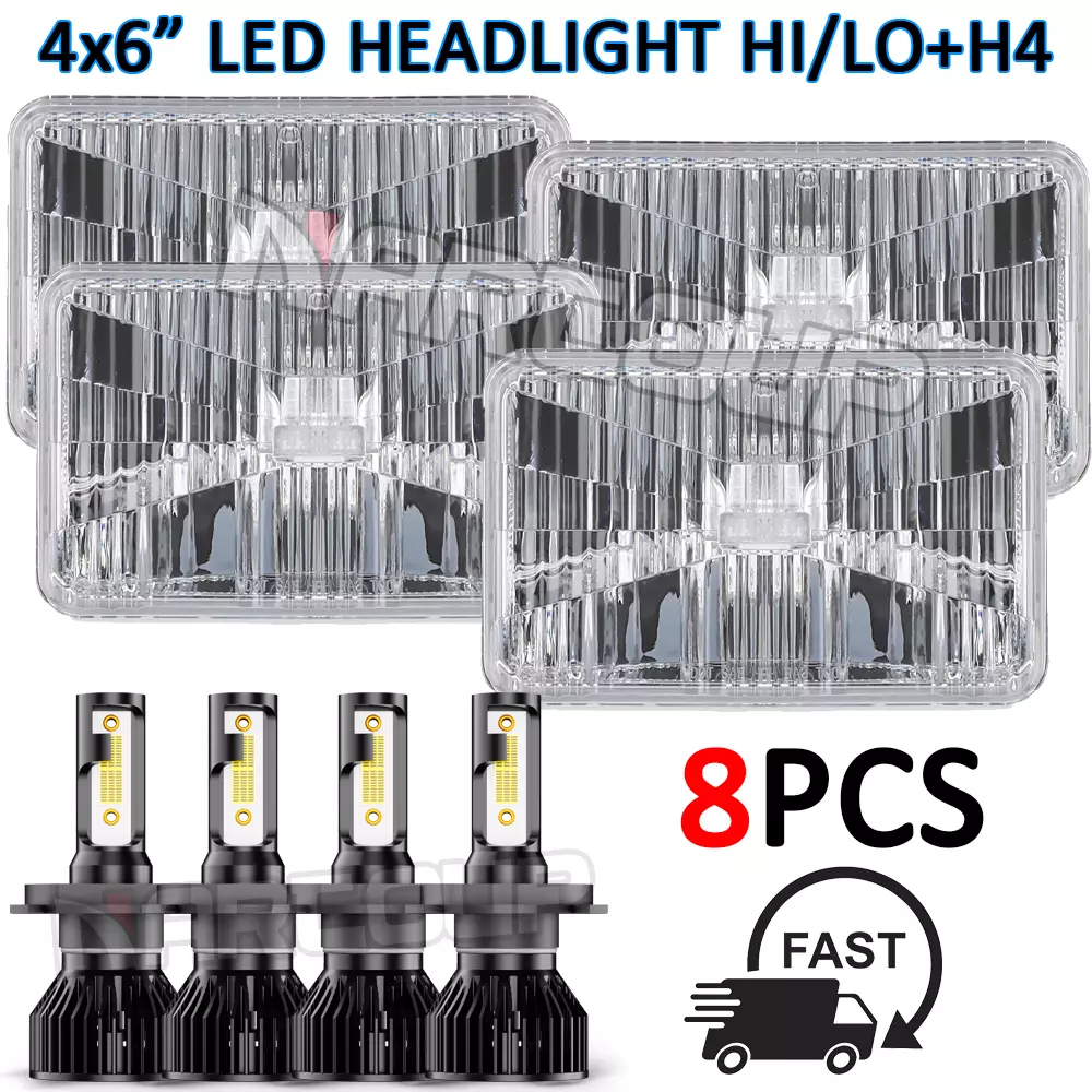 Nartoup 4"x6" Crystal Clear Glass Lens / Metal Backside H4 THESE ARE SEMI-SEALED BEAM DIAMOND CRYSTAL CLEAR GLASS FACED H4 HEADLIGHTS! Includes 100W Super White H4 LED Light Bulbs! Note: Without mounting bracket, some models may need mounting bracket! 4X6 INCH SQUARE HEADLIGHT - PAIR DIAMOND CRYSTAL CLEAR GLASS LENS / METAL BACKSIDE FITS STOCK BUCKETS,( Some models may require minor modifications ) LOW BEAM AND HIGH BEAM BRIGHTER AND WHITER THAN STOCK LIGHTS BULBS ARE REMOVABLE AND REPLACEABLE Includes 100W Super White PAIR H4 LED Light Bulbs! PLUGS INTO FACTORY WIRING PLUGS DOT / SAE APPROVED THIS LISTING IS FOR A NEW PAIR (four HEADLIGHTS) - 4x6" CRYSTAL CLEAR GLASS LENS / METAL BACKSIDE H4 CONVERSION HEADLIGHTS WITH 100W LED LIGHT BULBS. THIS SET INCLUDES 4 LOW / HIGH BEAM HEADLIGHTS. THESE HAVE THE ORIGINAL SHAPED PRONGS ON THE BACK SO THEY WILL PLUG RIGHT INTO YOUR ORIGINAL WIRING HARNESS PLUGS. THESE LIGHT UP 300% BRIGHTER THEN THE STOCK STYLE INCANDESCENT BULBS. IN RARE CIRCUMSTANCES, WIRING MODIFICATION MAY BE REQUIRED. THESE ARE FOR ANY CAR OR TRUCK THAT HAS SQUARE 4x6" HEADLIGHTS. DOT / SAE APPROVED. THESE ARE GLASS AND WE WILL TAKE EXTRA CARE IN PACKAGING. Product Specification: Bulb Size:H4 9003 HB2 Number of Bulbs:4 Material:Metal Type:Headlight Kit To Fit:Headlight Bulb Color:White Bulb Type:LED LED Type :CSP CHIP Color Temperature: 6000k-6500k Light Color:White Wattage:100W/bulb Lumens:10000LM/bulb Lifetime:50,000hrs Waterproof Rating:IP68 Waterproof Operation Voltage:DC 9-32V ( Fit 12V,24V Vehicle ) Beam Angle:360 Degrees Beam Operating Temperature: -40 - +80℃ Placement on Vehicle: Front, Left, Right Products include: 4pcs 4X6" lamp shade 4pcs H4/9003 CSP chip LED 4pcs H4 9003 to H13 9008 Connectors Cable Adapters Harness After service Notification: If you are satisfied with our product and service please leave us a positive feedback,if there is any problem when you received the package,please feel free to contact us,we will be definitely give you a satisfying solution,when you choose the return reason .please choose the reason"i don't like it". by this option we will accept your return immediately and provide return label for full refund. the others reason to return will take both of us many troubles to handle. If you have any questions, please feel free to contact us, we are happy to answer them for you. Hope you will have a good shopping experience~