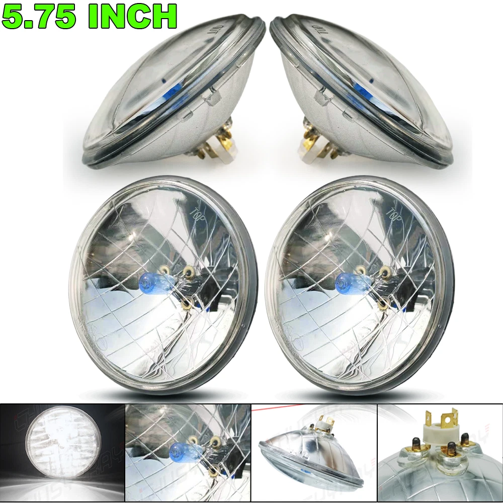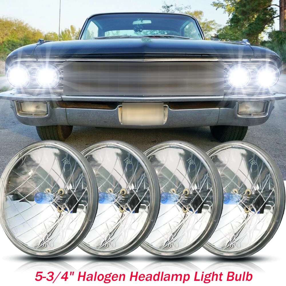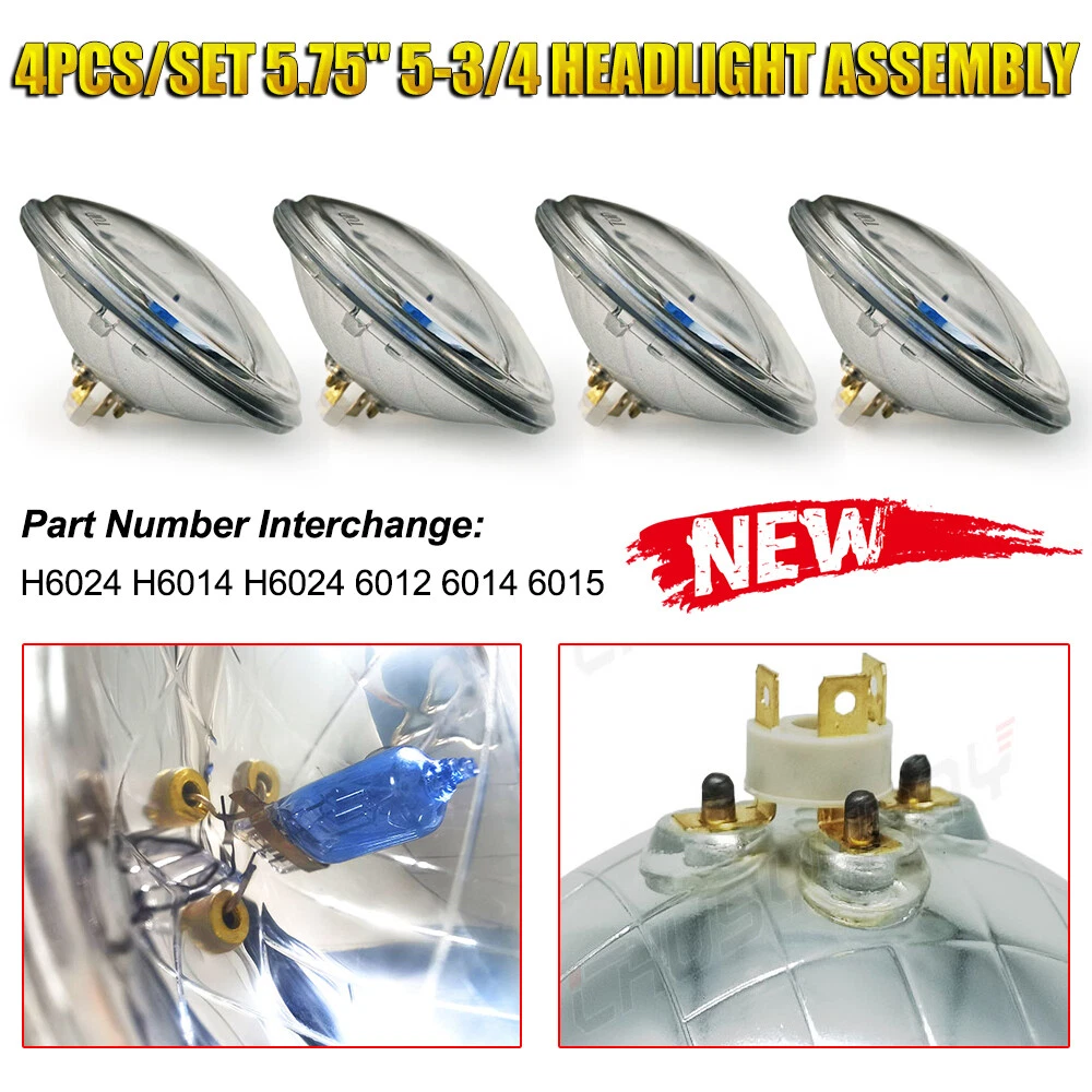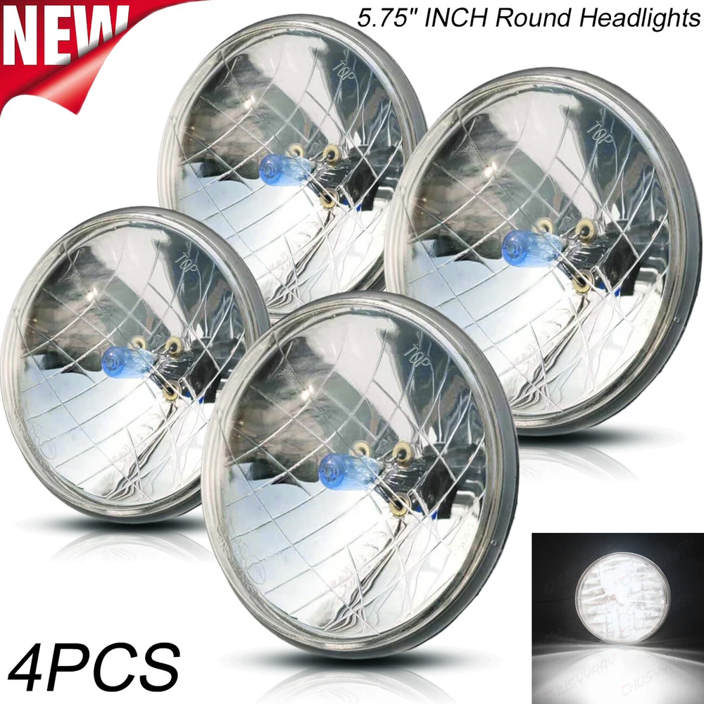These Are Halogen Crystal Clear Sealed Beam Glass Faced Headlights! With 40w Ultra Bright White Bulbs This Listing Is For a Set Of 4 New 5 3/4" Crystal Clear Glass Faced Halogen Headlight Bulbs. These Have The Original Shaped Prongs On The Back So They Will Plug Right Into Your Original Wiring Harness Plugs. These Will Fit Any Car Or Truck That Has 4 Round Glass Headlights, Some Cars May Need Modification To The Headlight Buckets For Backside Clearance. Each Bulb Is 5 3/4 Inches In Diameter. These Are Glass And We Will Take Extra Care In Packaging. Specification: Power: 80W/Pair 40W/Pcs Dimension: 5.75" Dia.(5.75 inch) Input: 12-24V DC Operating Voltage: 9-32V DC Material: Aluminum + PMMA Clear Lens Lens Pattern: High & Low Beam Color Temperature: 6000K Cool White Waterproof:IP 67-68 Connector: H4 / 9003 (Low Beam and High Beam) Life Span: Above 50,000 Hours Package include: 4 x 5.75Inch Round headlight Information: a)Compatible List can not show up all Car model. Please check the Correct item size of your vechicle. it will work and fit.Thank you! b)If you are unsure the item fit or not , please do remember send message to tell us your car make, model, year and other information which is helpful to check the item fit or not.For example: For 2004 Ford F 150, high/low beam For 2015 RAM 1500 with projector-type, high beam For 2019 Ford F 150 ,XL Crew Cab Pickup 4-Door 2.7L Notice: Please check whether it is fit for your vehicle before purchase. Please allow 1-3mm in size deviation due to manual measurement. Due to the light and shooting angle, pictures may have slightly chromatic aberration. INSTALLATION: No installation guide or instruction included, professional installation recommended. Any damage during installation will not be refunded. Fitment Interchange h5006: 4000 / 4040 / 4002 / h5009 / h5506 / 2c1 h5001: 5001 / 4001 / 4004 / h5010 / h5501 / h4001 / 1c1 Note: Without Mounting Bracket, Some Models May Need Mounting Bracket! **Car Compability Chart For Search Purposes Only** Contact us: If the product is not suitable or there is a quality problem, please contact our customer service directly to solve the problem. We will give you a satisfact. On Dec 12, 2024 at 03:09:34 PST, seller added the following information:
