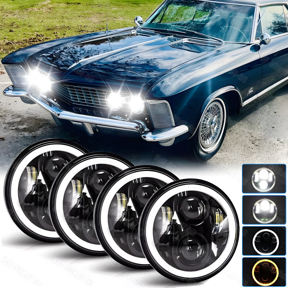 5 3/4" 5.75 Round LED Headlights Notes: 1. Please check whether it is fit your vehicle before purchase. 2.The compatibility table is only for reference, please make sure to verify the bulb type of your vehicle before purchasing. We are happy to help if you need any further information. 3. Installation instruction is NOT included,professional installation highly recommended. Technical Specification Power:90W@high beam,60W@low beam Style: 5.75" H4 round sealed-beam, black inner bezel LED Quantity: 9pcs* high power chips,Pure White 6000K Working Voltage: DC 10-30V(fit 12V/24V vehicles) Luminous Flux: apporx 9000lm@low beam, 6000lm@high beam Material: black die-cast aluminum profile,clear hard coated PC lens IP67 water and dust seal,about 30,000 hours lifetime Two Modes: High Beam-All LEDs on,Top and two side LEDs on Package Included: 4x 5-3/4" 5.75" LED projector headlights Application: fit for Ford Gran Torino 1974 fit for Peterbilt 352 359 fit for Kenworth W900a fit for Chevy Chevelle 1965-1970 fit for Lincoln Continental 1962-1979 fit for Dodge Challenger 1970-1974 fit for Dodge Monaco 1965-1976 fit for Cadillac DeVille 1962-1974 fit for Chrysler Town & Country 1962-1977 fit for Oldsmobile Cutlass 1962-1973 fit for Plymouth Fury 1962-1974, etc...