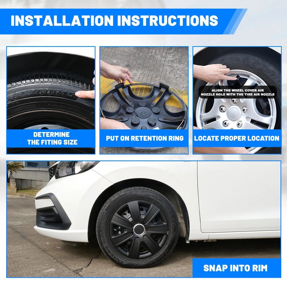 Head Lights Tail Lights Fog Lights Turn Signal Bumper Fender Flare Inner Fender Hubcaps Refrigerator Other Items for sale Head Lights Tail Lights Fog Lights Turn Signal Bumper Fender Flare Inner Fender Liners Portable Refrigerator 4PCS Black Matte 14'' Hubcaps For Toyota Nissan Chevy Wheel Covers Snap On R14 Features: Universal Fit - Design for 14" wheel hubs. Please know that and check your wheel before purchase to ensure fitment. Protect Your Wheels - Keep your vehicle looking sleek and new with these universal-fit hubcaps that offer reliable protection against scratches, dings, and other types of damage. Durable - Made from high-quality ABS materials, these hubcaps are built to withstand the rigors of daily use, keep your vehicle looking great for years. Stylish - Upgrade the look of your car or truck with these sleek hubcaps to enhance the appearance of your vehicle. Easy to Install - Designed to fit most standard wheel size, these hubcaps can be quickly and easily snap on your wheels without the need for special tools, making them a great choice for busy vehicle owners. Specification: Type: Wheel Hub Caps Color: Black Matte Compatible Wheel Diameter: 14 inch / R14 Features:Car Wash Safe, Easy to Install, No Tools Required Material: ABS Number in Pack: 4 Wheel Type: Steel Placement on Vehicle: Front, Left, Rear, Right Package Includes: 4* Wheel Cover Hubcaps Payment Shipping Return About us Contact us Payment Appreciated for the prompt payment, Contact us if bid by mistake, system open unpaid item automatically. Payment must be complete within 3 days from the date you purchase or after the end of auction. Items unpaid within 3 days of the auction end will be forfeited. We reserve the right of cancel the order and re-selling the items. Shipping All shipment will ship by UPS or USPS . All items will be ship within 1 working days , and we will ship out all orders as soon as possible after payment verified, please allow up to 1-4 business days for delivery. CANADA & International customers please note: your government might charge a duty tax (brokerage fees). We do not responsible for any custom duty or import tax. Why Choose the US Stock? 1. Us Local Shipping, No Extra Customs Cost to the US. 2. Fast Delivery: 1-4 Working days Delivery. 3. Best After-Sales Service!!! Return The buyer is responsible for all return shipping including a result of customer error or defective item. 1) If you received an incorrect, damaged, defective, or item not as described, contact us for full refund or replacement on our cost. 2) If you want to return the item, please contact us within 60 days after package received. Return products must also be in its original condition: including box, packaging and all other accessories. About us We are the best auto parts, we have been pursuing excellence, continuous exploration as the slogan, let customer satisfaction is our purpose! We adhere to the United States local delivery, one year warranty! Welcome! Contact us How Should You Contact us? Please Read The Item Description And See if The item Fits Your Vehicle Exactly. If You Found Any questions, Feel Free to email us by "Ask a question" Our Office Hours Are Monday - Friday 8:00am - 5:00pm PST / 11:00am - 8:000pm ET, We Do Not Answer Any E-Mails On Weekend, And We Will Reply All E-Mails In The Order It Was Receive. All E-Mail Take Us Around 24 Hours To Respond To Any E-Mail. We Are Close During The Weekends And We Do Not Answer Any E-Mails During That Time. Brand AUTOWIKI Type Hub Cap Features Easy to Install, Lightweight, No Tools Required, Unique design Compatible Wheel Diameter 14 in Number in Pack 4 Placement on Vehicle Front, Left, Rear, Right OE/OEM Part Number Does not apply Color Sliver & Black Manufacturer Part Number Does not apply Material ABS Plastic Manufacturer Warranty 1 Year Country/Region of Manufacture United States Finish Lacquer Performance Part Yes Universal Fitment Yes Installation Type Snap-On Model 14 in Universal Hubcap