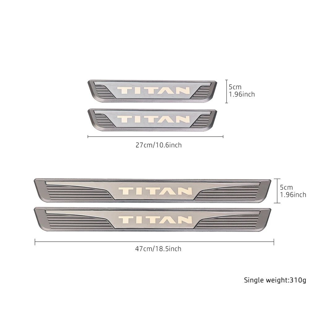 Store Categories Store Categories Other 4PCS Car Accessories Door Scuff Sill Cover Plate Protector Trim For Nissan TITAN Product Description Note! This is universal fitment; please check the size before ordering! Product Specifications Auto Door Sill Plate Protectors Black Mirror surfacestainless steel Front/Rear Door Sill Scuff Plate Guard, Welcome Pedal Protector CoverVehicle Fitment Condition: Brand New Material: Stainless Steel & ABS Plastic Compatible Models: Fit for 2004-2024 Nissan TITAN Models Features: Scratch-resistant, corrosion-resistant, Stylish Look, easy installation Color: Black Type: Door Sill Protector / Threshold Cover / Door Sill Cover / Panel Step Protector Package Includes: 4-piece set (front and rear door sill covers) Installation: Adhesive backing, no drilling required Product Size: Long Size 18 1/2"(L) x 2"(W) x 1/4"(H); Short Size 10 3/5"(L) x 2"(W) x 1/4"(H) What’s in the Box 2 front door sill covers 2 rear door sill covers Pre-applied adhesive strips for quick installation How to Install Clean the door sill area to remove dust and debris. Peel the adhesive backing from the door sill cover. Align the cover to your Nissan TITAN door sill and press firmly. Enjoy added protection and style in minutes! Features High-Quality Material - This item is made of high-quality silicone polymer material, heat /cold resistance, abrasion resistance, anti-aging, and waterproof. Color Black Manufacturer Part Number 000-BXG-RC/TT-BK Material Stainless steel+ABS Vintage Part No Placement on Vehicle Left, Right, Front, Rear, Lower Brand LB-US Type Door Interchange Part Number 000-BXG-RC/TT-BK OE/OEM Part Number 000-BXG-RC/TT-BK Manufacturer Warranty 1 Year Attachment Type Self-Adhesive Fitment Fit for 2004-2024 Nissan TITAN Models Features Easy Installation, Heat Resistant, Self-Adhesive, Waterproof Vintage Car Part Yes Universal Fitment Yes Finish Painted Performance Part Yes Country/Region of Manufacture China Payment Policy Shipping Policy Returns Policy Contact Us Payment Policy Product shipment will be processed only after payment is cleared. Shipping and handling will be confirmed according to the ship-to address. Shipping Policy Your shipping address must be correct. Service shipping time is provided by the carrier, excluding weekends and holidays. Shipping time may vary, especially during the holiday season. If you have not received the goods in thirty days after payment, please contact us. We will look for tracking shipment and inform you of the latest situation. If there is any issue, you can contact us in time. We will solve the problem for you as soon as possible; our goal is to make every customer satisfied! Returns Policy If you are not satisfied, you can apply for a return, but you need to bear the shipping cost. Contact Us If you have any problems or concerns whatever with your order or products, please message us and give us a chance to assist you before you leave any feedback, Please contact us directly via email or message, we would get back to you within 1 b usiness day Copyright © 2023 Dianxiaomi
