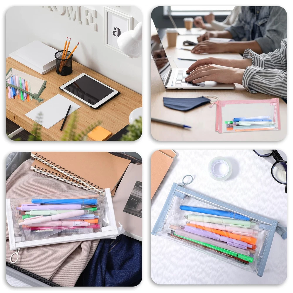 4PCS Clear Pencil Cases, Waterproof Pen Pouch with Zipper, Portable Travel Cosmetic Makeup Pouch, Stationery Toiletries Organizer, Multi-function Storage Organizer for Home Office Vacation Accessories 【Value Pack】You will get a sufficient number of marker bags for four (blue, white, pink, green), enough to meet your needs for different uses. The clear material organizer bags make it easy to see what's inside and help distinguish items. 【Premium Material】The pen cases for adults are made of high quality PVC materials, waterproof and easy to dry, the surface can be cleaned with just a light wipe. The smooth, sturdy zipper closure of the clear pouch secures contents in place, preventing spills or losses, while enabling hassle-free access. 【Easy to Carry】Our portable clear travel case each measuring about 22 x 5.5 x 10.5 cm (8.7 x 2.2 x 4.1 inches), enough to satisfy your daily use. Compact and lightweight, the clear cosmetic bag effortlessly fit into handbags, providing convenient organization without occupying excess space. 【Multifunctional Storage】Our small storage bag can not only hold pens, pencils, erasers and other stationery, but also can be used as a travel bag, toiletry bag, makeup bag, coin wallet, cable accessories bag. The makeup brush bag is suitable for office, home, travel use, to maximize your daily basic needs. 【Thoughtful Gifts】Our clear pouches with zipper is designed to be transparent, easy and quick to view and access the items you need, save you time. These waterproof zipper pouches make for a thoughtful and practical Christmas gift choice, enhancing convenience and efficiency in daily routines. Features: Do you often spend time searching for things? Do you worry about your belongings being too cluttered? Take a look at our exquisite zipper bags! This PVC organiser includes pink, green, blue and white, simple and practical styles to help you organize your stationery, cosmetics and small items, enough for your daily needs. Small size, large capacity, very lightweight and convenient, can be easily put into your clearbag, backpack or handbag, easy to carry. Ideal gifts for artists, writers, or anyone in need of organizational assistance. Specifications: Materials: Polyester + PU leather + PVC Colors: Blue, White, Green, Pink Dimensions: 22x5.5x10.5cm/8.66x2.16x4.13in Packaging contents: 1 x Blue Storage Bag 1 x White Storage Bag 1 x Green Storage Bag 1 x Pink Storage Bag Note: 1. Please check if it is the size you need before purchasing. 2. Please allow slight differences due to manual measurement. 3. Due to light and screen difference, the item color may be slightly different from the pictures. Please understand. Shipping We offer FREE shipping on all orders! We ship within Three business days of payment, usually sooner. We use a selection of shipping services such as UPS, FedEx, USPS etc. We only ship to the lower 48 states, no APO/FPO addresses or PO Boxes allowed. Local pickups and combined shipping options are not provided at this time. Return You can return a product for up to 30 days from the date you purchased it. Any product you return must be in the same condition you received it and in the original packaging. Please keep the receipt. Payment We accept payment by any of the following methods: PayPal Please pay as soon as possible after winning an auction, as that will allow us to post your item to you sooner! Feedback Customer satisfaction is very important to us. If you have any problem with your order, please contact us and we will do our best to make you satisfied. Contact Us If you have any queries, please contact us via ebay. We usually respond within 24 hours on weekdays. Please visit our eBay store to check out other items for sale! Thank you for shopping at our store.