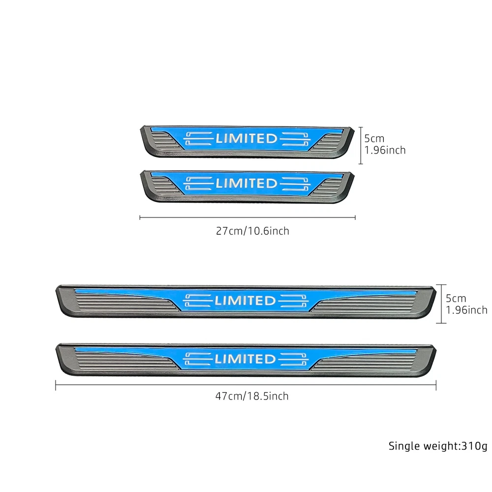 Store Categories Store Categories Other 4PCS Door Sill Cover Plate Panel Step Protector Trim for Toyota Corolla Cross Product Description Note! This is universal fitment; please check the size before ordering! Product Specifications Auto Door Sill Plate Protectors Blue Mirror surfacestainless steel Front/Rear Door Sill Scuff Plate Guard, Welcome Pedal Protector CoverVehicle Fitment Condition: Brand New Material: Stainless Steel & ABS Plastic Compatible Models: Fit for 2022-2024 Toyota Corolla Cross Models Features: Scratch-resistant, corrosion-resistant, Stylish Look, easy installation Color: Blue Type: Door Sill Protector / Threshold Cover / Door Sill Cover / Panel Step Protector Package Includes: 4-piece set (front and rear door sill covers) Installation: Adhesive backing, no drilling required Product Size: Long Size 18 3/4" x 1 7/8" x 1/4"h; Short Size 10 5/8" x 1 7/8" x 1/4"h What’s in the Box 2 front door sill covers 2 rear door sill covers Pre-applied adhesive strips for quick installation How to Install Clean the door sill area to remove dust and debris. Peel the adhesive backing from the door sill cover. Align the cover to y ou r Corolla C ross door sill and press firmly. Enjoy added protection and style in minutes! Features High-Quality Material - This item is made of high-quality silicone polymer material, heat /cold resistance, abrasion resistance, anti-aging, and waterproof. Color Blue Manufacturer Part Number 000-BXG-CROSS-FT/KLL-BU Material Stainless steel+ABS Vintage Part No Placement on Vehicle Left, Right, Front, Rear, Lower Brand LB-US Type Door Interchange Part Number 000-BXG-CROSS-FT/KLL-BU OE/OEM Part Number 000-BXG-CROSS-FT/KLL-BU Manufacturer Warranty 1 Year Attachment Type Self-Adhesive Fitment Fit for 2022-2024 Toyota Corolla Cross Models Features Easy Installation, Heat Resistant, Self-Adhesive, Waterproof Vintage Car Part Yes Universal Fitment Yes Finish Painted Performance Part Yes Country/Region of Manufacture China Payment Policy Shipping Policy Returns Policy Contact Us Payment Policy Product shipment will be processed only after payment is cleared. Shipping and handling will be confirmed according to the ship-to address. Shipping Policy Your shipping address must be correct. Service shipping time is provided by the carrier, excluding weekends and holidays. Shipping time may vary, especially during the holiday season. If you have not received the goods in thirty days after payment, please contact us. We will look for tracking shipment and inform you of the latest situation. If there is any issue, you can contact us in time. We will solve the problem for you as soon as possible; our goal is to make every customer satisfied! Returns Policy If you are not satisfied, you can apply for a return, but you need to bear the shipping cost. Contact Us If you have any problems or concerns whatever with your order or products, please message us and give us a chance to assist you before you leave any feedback, Please contact us directly via email or message, we would get back to you within 1 b usiness day Copyright © 2023 Dianxiaomi