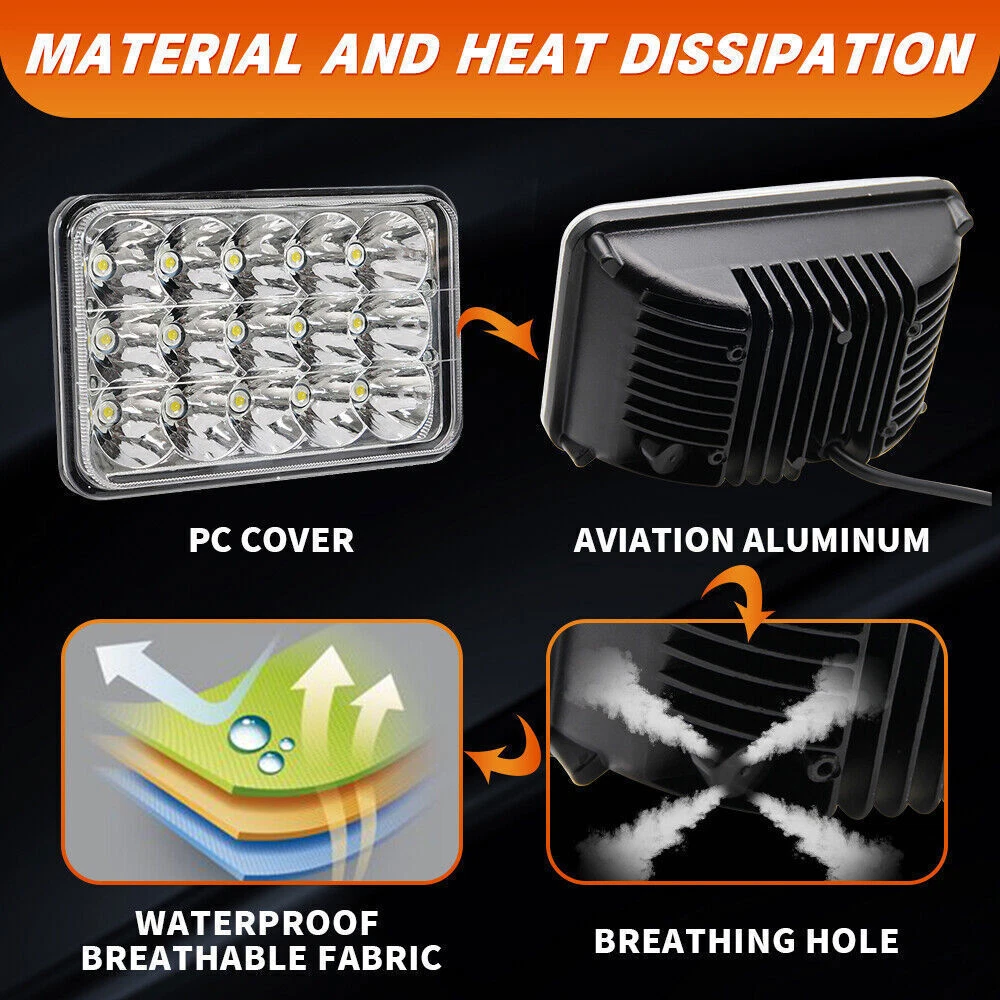 Features: -Newest 180W! Super bright ! High/Low beam -DOT approved,100% original best-performance Osram led chips with newest designed lens provide best vision for safe driving -Plug&Play,shock-proof and waterproof(IP68), Upgraded cooling system,More than 80,000 hours lifespan, Totally Risk-free under 3 year warranty -Better light pattern! Will NOT blind others' eyes while providing the brightest and widest vision. You can find similar headlights copied from us but they can't copy the inside. -With EMC: Anti-electromagnetic interference -Diecasting aluminum alloy shell is not easy to deform and will improve cooling performance -The real 180W brightness, the wider,farther,and safer light pattern, all make this best headlight in the market. Specification: -Type: LED reflector headlight -Size: 4x6inch -Function: Hi/Lo Beam -Operating Voltage: 9-32V DC, fit 12V/24V vehicles -LED Power: 180W@high beam; 72W@low beam -Current: 0.75A-3.75A -Luminous Flux: 18,000lm@high beam; 7,200LM@low beam -Waterproof rate: IP68 -Certifications: DOT, SAE, ISO9001, IP68 -LED Chip: 15pcs High intensity Osram LEDs -Color Temperature: 6000K -Material: Aluminium heat sink body -Lens material: PC Lens -Life Span: more then 80000 hours -Working temperature: -40~ 85C -Warranty: 5 years Package including: -4pcs 4x6 LED headlights Fitment :Chevy C4500 C5500 Kodiak 2003-2009