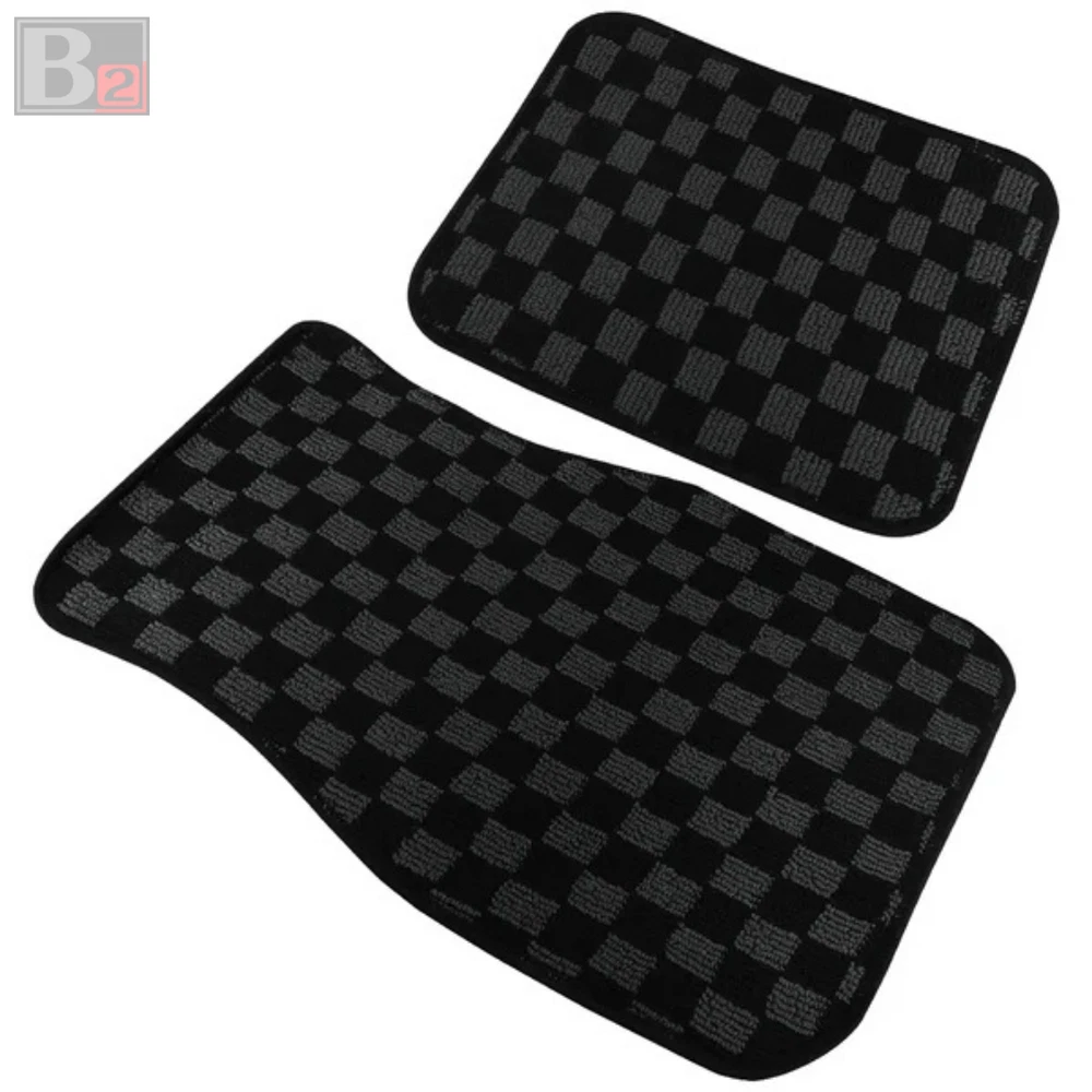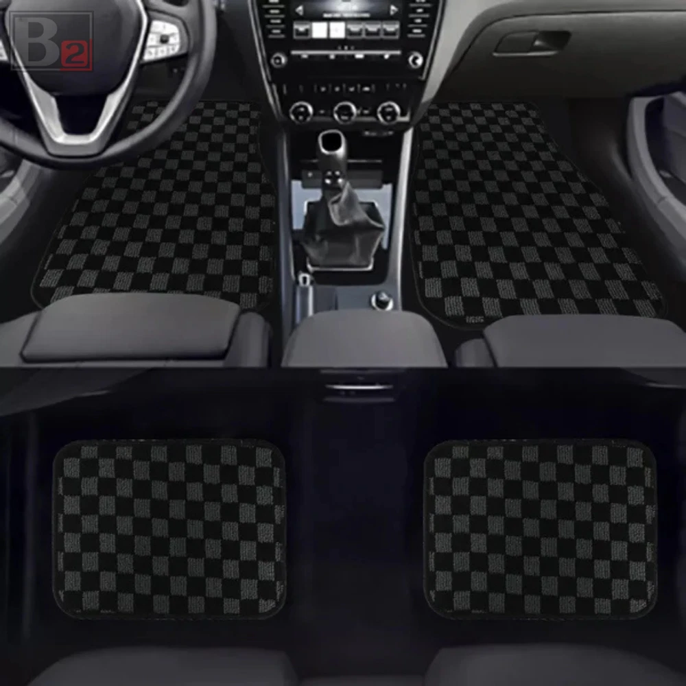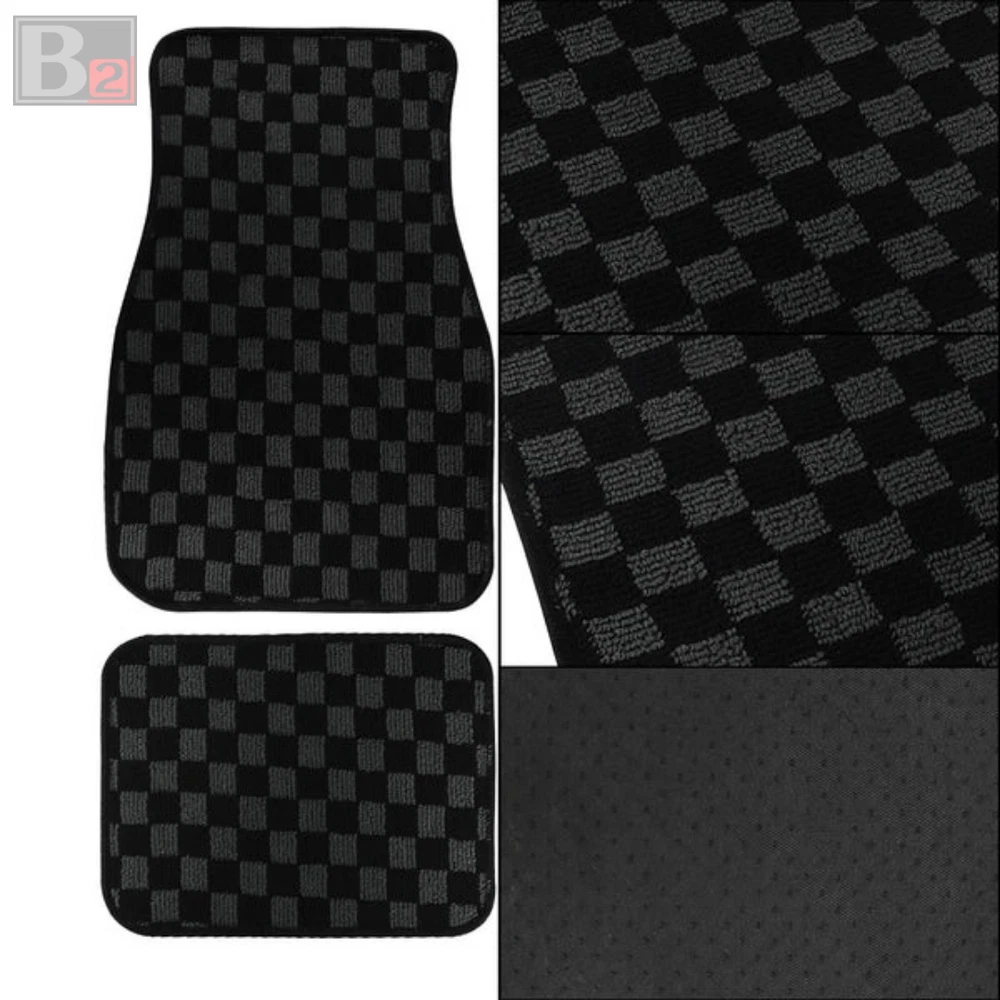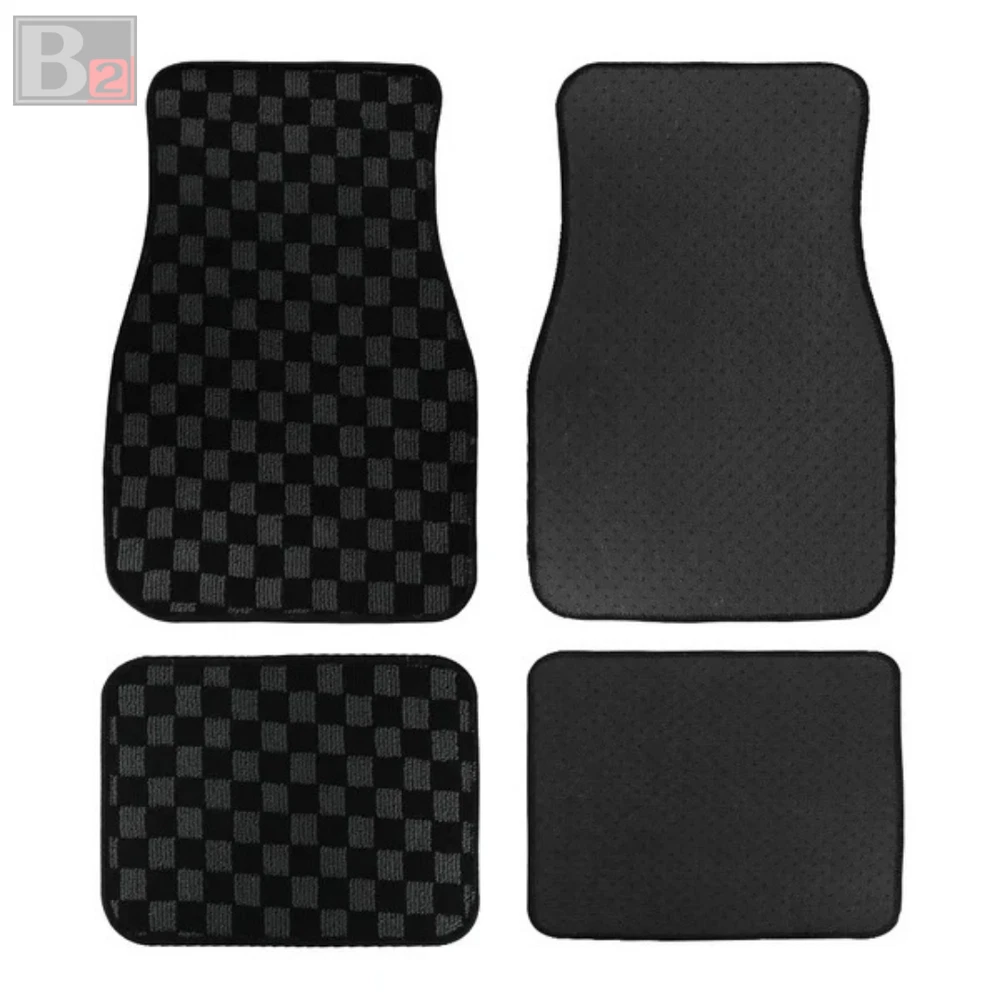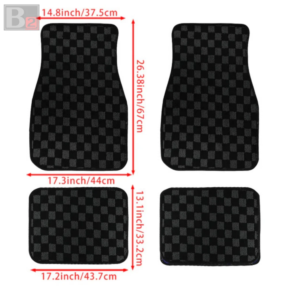 4PCS JDM Checkered Black Floor Mats Interior Carpet Universal