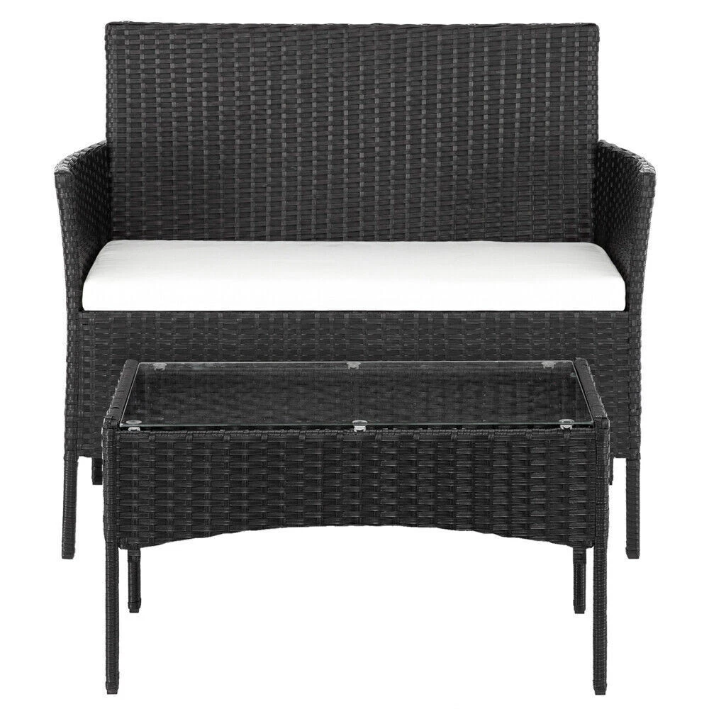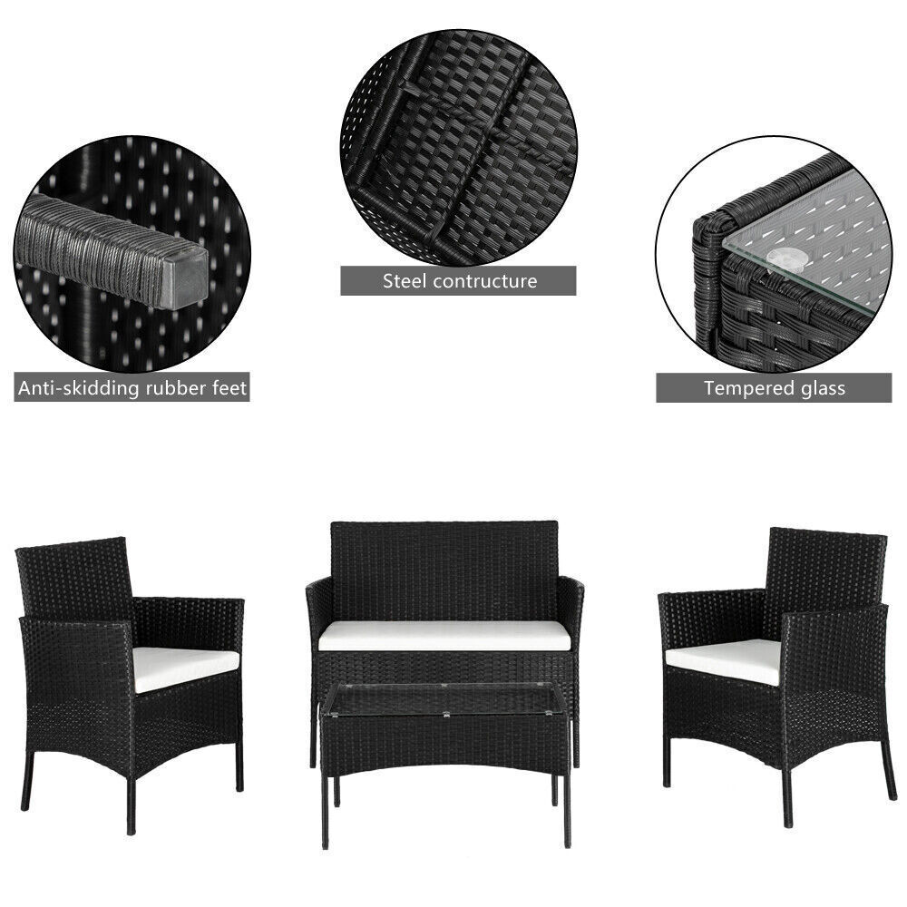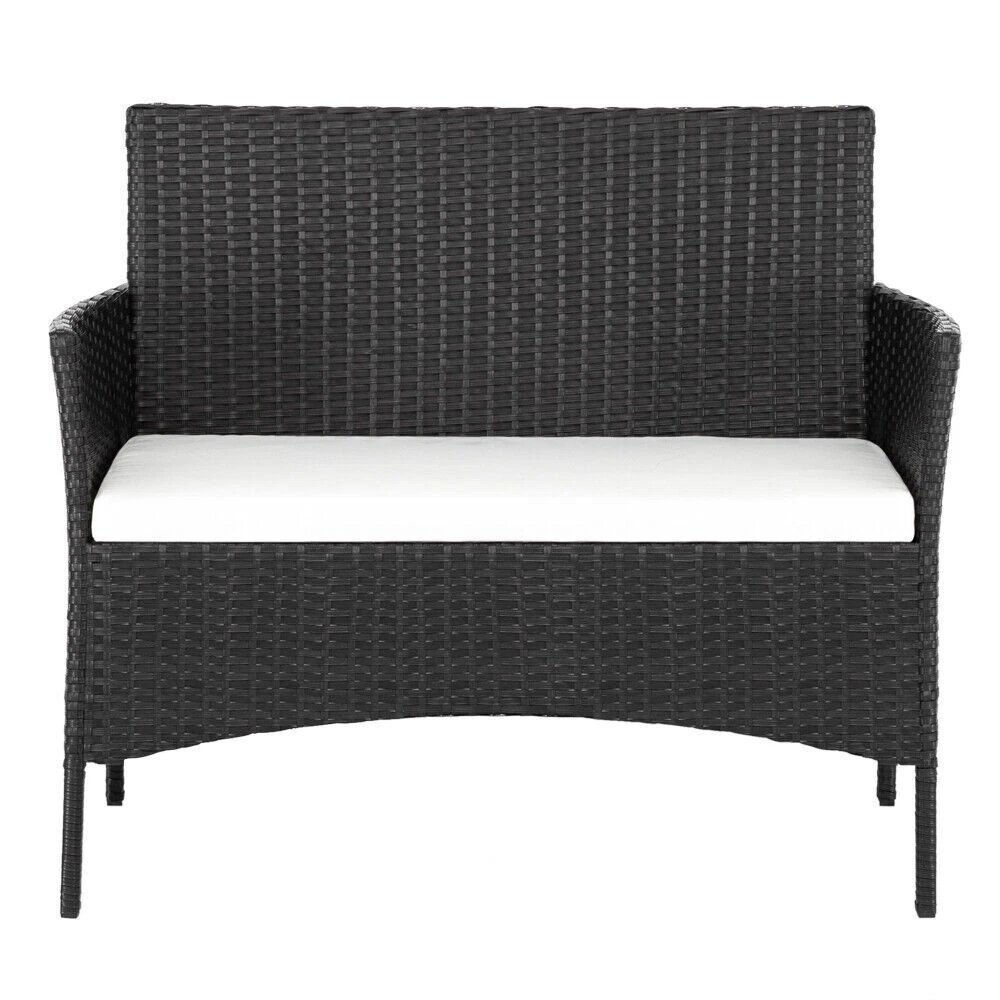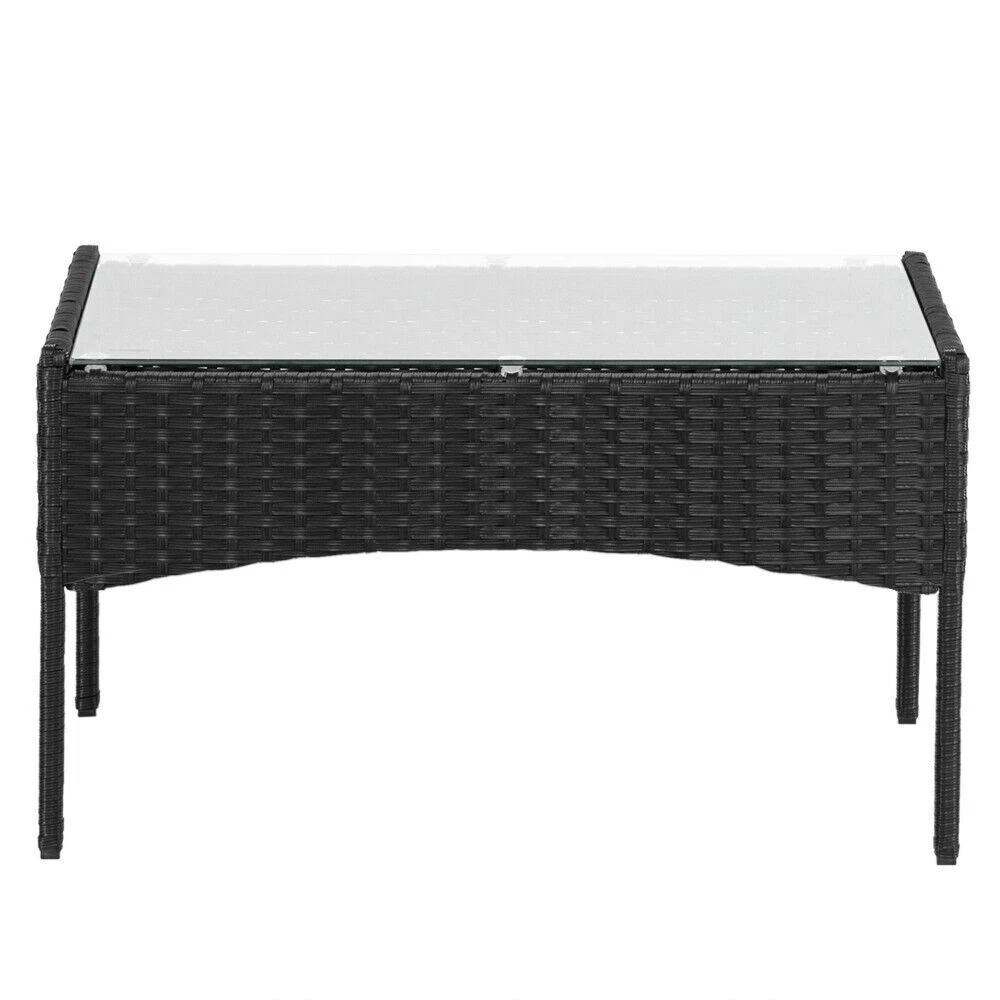 DESCRIPTION: Condition: 100% New Colour: As the picture shown Are you looking for a comfortable sofa set for your family? If so, this 2pcs Arm Chairs 1pc Love Seat & Tempered Glass Coffee Table Rattan Sofa Set is highly recommended to you. Unlike normal leather sofa, this rattan sofa will give you a different using experience. Adopting high quality PE rattan and iron frame, it features stable, sturdy and durable. With soft cushion, it also can ensure softness and comfortable seating experience. It includes 2pcs arm chairs, 1pc love seat and 1pc tempered glass coffee table, which can meet your daily demand. So what are you waiting for? Don't hesitate, it's worth buying! Features: 1. Made of high quality PE rattan and iron frame, stable, sturdy and durable 2. It has a long service time, durable in use 3. This sofa set can meet your daily need 4. Soft cushion ensures comfortable seating experience 5. Concise design and exquisite workmanship 6. It can coordinate with any style of decoration Specifications: 1. Material: PE Cane Iron Polyester Cloth Upright Cotton 2. Color: Black 3. Cushion Fabric: Polyester 180g White 4. Upright Cotton: 1000g 5. Glass: 5mm Thick Tempered Glass 6. Rattan:8.5x1.1PE Rattan (Black Four-Thread Rattan) 7. Single Chair: (23.03 x 21.26 x 32.28)" / (58.5 x 54 x 82)cm(L x W x H) 8. Double Chair: (39.76 x 21.26 x 32.28)" / (101 x 54x 82)cm(L x W x H) 9. End Table: (27.95 x 16.14 x 15.35)" / (71 x 41 x 39)cm(L x W x H) 10. Total Weight: 51.26lbs / 23.25kg Package Includes: 2 x Single Chair 1 x Double Chairs 1 x Tea Table 2 x Single Seat Cushions 1 x Double Seat Cushions 1 x Glass NOTE: 1. Due to the hand measurement, there may have error measurement about 1-5mm. 2.Item color displayed in pictures may be showing slightly different on your computer monitor since monitors are not calibrated same. Your understanding will be highly appreciated. SHIPMENT: 1.Buyer take responsibility in import / tax cost (not included in item price) 2.Pls contact with us to confirm extra cost if you need to upgrade the shipping option 3.If there's any concern about shipping, pls contact with us for further confirmation RETRUN POLICY: -30 DAY MONEY BACK RETURN POLICY: 1. If you are unhappy with your item or changing of mind purchases for whatever reason, pls keep the item and package original. Buyer needs to afford the return postage. Besides, original postage will not return. 2. Please contact us within 30 days if you have a faulty item and we will cover the return postage where necessary, we do not cover this outside 30 days of purchase. -ADDRESS CHANGES: 1. If you enter the incorrect name or shipping details before purchasing, we will arrange shipment for you according to your ebay address. 2. We are not responsible for these changes if there is a mistake entered by the buyer. CONTACT US: 1. Our working time is from Beijing time 9:00am to 18:00pm on working days. 2. We hope to give you a good shopping experience. We will glad to help you solve problems once we receive your letter on working time. 3. If you have any questions or advice about the product you receive, pls contact us and send the pictures about the item firstly, we will check the issue for you ASAP and make you sastified.