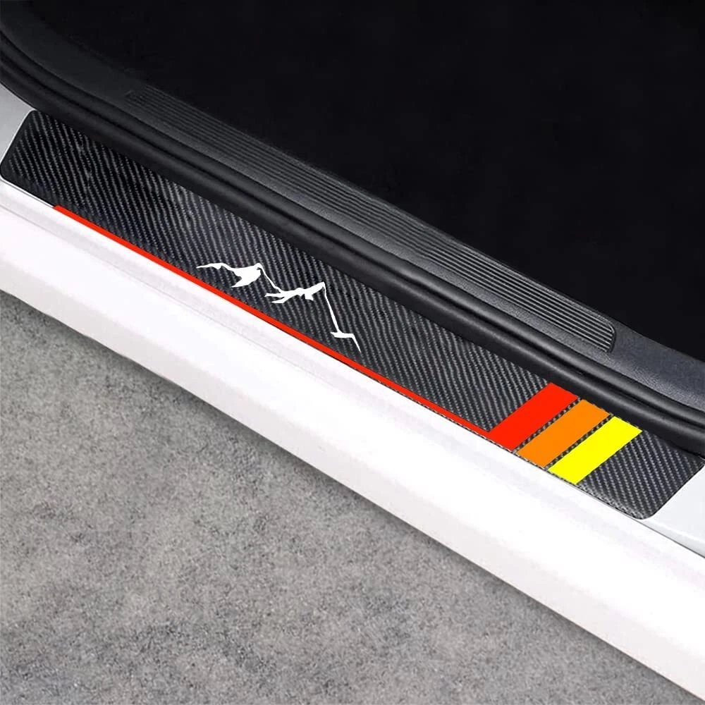 Feature Protective - Prevent scratches and scuffs, and waterproof, non-slip, anti-wear. Eye-catching look - 3D carbon fiber texture + logo image on it, provide the most dramatic effect, make your car look dazzling. Flexible design - you can also cut it to your customizable size to fit your cars. Easy to Install - just peel-n-stick. speical adhesive, no damage to your vehicle. Fitment Universal fit for most toyota vehicles, sush as Toyota Tacoma,Silverado,Camry,Sequoia,Tundra,4Runner, Rav4,Highlander etc. Specification Type: Car Door Threshold Sill Sticker Color: Carbon Fiber Size(approx.): L: 60cmx7cm=23.6"x2.7"; S: 40cmx7cm=15.7"x2.7" Material: 3D carbon fiber (NOT real carbon fiber ) Attachment Method: Self-adhesive Installation Method 1. Pls use alcohol or agent to clean the position of the installation (to make sure it without the grease.Wax or dust etc.) 2. Pls ensure the position of installation can be completely fit the case before install, (Note: if there any questions or misfit , please contact us) 3. Rive the strong double-sided adhesive of the back, if meet the case of a relatively low temperature, please heating it via the hair dryer or lighter 4. According to the comparison stick up it and press about 1-2 minutes (Note:do not wash your car in 24 hours , the adhesive should be fixed after 12 hours ) 5. The installation have been completed.(Easy to install) Package Included 4pcs Door Sill Protectors