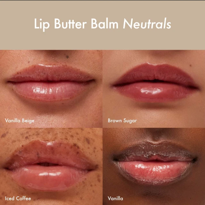 Buttery hydration in every swipe. This limited-edition holiday set features mini sizes of our award-winning Lip Butter Balm in four neutral shades. KEY INGREDIENTS -SHEA & MURUMURU SEED BUTTERS- Packed with ultra-hydrating seed butters, these natural moisturizers soothe, heal and condition parched lips. (Bye bye, dry.) -VEGAN WAXES- Our unique blend of vegan waxes will soften and boost shine all day with a smooth, never-greasy texture that feels heaven sent. The Mini Neutrals Lip Butter Balm Set Includes: • Mini Lip Butter Balm Vanilla (0.16 oz) • Mini Lip Butter Balm Vanilla Beige (0.16 oz) • Mini Lip Butter Balm Iced Coffee (0.16 oz) • Mini Lip Butter Balm Brown Sugar (0.16 oz)