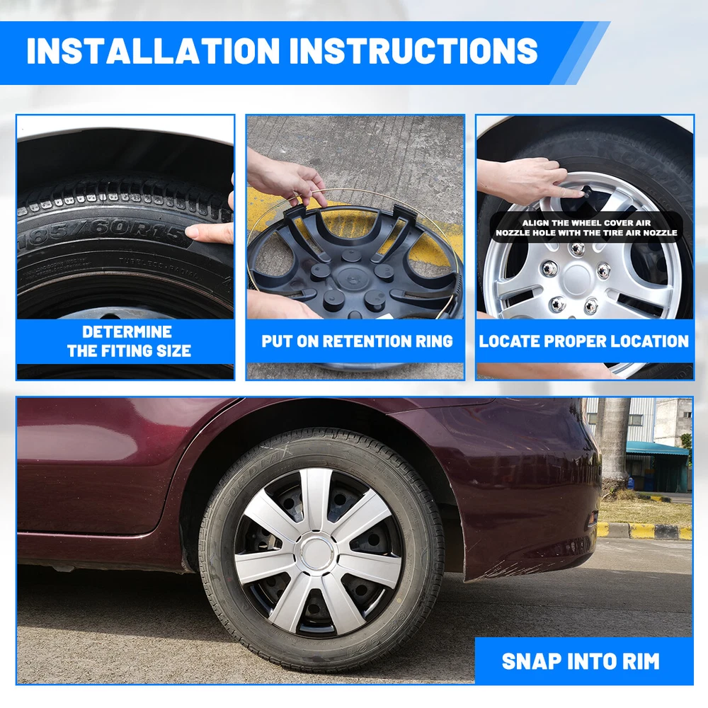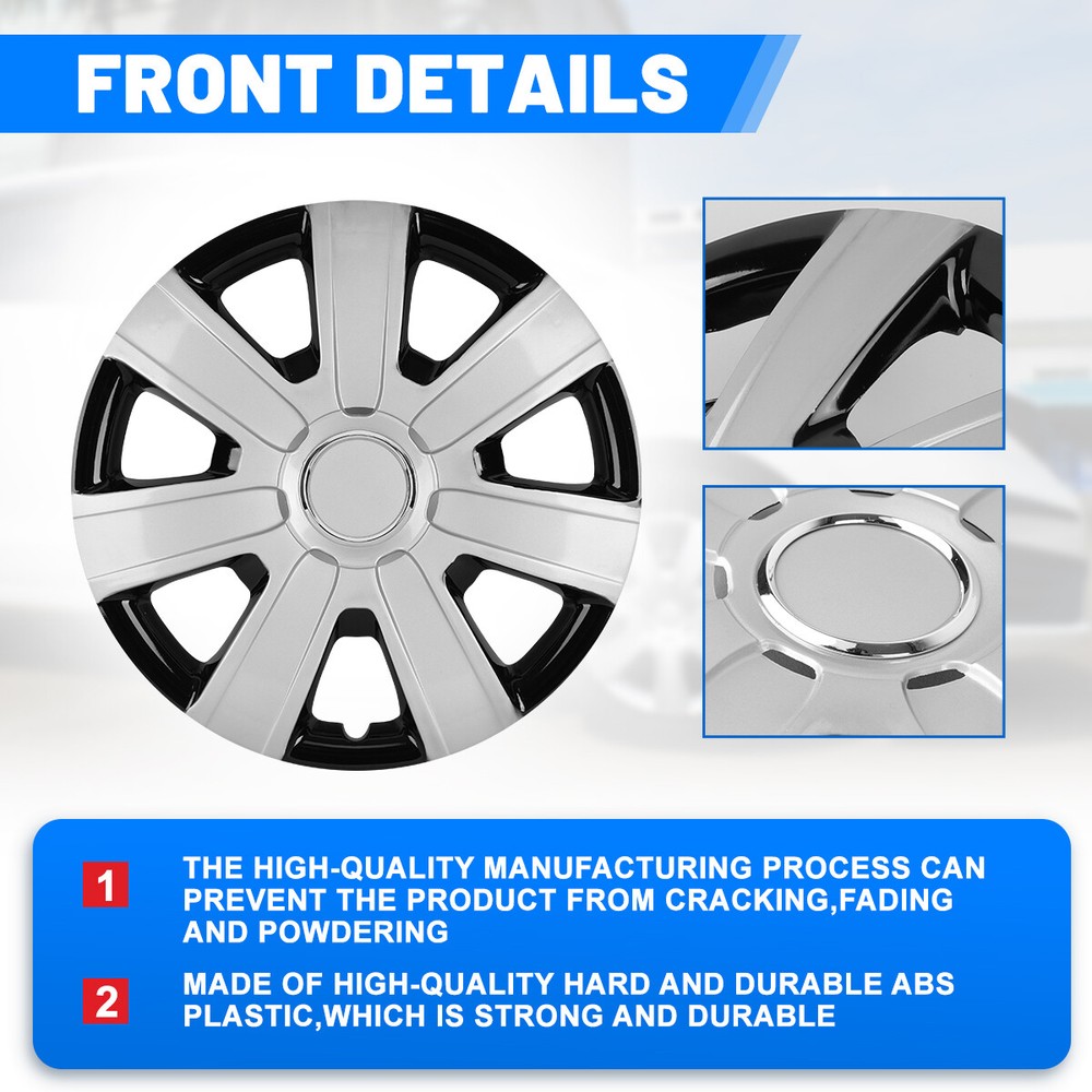 Head Lights Tail Lights Fog Lights Turn Signal Bumper Fender Flare Inner Fender Hubcaps Refrigerator Other Items for sale Head Lights Tail Lights Fog Lights Turn Signal Bumper Fender Flare Inner Fender Liners Portable Refrigerator 4PCS Sliver & Black Lacquer 15'' Hub Caps For Chevy Toyota Nissan Wheel Covers Features: Universal Fit - Design for 15" wheel hubs. Please know that and check your wheel before purchase to ensure fitment. Protect Your Wheels - Keep your vehicle looking sleek and new with these universal-fit hubcaps that offer reliable protection against scratches, dings, and other types of damage. Durable - Made from high-quality ABS materials, these hubcaps are built to withstand the rigors of daily use, keep your vehicle looking great for years. Stylish - Upgrade the look of your car or truck with these sleek hubcaps to enhance the appearance of your vehicle. Easy to Install - Designed to fit most standard wheel size, these hubcaps can be quickly and easily snap on your wheels without the need for special tools, making them a great choice for busy vehicle owners. Specification: Type: Wheel Hub Caps Color: Sliver & Black Lacquer Compatible Wheel Diameter: 15 inch / R15 Features:Car Wash Safe, Easy to Install, No Tools Required Material: ABS Number in Pack: 4 Wheel Type: Steel Placement on Vehicle: Front, Left, Rear, Right Package Includes: 4* Wheel Cover Hubcaps Payment Shipping Return About us Contact us Payment Appreciated for the prompt payment, Contact us if bid by mistake, system open unpaid item automatically. Payment must be complete within 3 days from the date you purchase or after the end of auction. Items unpaid within 3 days of the auction end will be forfeited. We reserve the right of cancel the order and re-selling the items. Shipping All shipment will ship by UPS or USPS . All items will be ship within 1 working days , and we will ship out all orders as soon as possible after payment verified, please allow up to 1-4 business days for delivery. CANADA & International customers please note: your government might charge a duty tax (brokerage fees). We do not responsible for any custom duty or import tax. Why Choose the US Stock? 1. Us Local Shipping, No Extra Customs Cost to the US. 2. Fast Delivery: 1-4 Working days Delivery. 3. Best After-Sales Service!!! Return The buyer is responsible for all return shipping including a result of customer error or defective item. 1) If you received an incorrect, damaged, defective, or item not as described, contact us for full refund or replacement on our cost. 2) If you want to return the item, please contact us within 60 days after package received. Return products must also be in its original condition: including box, packaging and all other accessories. About us We are the best auto parts, we have been pursuing excellence, continuous exploration as the slogan, let customer satisfaction is our purpose! We adhere to the United States local delivery, one year warranty! Welcome! Contact us How Should You Contact us? Please Read The Item Description And See if The item Fits Your Vehicle Exactly. If You Found Any questions, Feel Free to email us by "Ask a question" Our Office Hours Are Monday - Friday 8:00am - 5:00pm PST / 11:00am - 8:000pm ET, We Do Not Answer Any E-Mails On Weekend, And We Will Reply All E-Mails In The Order It Was Receive. All E-Mail Take Us Around 24 Hours To Respond To Any E-Mail. We Are Close During The Weekends And We Do Not Answer Any E-Mails During That Time. Brand AUTOWIKI Type Hub Cap Features Easy to Install, Lightweight, No Tools Required, Unique design Compatible Wheel Diameter 15 in Number in Pack 4 Placement on Vehicle Front, Left, Rear, Right OE/OEM Part Number Does not apply Color Sliver & Black Manufacturer Part Number Does not apply Material ABS Plastic Manufacturer Warranty 1 Year Country/Region of Manufacture United States Finish Lacquer Performance Part Yes Universal Fitment Yes Installation Type Snap-On Model 15 in Universal Hubcap