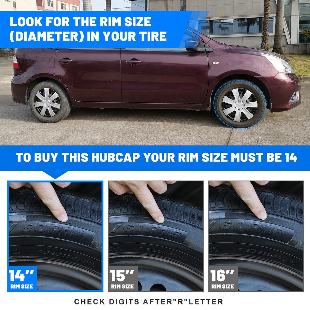 4PCS 14-Inch Snap-On Lacquer Hubcaps for Toyota Nissan Chevy R14 Wheels