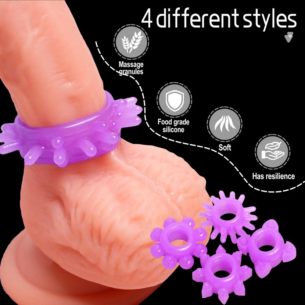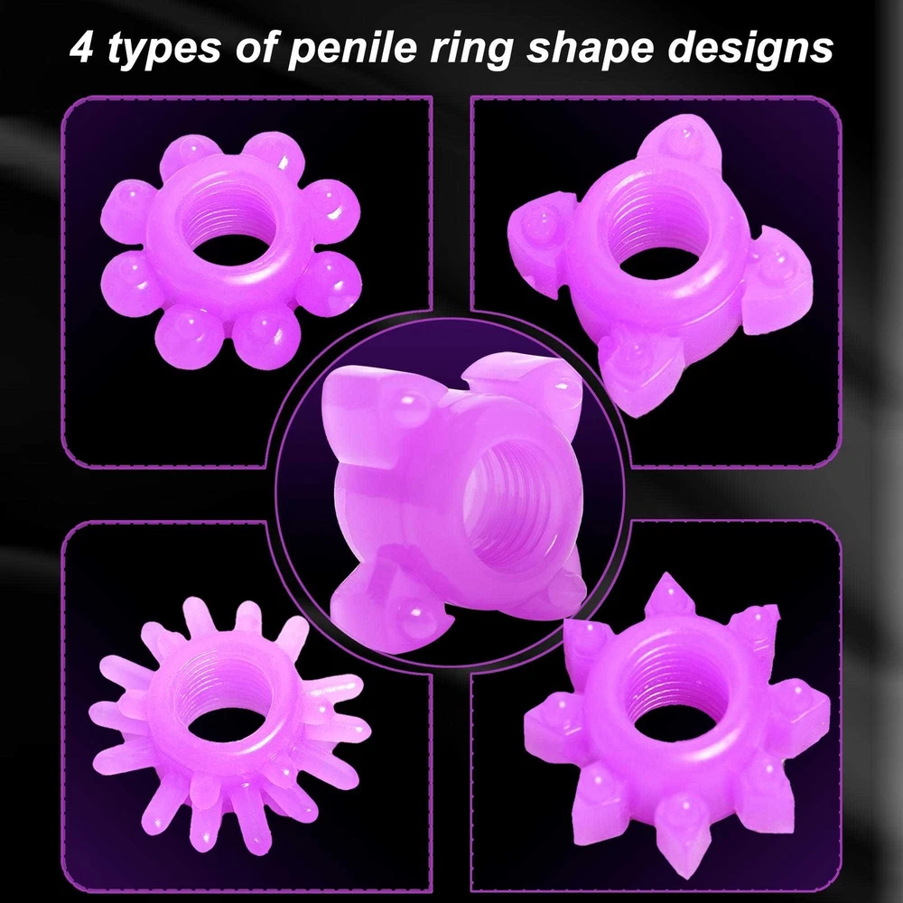 Private Shipping Specifications: It is made of premium material, which is non toxic and does no harm to your penis. You can drop lubricant before using this sex toy. Help delay ejaculation, make your sex time longer and satisfy your lover. Type: Penis Ring Material: TPE Features: Delay Ejaculation, Super Stretchy, Sex Toy 4 styles (as shown in the picture) Color:Purple/pink/blue Package Includes: 4 Penis Rings