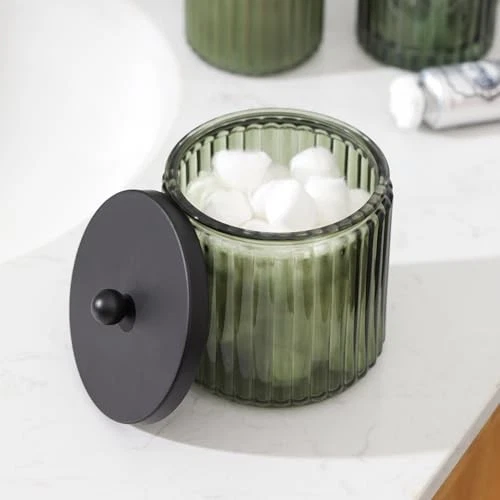 Just got this set and wow - it feels so luxurious! The glass has a beautiful weight to it and the olive green color with that pressed pattern is stunning. Everything arrived quickly and well-packaged. Makes my bathroom look like a fancy hotel!
