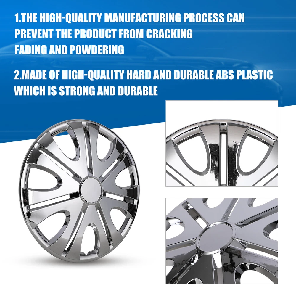 4PCS 16-Inch Universal Snap-On Hubcaps for Cars & Trucks in Silver Molded Design