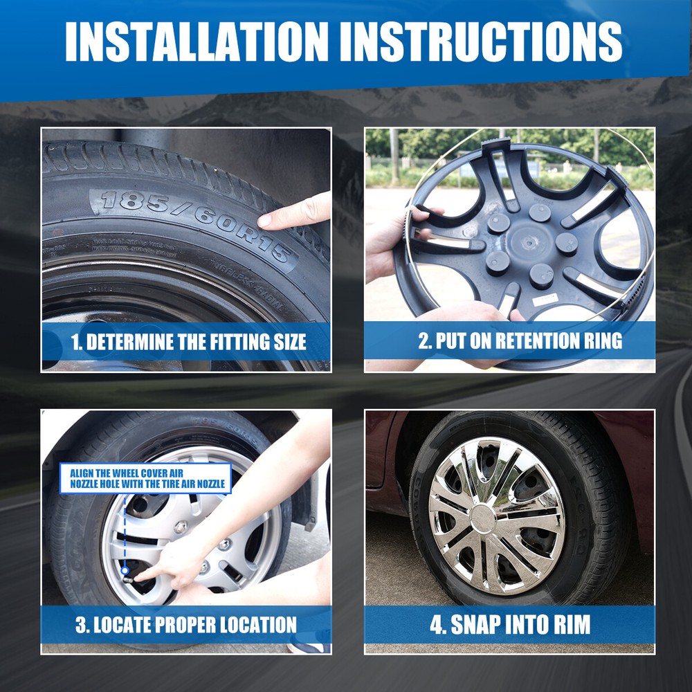 $ 22.74PCS Silver Black Lacquer Wheel Hub Caps for Chevy Toyota Nissan 14-15 Inch