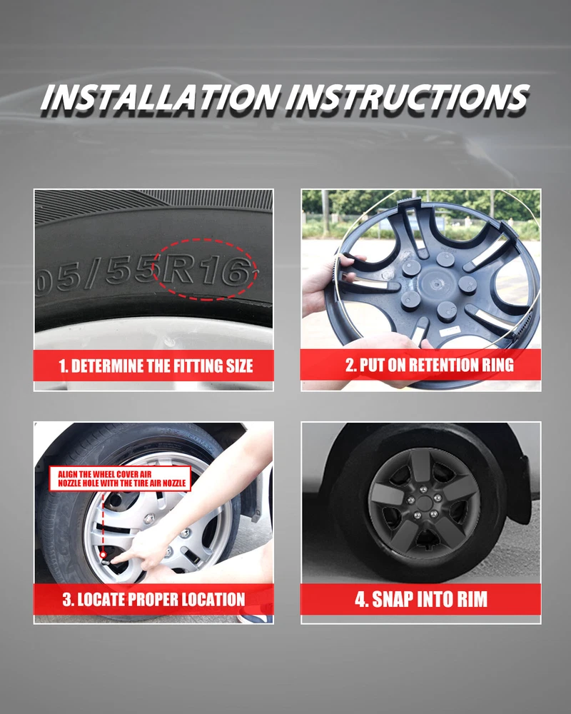 $ 28.514PCS 16" Universal Black & Red Hubcaps for R16 Tires Snap On Wheel Covers