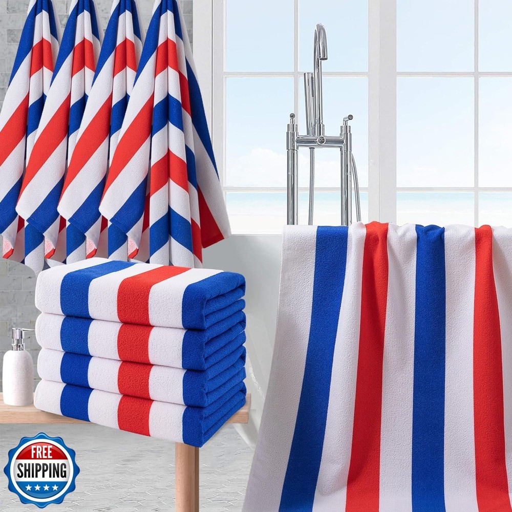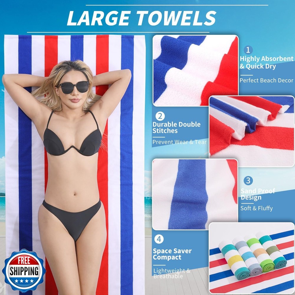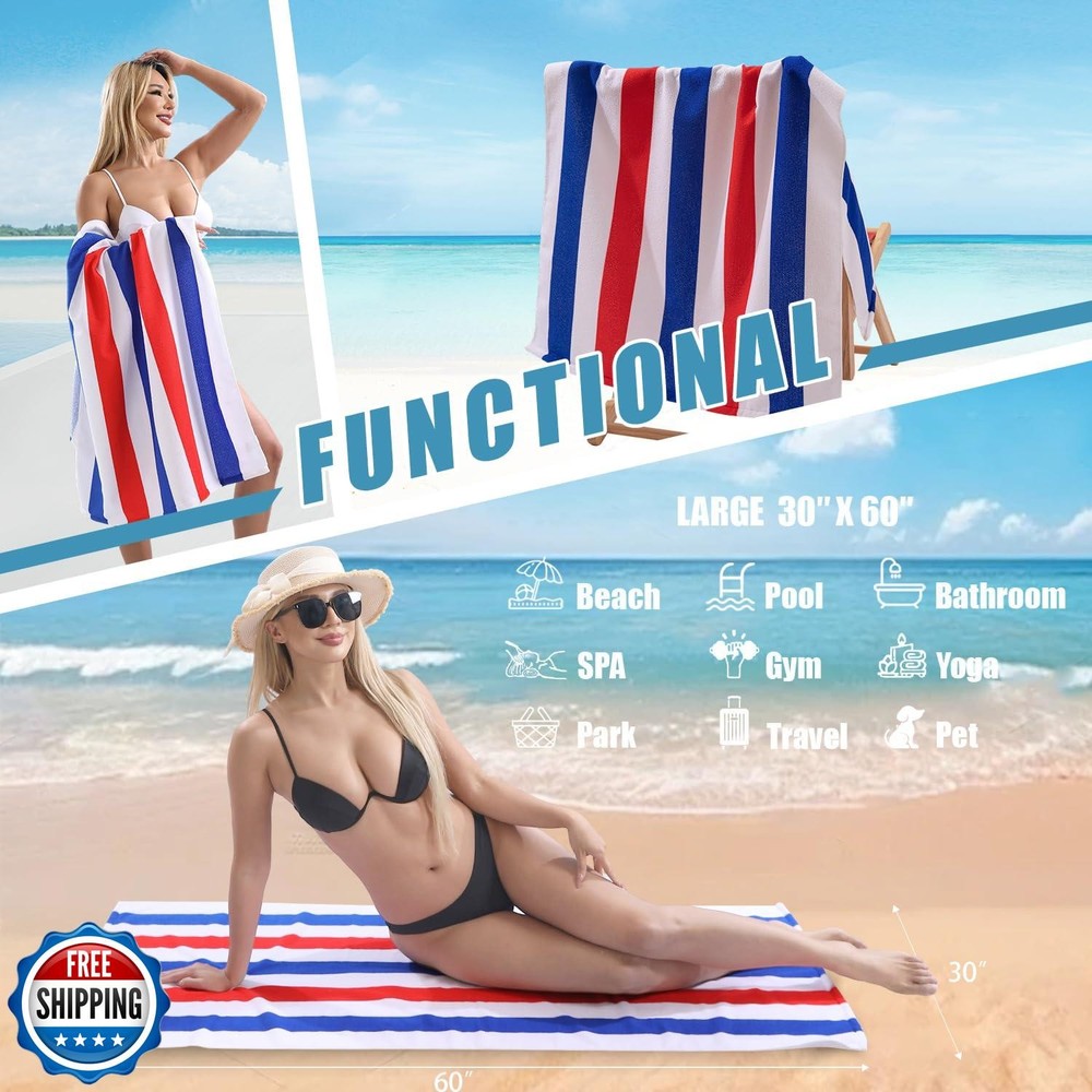 Beach Towel Set-4 Pack 30"x60" Sand Free Stripe Beach Towel for Pool,Bathroom,Soft Absorbent Quick Dry Lightweight Beach Bath Towel,Camping Blanket,Travel Towel,Beach Essentials for Adults,Red/Blue Features SOFT AND SKIN-FRIENDLY & LIGHTWEIGHT FAST DRY : Ultra skin-friendly breathable microfiber beach towel set Provides ultimate softness, comfort, absorbency, and durability. 450GSM highly absorbent stripe beach towel is thin lightweight and dries quickly about 50% faster than a standard cotton terry towel. It also dries fine on a hook or outdoors over a line. The premium quality of luxury pool towels provides long-lasting strength and can be used for a longer period of time. PREMIUM OVERSIZED BEACH TOWEL SET: 4 Pack extra large sand free beach towels 30x60 inches,These towels were crafted for beach vacations and pool towels,timeless striped design,cover your entire body perfectly and can be used as a blanket for couples and families when traveling together, lying on a beach towel chair and enjoying the seaside scenery-You won't have a problem with wiping away sand from your body.Perfect for beach, pool, spa, sauna, gym, yoga, travel, camping and picnic. MULTI-PURPOSE: Our Stripe beach towels are available in a range of colors that will making them ideal for the perfect beach trip.Super easy to pack and carry and doubles as travel blanket or shawl. not bulky and easy to travel with. Compact, lightweight and with little storage space, they take up about a quarter of the space of traditional plush towels. Versatile as a bath, beach, yoga, pool, spa, beach blanket,picnic blanket,hiking or extra long travel camping towels. DURABLE&LONG-LASTING:This beach towel will hold up and still be soft after washes. The colors are bright and doesn't fade. The beach towels are designed to last for many seasons,with a construction that's both durable and resistant to fraying, so you can enjoy using them for years to come. perfect for adults,womens,mens,kids-these are your pool day essentials! These fade-resistant towels offer unmatched comfort while still delivering in timeless style. CARE INSTRUCTIONS: Washable, reusable, and easy to care for; machine wash with like colors.Do not bleach.Tumble dry low. Always wash new towels before use as some lint may be generated. Care for your beach towels properly, and your oversized beach towels will look new and fresh even after multiples washes. Shipping Free & Fast Shipping: We offer free shipping to most of the USA with a normal delivery time of 3-7 days. However, due to the current situation, additional delivery time (up to 3 weeks) may be required for some items. Alternative Carriers: We may use alternative carriers (e.g., USPS, FedEx, UPS) to ensure your package arrives safely and on time. Due to the use of multiple carriers, we are unable to provide a tracking number automatically. Handling Time: Orders are processed and shipped within 1-2 business days of receiving cleared payment. Shipping Restrictions: Shipping to Alaska, Hawaii, Puerto Rico, Guam, and other US territories may incur shipping charges or delivery restrictions. Please contact us before ordering, or your order can be refunded/cancelled. State Restrictions: Certain items may not be shipped to California due to state regulations. Contact for Tracking Updates: If you require tracking updates or have any concerns about the delivery of your order, please feel free to contact us, and we will be happy to assist you. Return Policy 30-Day Hassle-Free Returns: If you are not completely satisfied with your purchase, you can return the item for free within 30 days of receiving it for a full refund or exchange. Easy Return Process: Contact us, and we will provide you with a prepaid return shipping label and detailed instructions. No Restocking Fee: There are no restocking fees for returns. However, the buyer is responsible for return shipping costs if the return is not due to a seller"s error. Refund Processing: Refunds will be processed within 1 business day of receiving the returned item in its original condition. Feedback Your feedback is extremely important to us. We strive to provide the best products and customer service possible. If you are satisfied with your purchase, please take a moment to leave us a positive review. If you have any concerns or issues with your order, please contact us before leaving negative feedback. We are committed to resolving any problems and ensuring your satisfaction. Contact Us If you have any questions or concerns, please feel free to reach out to our customer support team. You can contact us through the eBay messaging system. We are available Monday to Friday, 9:00 am to 5:00 pm EST, and we will do our best to respond to your inquiry within 24 hours. Thank you for supporting our small family business!