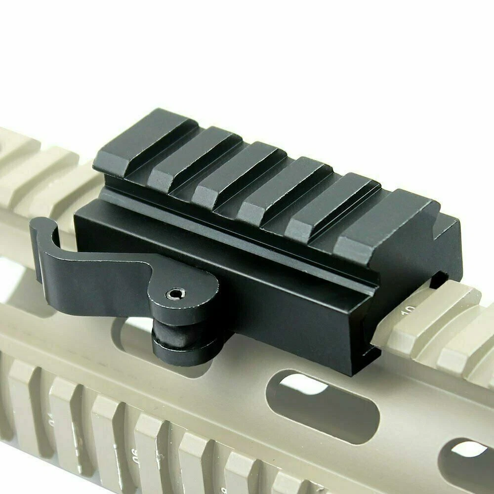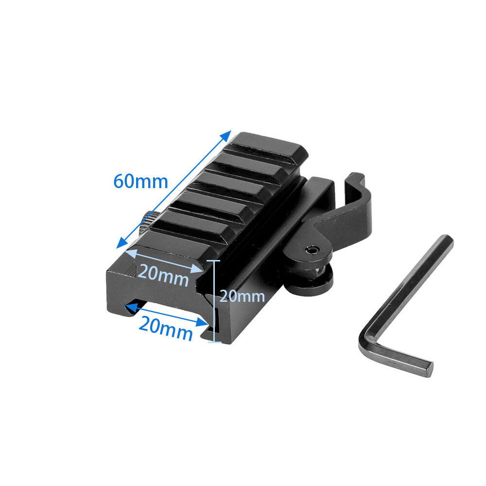 Low /High Profile Scope Mount Rings 11mm Dovetail Rail 1" 25.4mm Ring Mount US 8.99 USD Free shipping 2PCS 3 Slot Riser Mount with 25.4mm Scope Rings Low Profile Picatinny Rail Mount 20.99 USD Free shipping 1pair 1" inch Ring 11mm Dovetail Rail Scope Rings Low Profile Scope Mount US 8.99 USD Free shipping 4x32 Tactical Scope Red & Green & Blue Illuminated Reticle with Red Dot Laser 59.99 USD Free shipping 20mm Adapter Converter Barrel Scope Mount with Red Laser Beam Dot Sight Scope 16.99 USD Free shipping 45 Degree Offset Sight Rapid Transition/ Picatinny Rail Aluminum Section 3 Slot 9.99 USD Free shipping 4PCS 30mm Scope Rings 3/8" 11mm Dovetail Rail High Profile .22 caliber Ring 14.99 USD Free shipping 4PCS Scope Rings Low Profile Scope Mount 1" Ring for Weaver Picatinny Rail US 12.99 USD Free shipping Red Laser Beam Dot Sight Scope/Tri-rail 25.4/30mm Scope Ring Heavy Duty Mount 9.99 USD Free shipping 4PCS 1'' inch Low Profile Scope Rings for 20mm Picatinny Weaver Mount Heavy Duty 14.99 USD Free shipping Holographic Reflex Red Green Adjustable Dot Sight/3 Slots Picatinny Rail Sectio 27.99 USD Free shipping Tactical Red Laser Dot Sight Scope /5-Slot Quick Release Detach QD Riser Mount 8.99 USD Free shipping High Profile 30mm/25.4mm Rings Quick Release Mount with 3 Slot Low Profile Mount 15.99 USD Free shipping Tactial 25.4mm/30mm Scope Ring Barrel Mount with 3 Slot High Profile Riser Mount 14.99 USD Free shipping 4pcs Low Profile 25.4mm Scope Rings 20mm Picatinny Weaver Rail Mount Hunting 13.99 USD Free shipping Quick Release 3Slot/Slim 3 Slot Riser Mount Fit 20mm Picatinny Rail for Red Dot 8.99 USD Free shipping Extend 11mm to 20mm Picatinny Rail Mount with High Profile 25.4/30mm Ring Mount 16.99 USD Free shipping 2Pairs 25.4mm Scope Rings Low Profile Scope Mount for 20mm Picatinny Weaver 16.99 USD Free shipping Quick Release 1/2 Inch Rail Riser Features Raise flat rail line or sight by 1/2 inch 2 1/2 inches (5 Picatinny rail slots) in length with a Picatinny standard rail mount Will accommodate Picatinny or Weaver standard red dots, scopes, and other optics Locks securely in place with quick release lock Easy to install and detach, no tools needed Fit standard 20mm Picatinny rails Durable all metal construction Lightweight, made of aluminum with black anodized matte finish Adjustable locking tension Specifications Dimensions: 1"(height) x 2.5"(length) x 30mm(width) Weight: 81g (2.9oz) Material: Aluminum, Steel Finish: Black Matte Interface: 20mm Picatinny/Weaver Rails Items Included 4pcs 5 Slot rail riser/mount