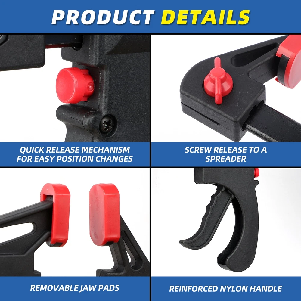 Premium eBay Listing Luxe Treasures Exceptional Quality, Exceptional Service Bar Clamps for Woodworking, One-Handed Clamp/Spreader, 6-Inch Wood Clamps Set, Light-Duty Quick-Change F Clamp with 130 lbs Load Limit, 4-Pack Product Showcase About This Item Why Choose This Product? Our items are carefully selected for their exceptional quality, design, and value. Each product undergoes rigorous quality checks before shipping to ensure your complete satisfaction. Outstanding Features POWERFUL CLAMPING FORCE: With up to 130 lbs of squeezing force and a metal ratcheting mechanism, bar clamp offers a decent choice for woodworking or other household repairs. Its lightweight, yet sturdy, and is capable of holding pressure for extended periods. SOLID CONSTRUCTION: Reinforced nylon body and high-quality hardened steel bars provide great impact resistance, which is totally able to withstand the heavy use expected on construction sites. BETTER USE EXPERIENCE: Non-marring removable and replaceable pads feature flexible material and non-slip texture, which enhances the overall clamping force. Somewhat surprising, the quick-release latch makes it so easy to take them off your project or adjusts the fix in seconds. CLAMP & SPREADER: The screw-release button design allows the f clamp to be a spreader. Just release the button by a screw and then reverse it before fastening it, you will get the spreader you need. BAR CLAMPS SET: The set contains 4 pieces of 6" bar clamps. The 6" clamp can be set to a spreader with sizes up to 12". A great, defined, rail construction makes sure the clamps do not slip and tighten very effectively when really putting the pressure on. A Special Thank You We genuinely appreciate your business and trust in our products. Every purchase supports our commitment to bringing you exceptional items at fair prices. 100% Satisfaction Guaranteed Customer Support Have questions? Our dedicated support team is here to help! Message us through eBay's messaging system anytime. We pride ourselves on rapid responses — typically within 12 hours or less. Secure Payment Your transaction is protected through eBay's secure payment system. We accept: All transactions are securely processed through eBay's trusted payment system for your complete peace of mind. Premium Shipping We only ship to the address provided at checkout. Please verify your address before completing your purchase Orders are processed within 1-2 business day (excluding weekends and holidays) Delivery usually takes 3-5 business days We use trusted shipping services such as UPS, FedEx, and USPS Shipping is available only within the contiguous United States. We do not ship to Alaska, Hawaii, Puerto Rico, or PO Boxes If there are any shipping delays, please contact us for support Safe & Reliable Shipping Buyer Protection Hassle-Free 30-Day Returns If you're not completely satisfied, contact us within 30 days of delivery We'll provide a prepaid return label for your convenience Simply package the unused item securely and ship it back Once received, we'll process your full refund within 2 business days Quality Guaranteed Secure Shopping Thank you for visiting Luxe Treasures on eBay | Dedicated to Excellence