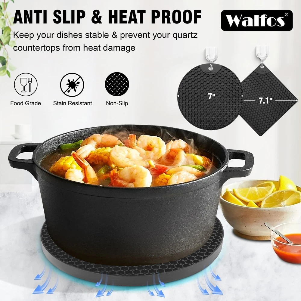 Versatile Silicone Trivet Mats: 4 Black Non-Slip Hot Pads for Every Kitchen ‹ › ‹ › ‹ › ‹ › ‹ › ‹ › ‹ › ‹ › ‹ › ‹ › Versatile Silicone Trivet Mats Set of 4 Black Non-Slip Hot Pads for Every Kitchen Key Features: Non-Slip and High Heat Resistant: These trivets for hot dishes withstand temperatures from -104℉ to 446℉, safeguarding your countertops and tables from hot pots and pans. High-Quality Silicone and Food Safety: Crafted from food-grade silicone, BPA-free and long-lasting, these trivets resist rust, cracking, and chipping, making them a light and flexible alternative to metal options. Multi-Function: These hot pot holders serve various purposes as silicone mats, drying mats, jar openers, spoon holders, garlic peelers, and coasters. (Sizes: Square Trivets: 7.1" x 7.1", Round Trivets: 7" x 7", Thickness: 0.24") Easy to Dry and Clean: Designed to capture water vapor and condensate, simply squeeze out or shake to dry. Dishwasher safe or hand-wash for easy maintenance. Easy to Use and Store: Lightweight and convenient, they can be stored easily on your table or hung on hooks, ensuring a clean and tidy home at all times. Benefits: Protects surfaces from heat damage, keeping your dining area safe and stylish. Multi-functional design that provides versatility in any kitchen setting. Lightweight and portable, making it easy to use for any cooking task or event. Effortless cleaning process adds to your kitchen efficiency. Why Choose Our Silicone Trivet Mats? Invest in the essence of culinary convenience with our Silicone Trivet Mats, meticulously designed to elevate your kitchen experience. As a part of your kitchen arsenal, these hot pads not only protect your surfaces but also adapt to a myriad of tasks, showcasing flexibility and durability. Crafted with silicone, they exemplify safety with a non-slip design ensuring your pots and pans stay secure. Join the ranks of countless satisfied customers who have transformed their kitchen dynamics. Experience the perfect blend of function and aesthetics today! Order your set of Versatile Silicone Trivet Mats and redefine culinary elegance in your kitchen! Shipping Free & Fast Shipping - We offer free shipping to most of the USA with a normal delivery time of 3-7 days. However, due to the current situation, additional delivery time (up to 3 weeks) may be required for some items. Alternative Carriers - We may use alternative carriers (e.g. USPS, FedEx, UPS, etc.) to ensure your package arrives safely and on time. Due to the use of multiple carriers, we are unable to provide a tracking number automatically. Handling Time - Orders are processed and shipped within 1-2 business days of receiving cleared payment. Shipping Restrictions - Shipping to Alaska, Hawaii, Puerto Rico, Guam, and other US territories may incur shipping charges or delivery restrictions. Please contact us before ordering, or your order can be refunded/cancelled. State Restrictions - There may be restrictions based on your state of purchase. For example, certain items may not be shipped to California due to state regulations. Contact for Tracking Updates - If you require tracking updates or have any concerns about the delivery of your order, please feel free to contact us, and we will be happy to assist you. Return 30-Day Hassle-Free Returns - We want you to be completely satisfied with your purchase. If you are not, you can return the item within 30 days of receiving it for a full refund or exchange. Easy Return Process - To start a return, simply contact us and we will provide you with a prepaid return shipping label and detailed instructions. Restocking Fee - There are no restocking fees for returns. However, the buyer is responsible for return shipping costs if the return is not due to a seller's error. Refund Processing Time - Refunds will be processed within 5 business days of receiving the returned item in its condition. Payment We accept all major credit cards, PayPal, and Apple Pay for your convenience. Your payment information is secure and encrypted to ensure a safe and seamless transaction. Please complete your payment within 3 days of purchase to avoid any delays in shipping. Feedback Your feedback is extremely important to us. We strive to provide the best products and customer service possible. If you are satisfied with your purchase, please take a moment to leave us a positive review. If you have any concerns or issues with your order, please contact us before leaving negative feedback. We are committed to resolving any problems and ensuring your satisfaction. Contact Us If you have any questions or concerns, please feel free to out to our customer support team. You can contact us through the eBay messaging system. We are available Monday to Friday, 9:00 am to 5:00 pm EST, and we will do our best to respond to your inquiry within 24 hours. Buy it now and enjoy a pleasant shopping experience! Unit Quantity: 4 Material: Silicone,BPA Free Department: Adults,Unisex Theme: Silicone Trivet Mats Occasion: Multipurpose,Home,Kitchen Set Includes: Pot Holders Features: Dishwasher Safe,Heat Resistant,Non-Slip,Flexible,Long-Lasting,Lightweight Color: Black Type: Pot Holders Number of Items in Set: 4 Style: Modern Size: M Care Instructions: Dishwasher Safe