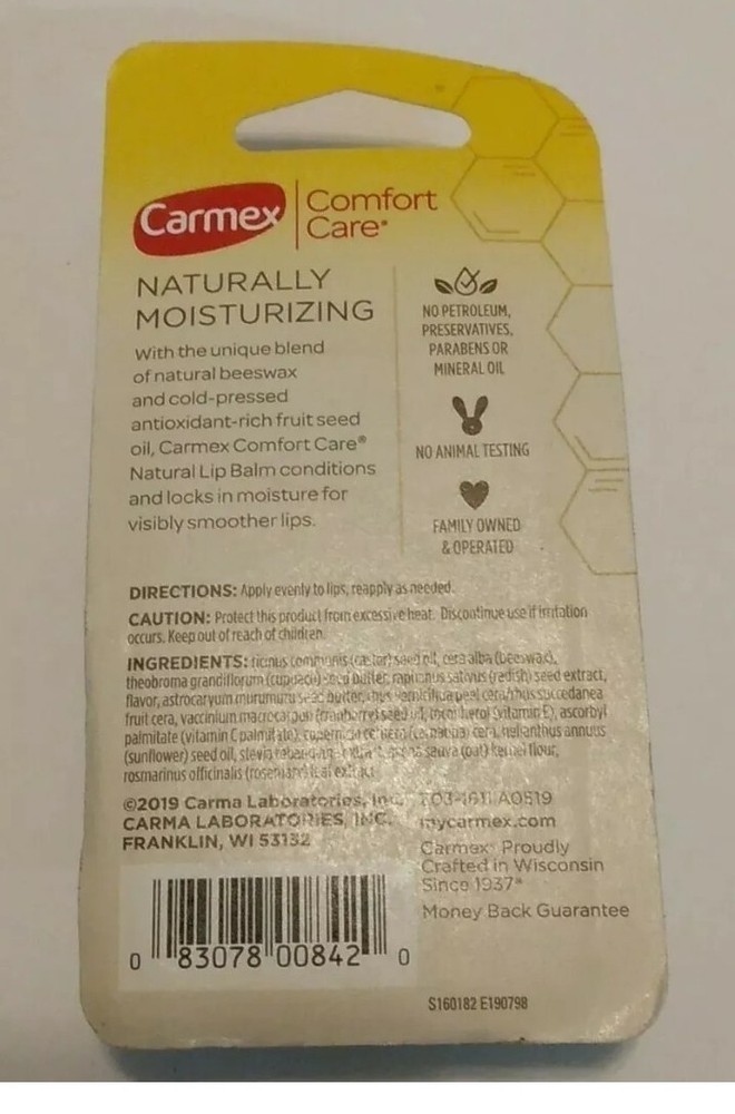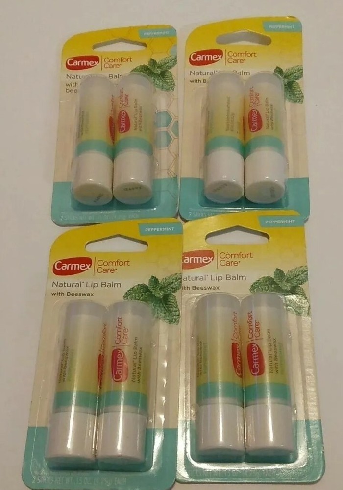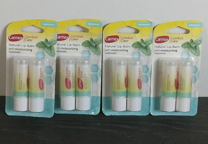 4 Packs Carmex Comfort Care Lip Balm Beeswax Peppermint 0.15 Oz. Each.