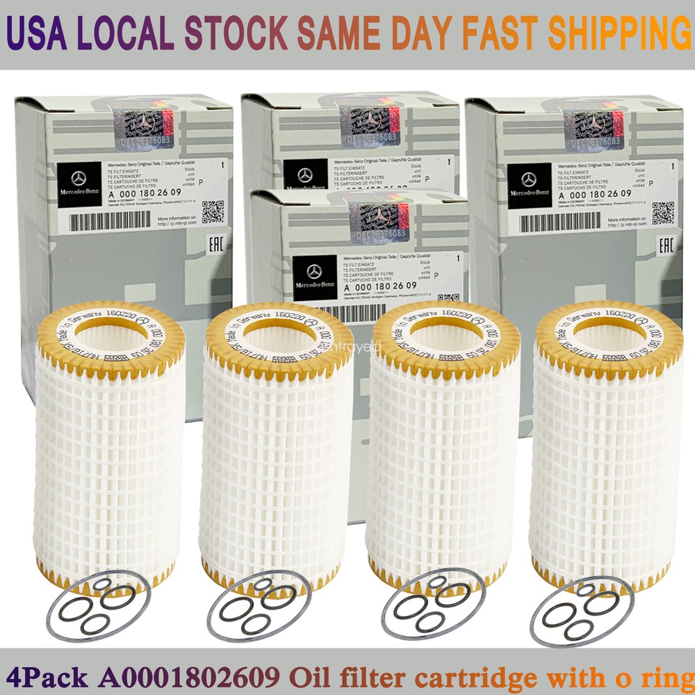 USPS SAME DAY FAST SHIPPING FROM US STOCK Description: Size: 2.48in / 63mm(W)x4.44in / 115mm(H) OEM Number: A 0001802609 Package include: 4 X Oi l filter cartridge with o ring The Oil Filter Should be Changed Under The Following Situations: 1.Over half a year 2.When change the oil 3.Over 5000 kilometers If you are not sure that this is the right item for your car please provide VIN number and we will check for you.