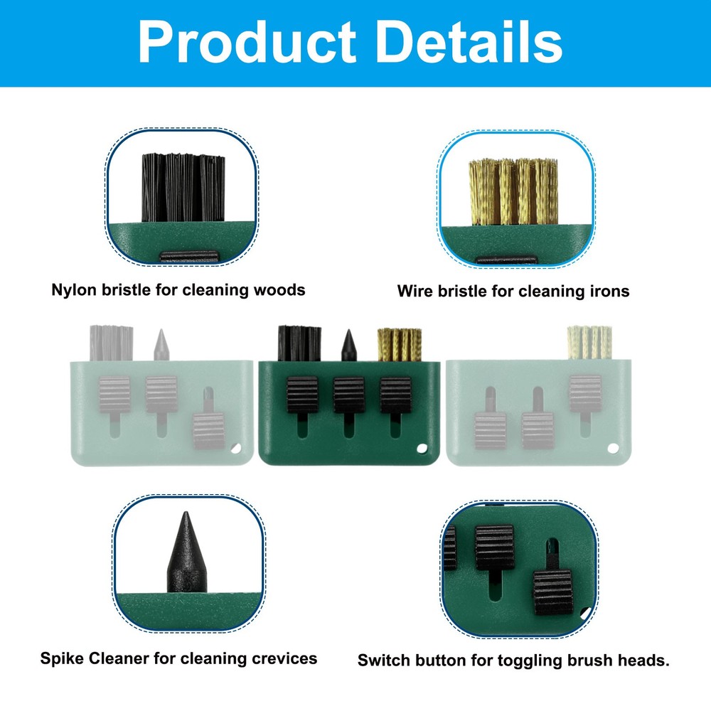 4-Pack Golf Club Brush with 3-in-1 Groove Cleaner in Green