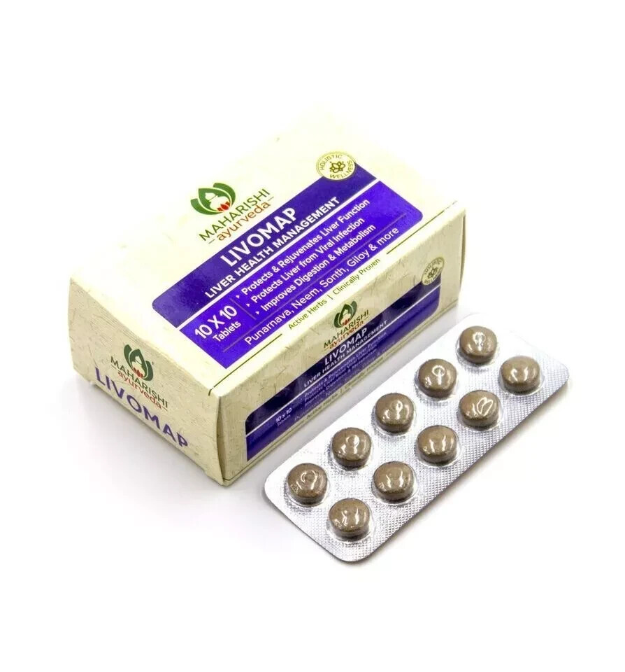 Maharishi Ayurveda Livomap Tablet is a judicious combination of highly effective hepatoprotective herbs that might protect the liver against infection and inflammation. It is clinically tested at AIIMS in providing effective results while managing fatty liver. Key Ingredients: Giloy Punarnava Neem Sonth Key Benefits: Maharishi Ayurveda Livomap is a natural formula made from time-tested herbs and ingredients that has no side effects and is safe for all Livomap is a herbal supplement that might improve gut health It may help in the removal of toxins and stimulating appetite and metabolism Directions For Use: Take 2 tablets twice a day before meals or as advised by the physician.