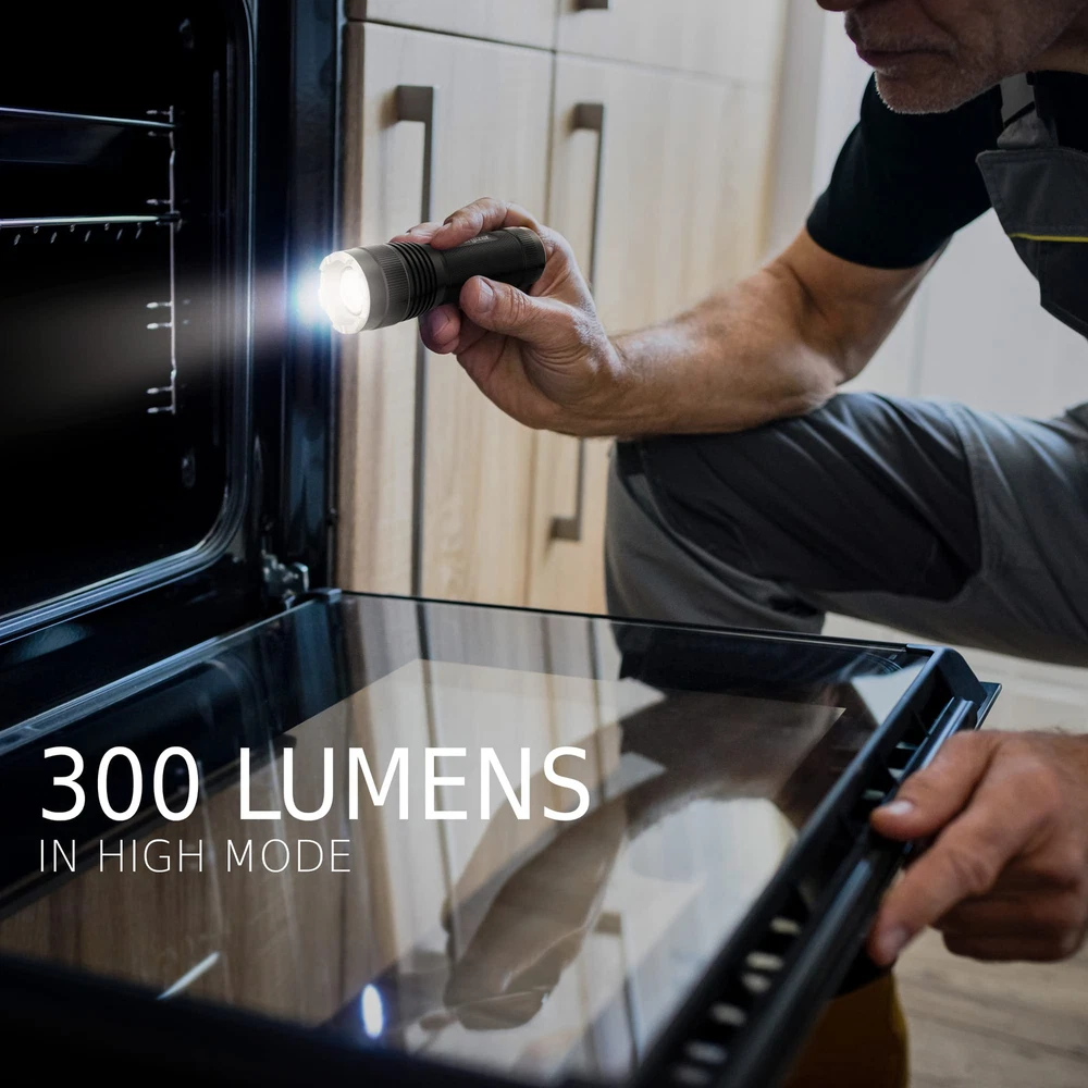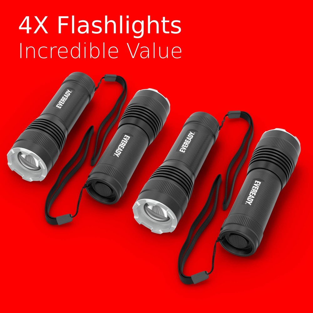 LED Handheld Tactical Light offers a versatile, compact LED flashlight perfect for everyday use. Power up this durable metal flashlight to shed more light on DIY projects or as a bright light in power outages for trusted, reliable use. Equipped with 3 lumens of light on high mode, this LED light illuminates objects up to 18 meters away, giving you all the light you need. A flashlight lanyard makes it easy to keep this tactical flashlight handy. Featuring LED technology, this flashlight is up to 4X brighter than standard LED technology and has a push button tail switch for easy operation. Pull the lens out to switch from a spot beam to a wide beam with the simple manual focusing option. This lightweight, compact flashlight is IPX4 water resistant, making it useful even in wet conditions. for life. Four (4) Tactical Lights, operate on three (3) AAA batteries (not included) Handheld flashlight is up to 4x brighter than standard LED technology with manual focusing that lets you switch from a spot beam to a wide beam by pulling out the lens Light, compact lanyard flashlight is easy to handle for everyday tasks like DIY projects, and has an easy to operate push button tail switch LED flashlight delivers 300 lumens of light on high and illuminates up to 180 meters away for bright light even in large areas IPX4 water resistant flashlight works after splashing water on all sides and sustains impact up to 1 meter for a rugged tactical light that's reliable in a range of conditions Small metal flashlight is easy to handle and comes with a flashlight lanyard to help you keep a grip on it Trust in for dependable lights that perform reliably in everyday situations