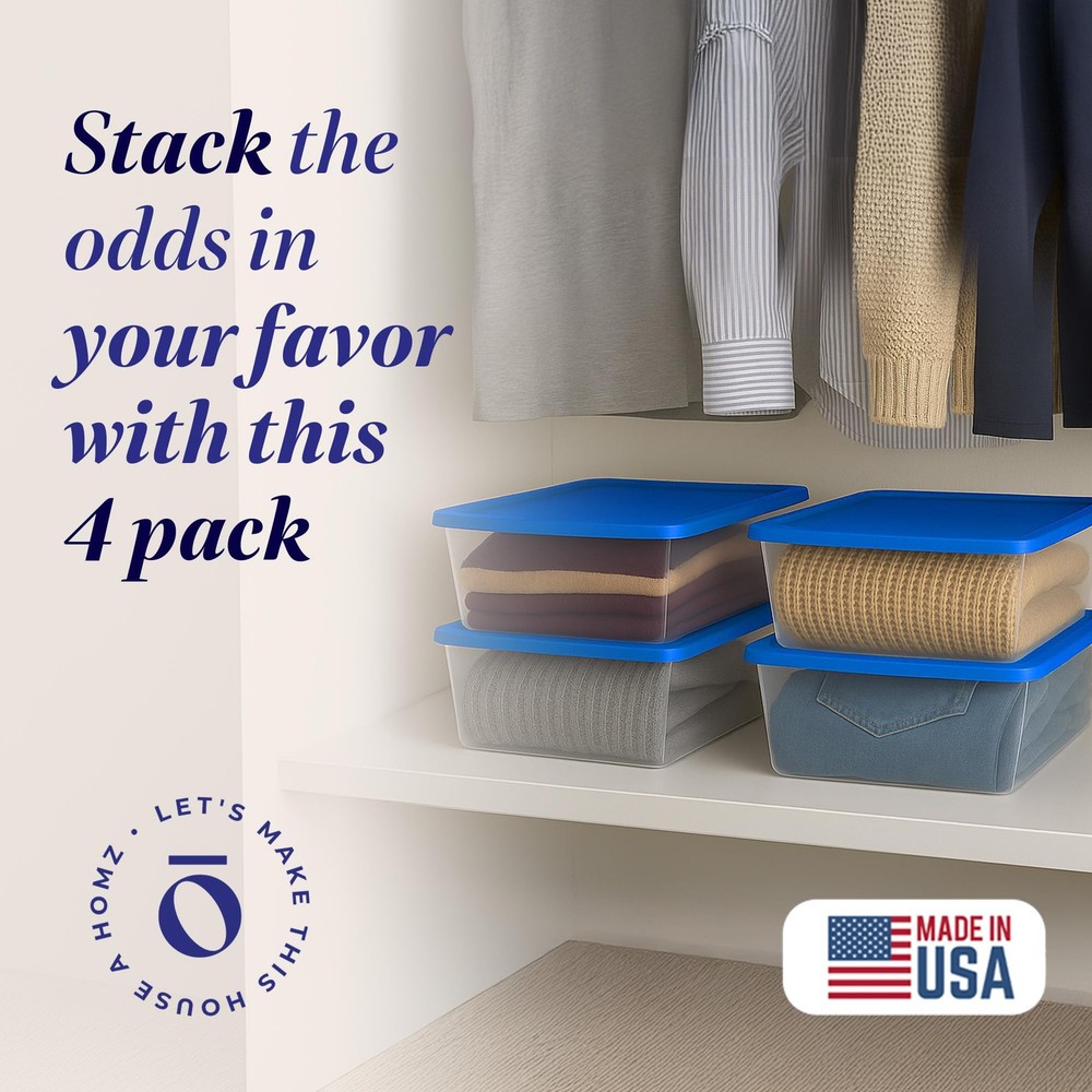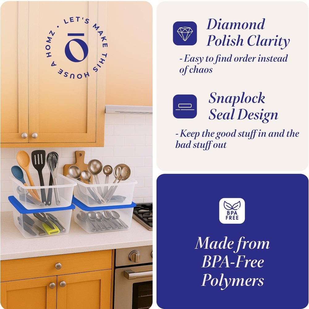 4-Pack Snaplock, Small Clear Plastic Storage Bins with Lids, 12 Quart, Blue