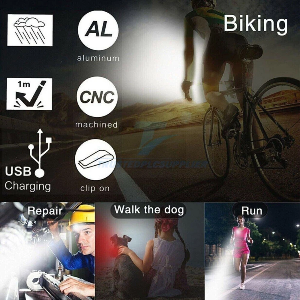 Item Height: 5.3 cm Model: Mountain Flashlight Item Weight: 111 Grams Material: Aluminium, Silicone Colour: White / Red Type: Head & Tail Light Set Brand: trustedplcsupplier Vintage: No Bulb Type: LED Item Width: 8.2 cm Features: USB Item Length: 9.6 cm