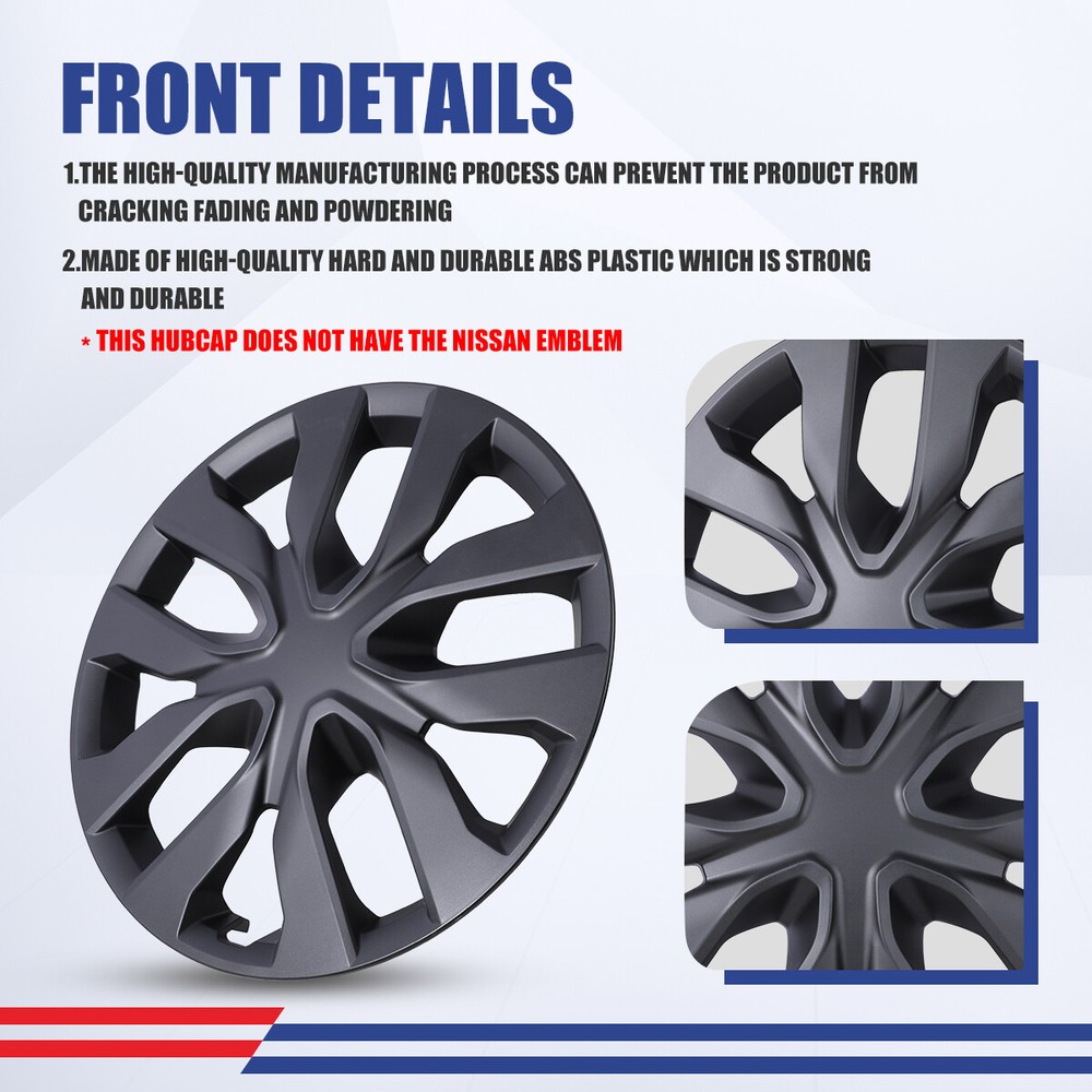 4Pcs/Set 17'' Wheel Rim Cover Hubcaps Trim Caps for 2014-2020 NISSAN ROGUE Black Specification: π Fitment: Standard 17" Black steel wheel Covers. Compatible with 2014-2020 NISSAN ROGUE. These only compatible with Rav4 17" steel wheels. Please check your tire/wheel size before purchasing. π Feature: High Quality Come With Black. Painted Black for a beautiful finish. Hubcaps snap on just like the previous NISSAN ROGUE hubcaps do, providing a tight and very secure fit. π Heavy Duty: The high-quality manufacturing process can prevent the product from cracking, fading and powdering. Made of high-quality hard and durable ABS plastic, which is strong and durable. To the maximum extent, ensure strength and durability for long lasting usage. π Package: Hardware & instructions are NOT included. JUST Set of 4 Wheel Covers 17" (Black Hub Caps Full Rim), as the picture shown. π Installation Tips: Professional installation is highly recommended. You might need a hubcap installation tool. When installed, your existing chrome lug nuts will show through, just like the factory wheel covers. Fitment: Just Fit fot 2014-2020 NISSAN ROGUE Specification: Quantity: 4 PCS Material: ABS Color: Black Wheel Size: 17 inch Placement on VehicleοΌFront/Left/Rear/Right Package including: 4Γ Wheel Hubcap Cover Payment Delivery details Terms of sales About us Contact us Payment π We accept PayPal (Recommended), credit card, VISA, Google Pay & Discover etc. π Please submit your payment within 7 days after your purchase. π If not, eBay will automatically open an Unpaid Item Dispute on our behalf if the item(s) are not paid within 7 days. Delivery details π Please double check your delivery address and contact information. π All items will be shipped within 1 business days after payment received. π Tracking numbers will be easily accessible ASAP they are created and processed. Terms of sales π Free 30 days Return, we will cover the return post fee. π If a defective product was received, please do not hesitate to message us via eBay message. π We will response in 24 hours in business to resolve the problem π We stand behind our products. Items can be returned for exchange or full refund within 30 days from the date you receive. About us π Wolfstorm has a huge warehouse and office located in the United States. π All US domestic 48 states customers are able to benefit from the FREE SHIPPING services. π Our experienced, professional customer service representatives offers prompt and courteous service. π Best quality products, outstanding services and professional experience keep our customers. Contact us π Please feel free to contact us if you have any problems. π Emails will be replied within 24 hours in working days. π After hours emails will be replied on the next business day. On Jan 8, 2025 at 04:28:53 PST, seller added the following information: