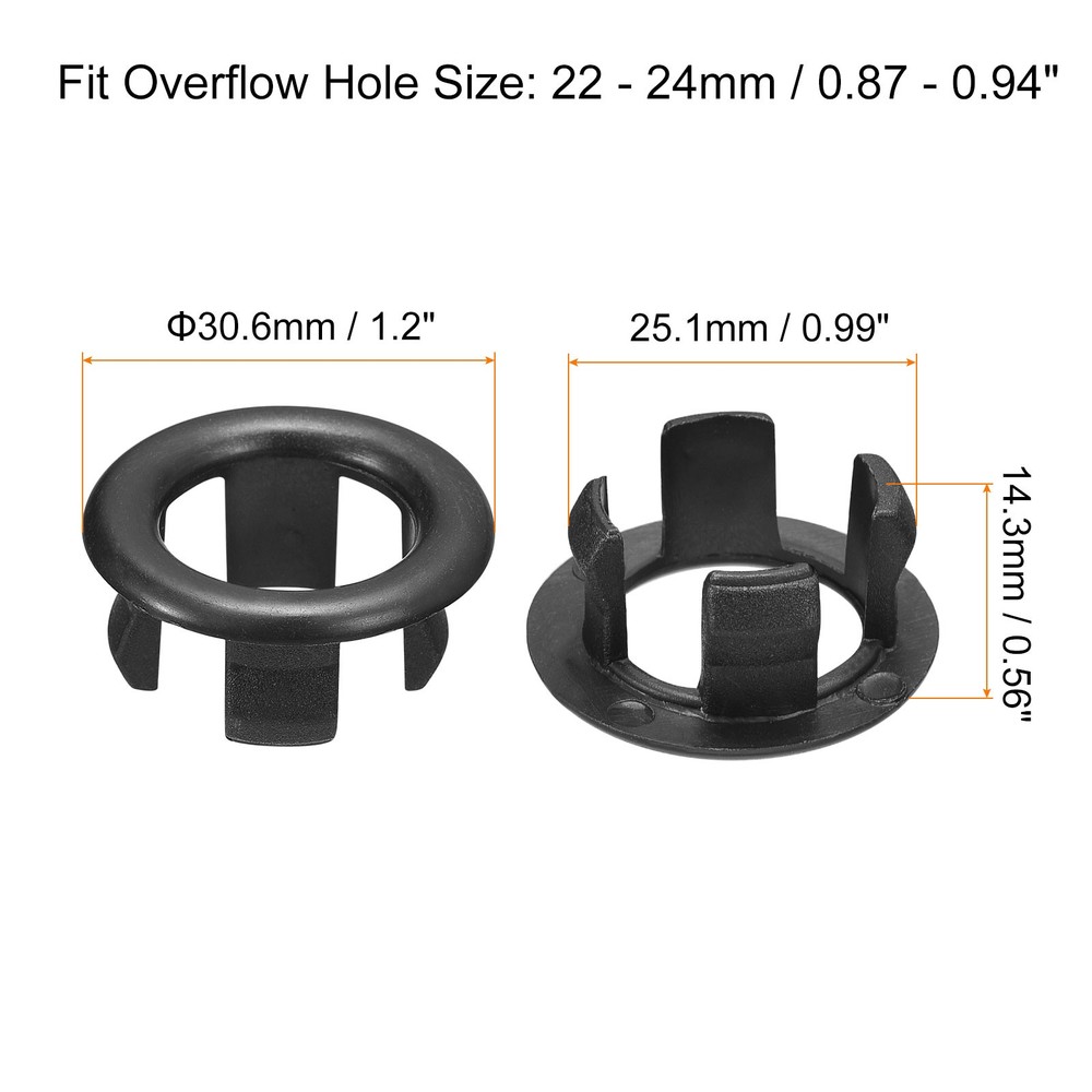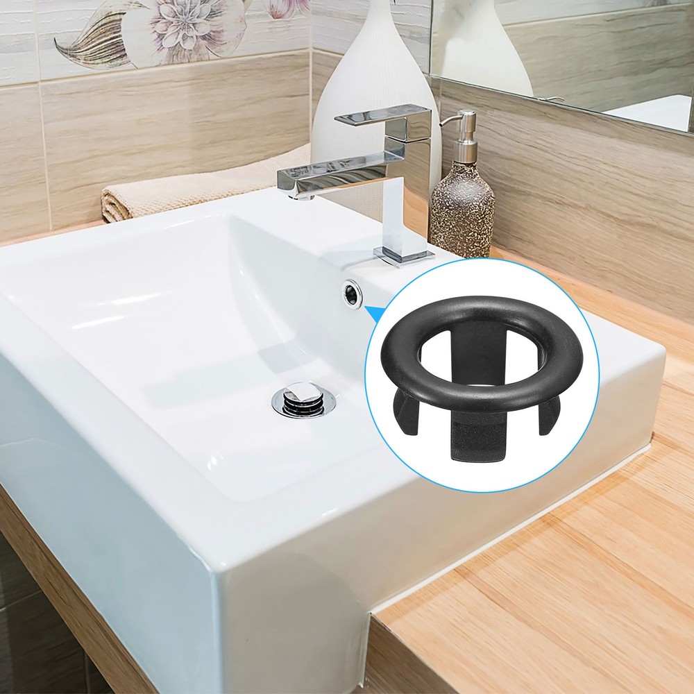 4Pcs 25.1mm Sink Trim Overflow Cover Ring Hole Insert in Round Caps Black