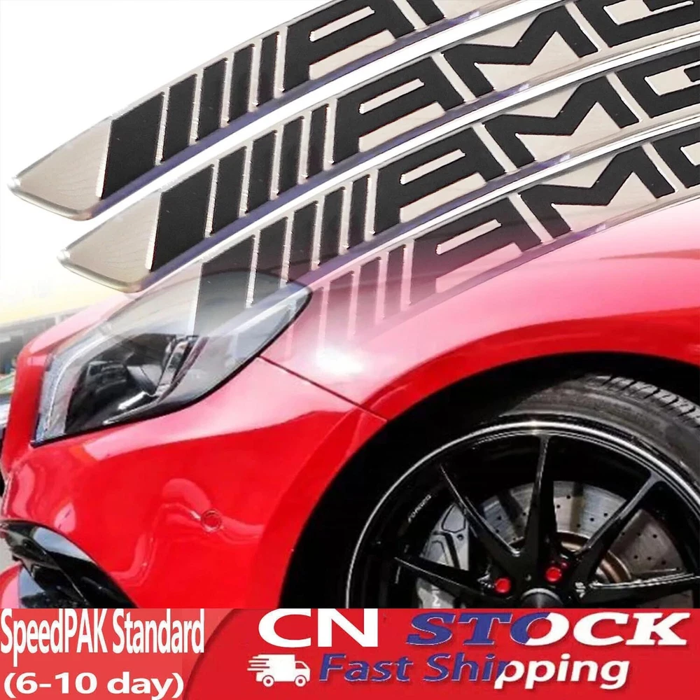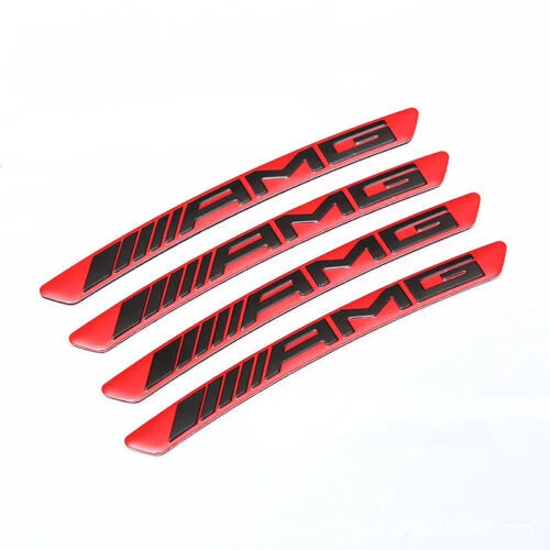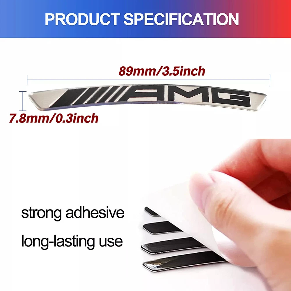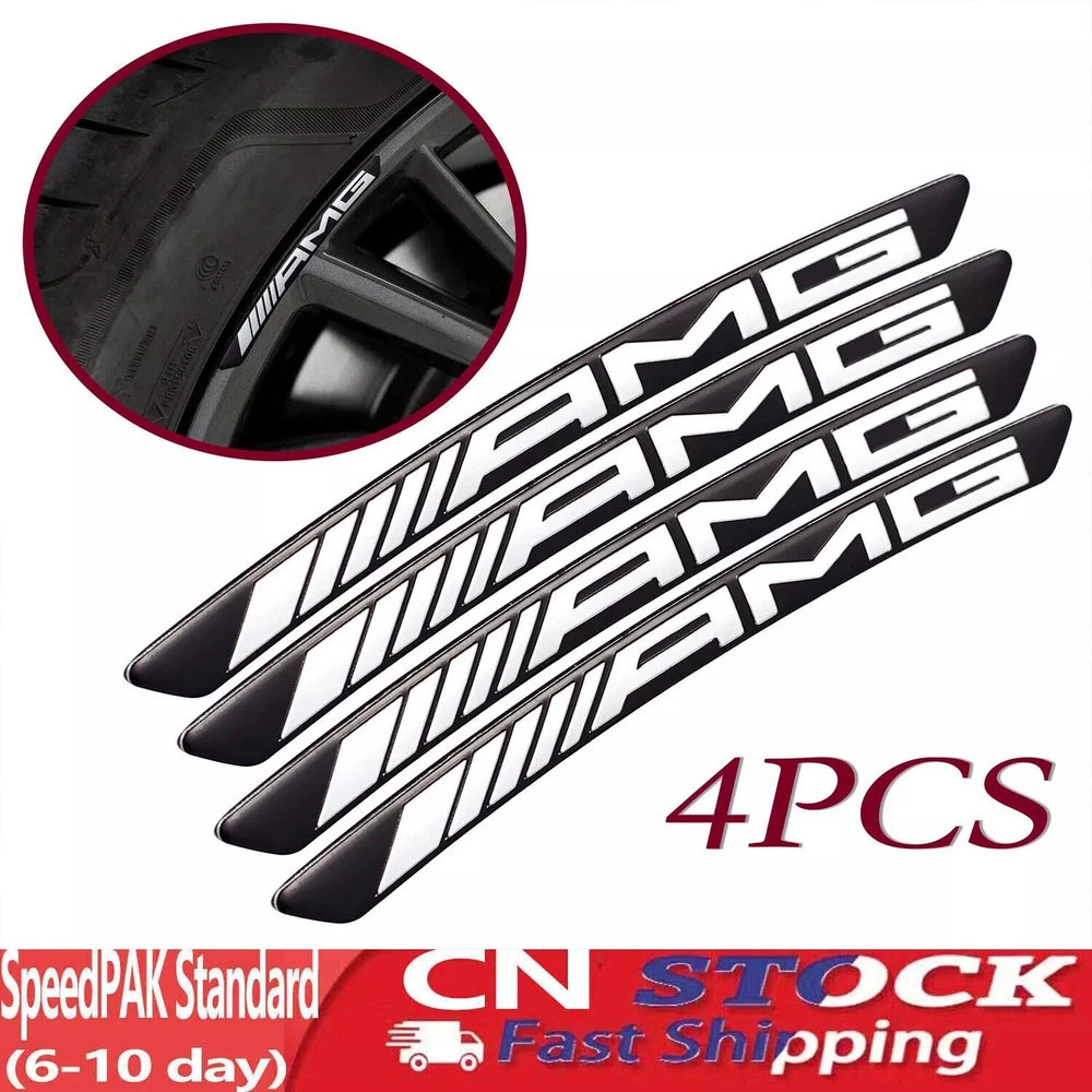 4Pcs 3D Silver Black Sticker For AMG Sport Wheel Wheels Rim Decal Emblem Badge.